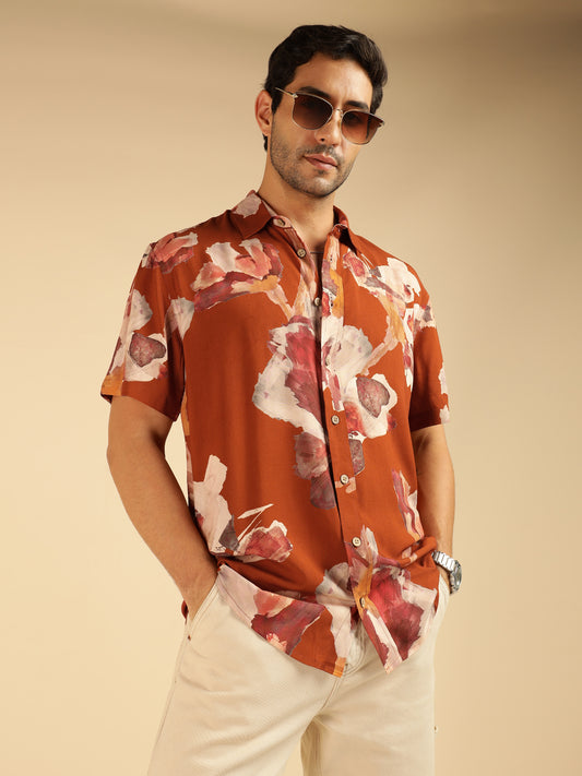 Material : Viscose Rayon Color : Tan Brown Pattern : Abstract Neck : Spread Collar...