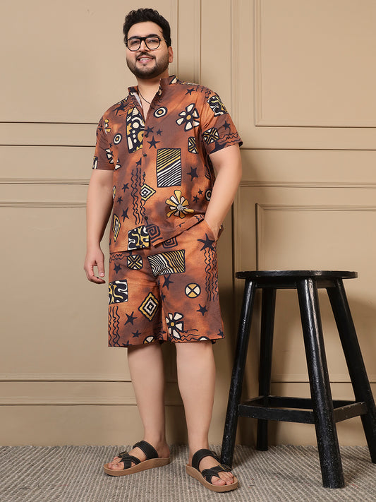 Fabric : Nylon Viscose Color : Brown Pattern : Abstract Print Neck : Mandarin Collar...
