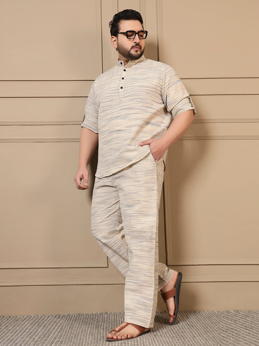 Fabric : Cotton Color : Off White Pattern : Self Texture Striped Neck : Mandarin...