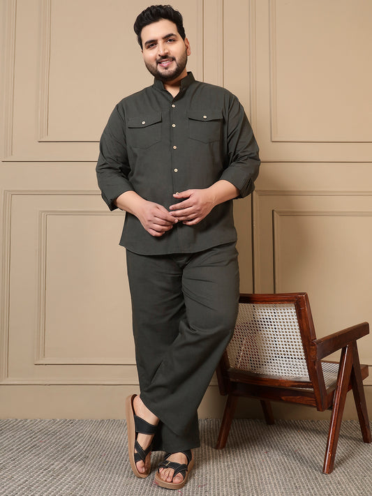 Material : Pure Cotton Color : Charcoal Pattern : Solid Neck : Mandarin Collar Wash...