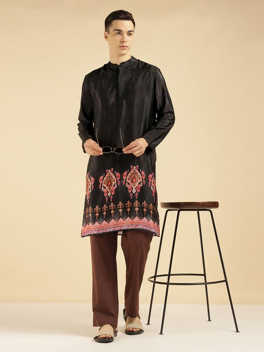 Material : Silk Blend Color : Black Pattern : Ekkat Border Print Neck : Mandarin...