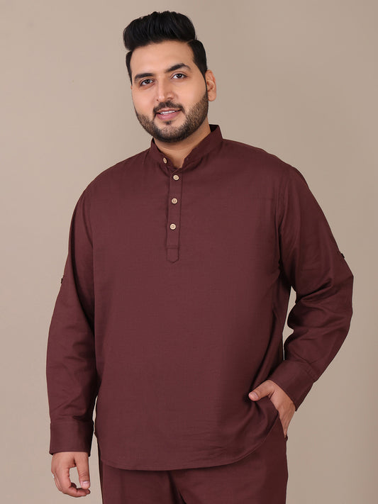 Material : Pure Khadi Color : Brown Pattern : Solid Neck : Mandarin Collar Wash...