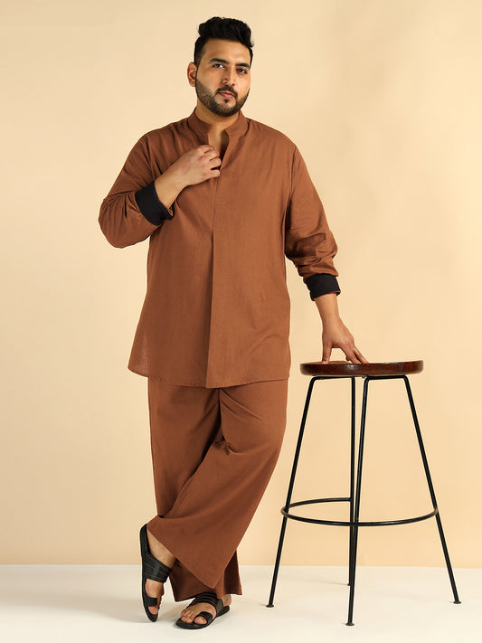 Material : Pure Cotton Flex Color : Tan Brown Pattern : Solid Neck : Mandarin...