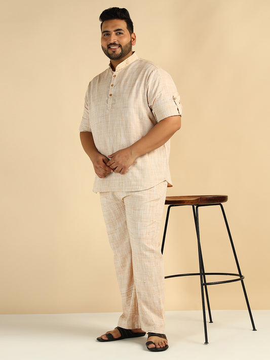 Material : Pure Khadi Color : Peach Pattern : Self Texture Neck : Spread Collar...