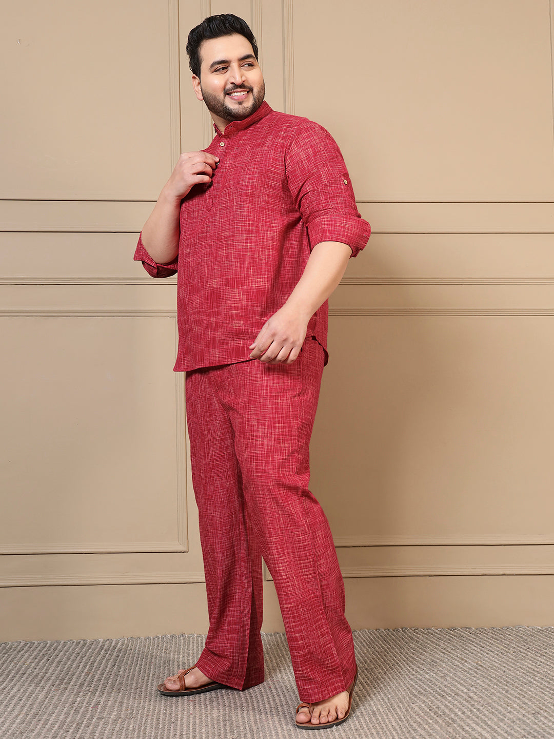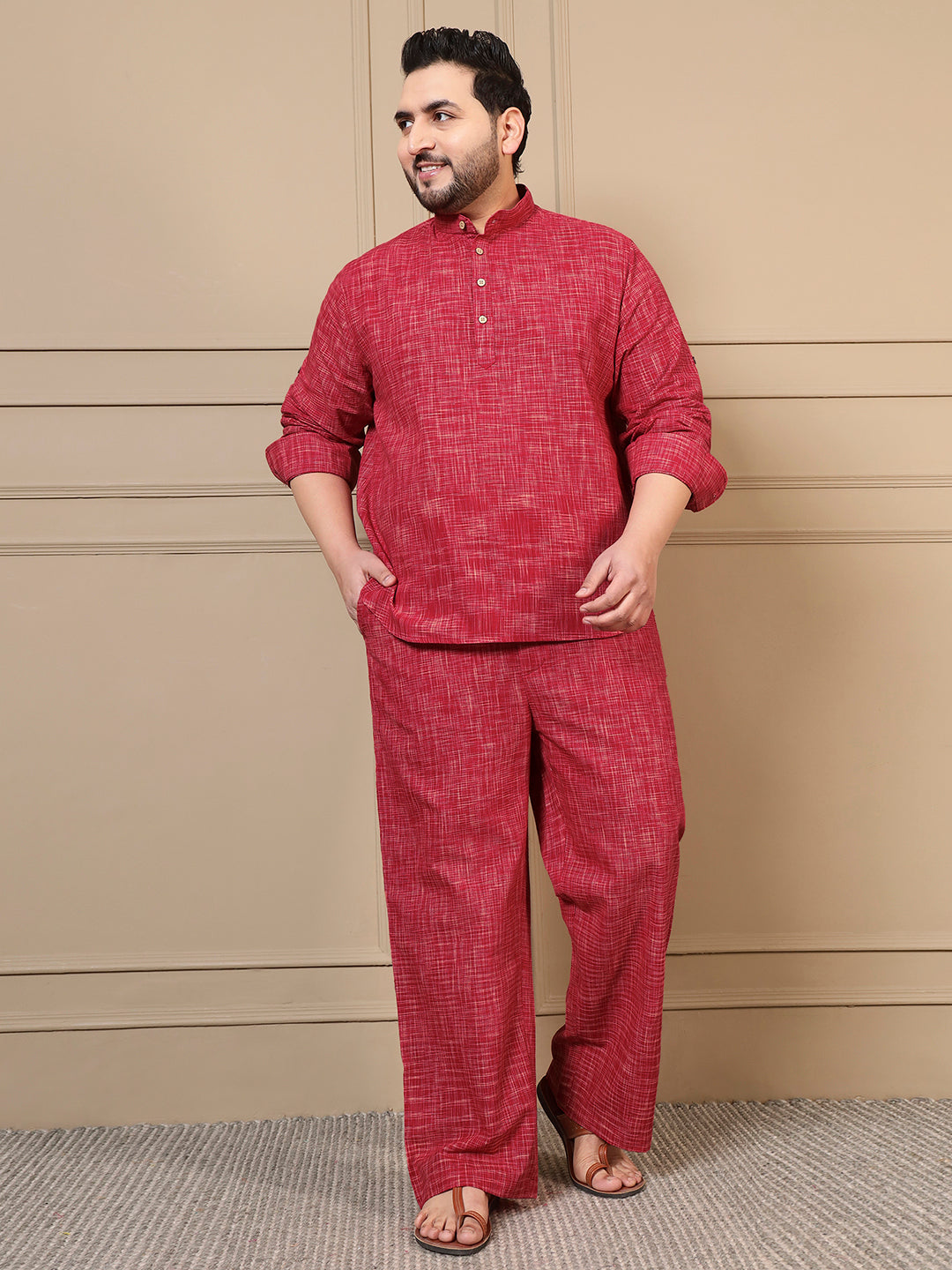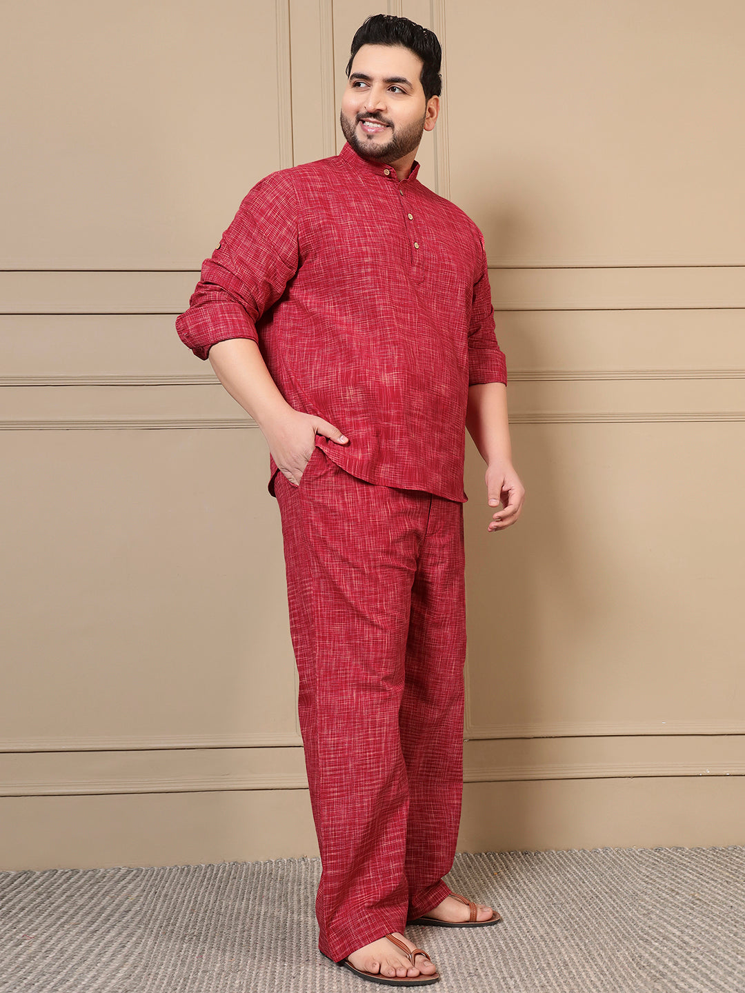 Red Textured Kurta With Pant Men Plus Size Co-ord Set