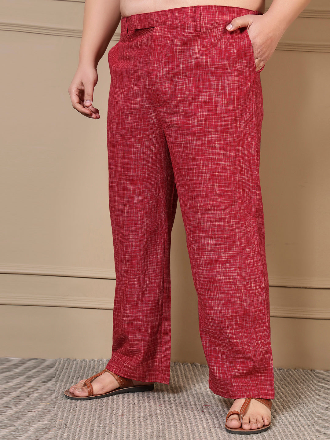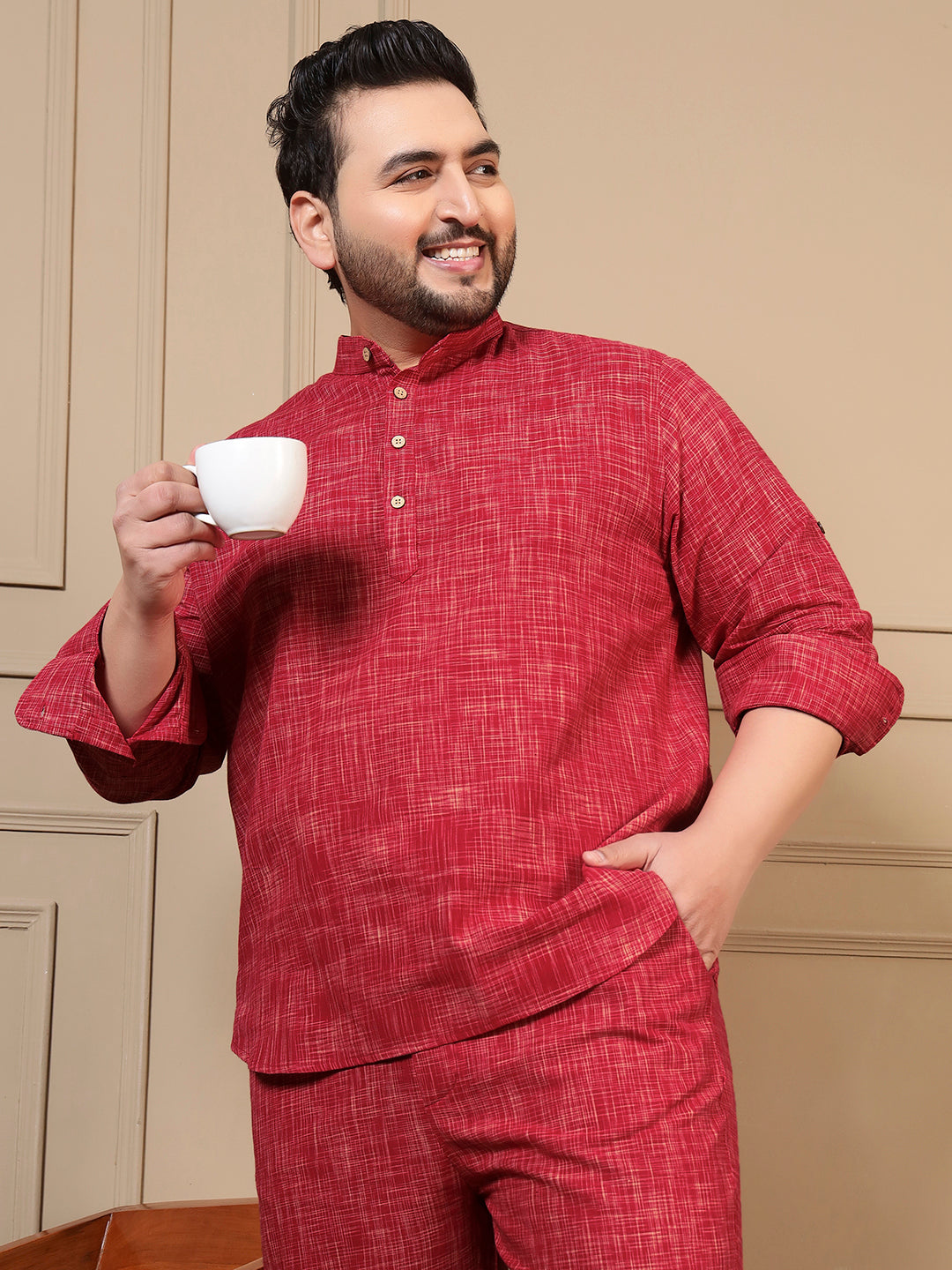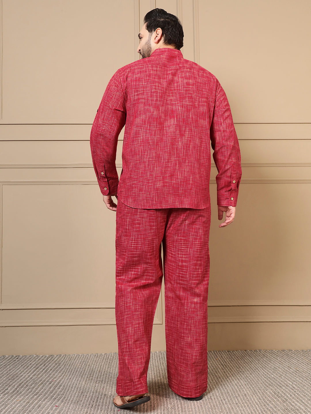 Red Textured Kurta With Pant Men Plus Size Co-ord Set