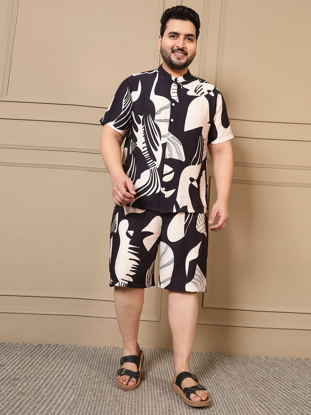 Black Abstract Printed Shirt With Shorts Men Plus Size Co-ord Set