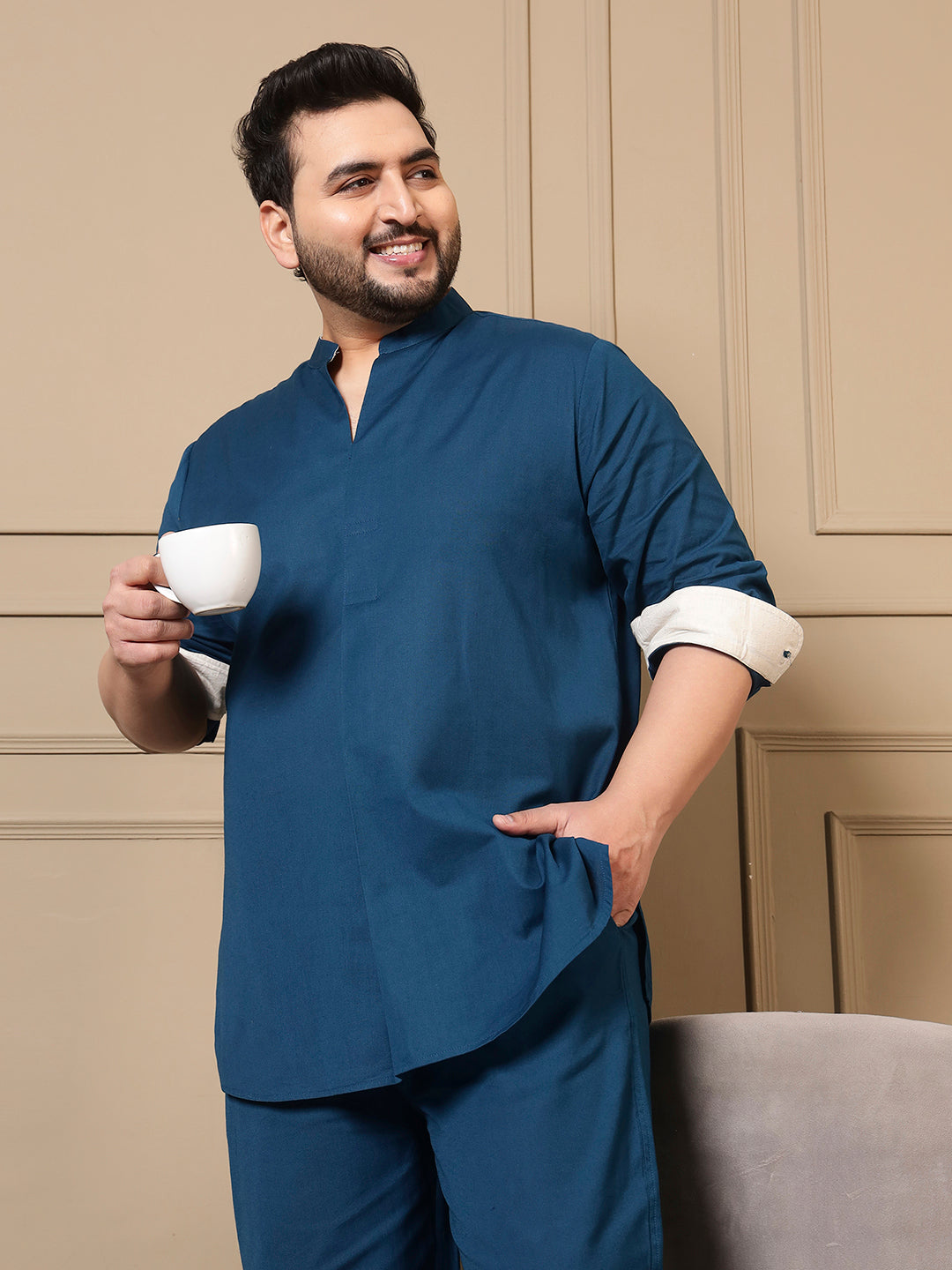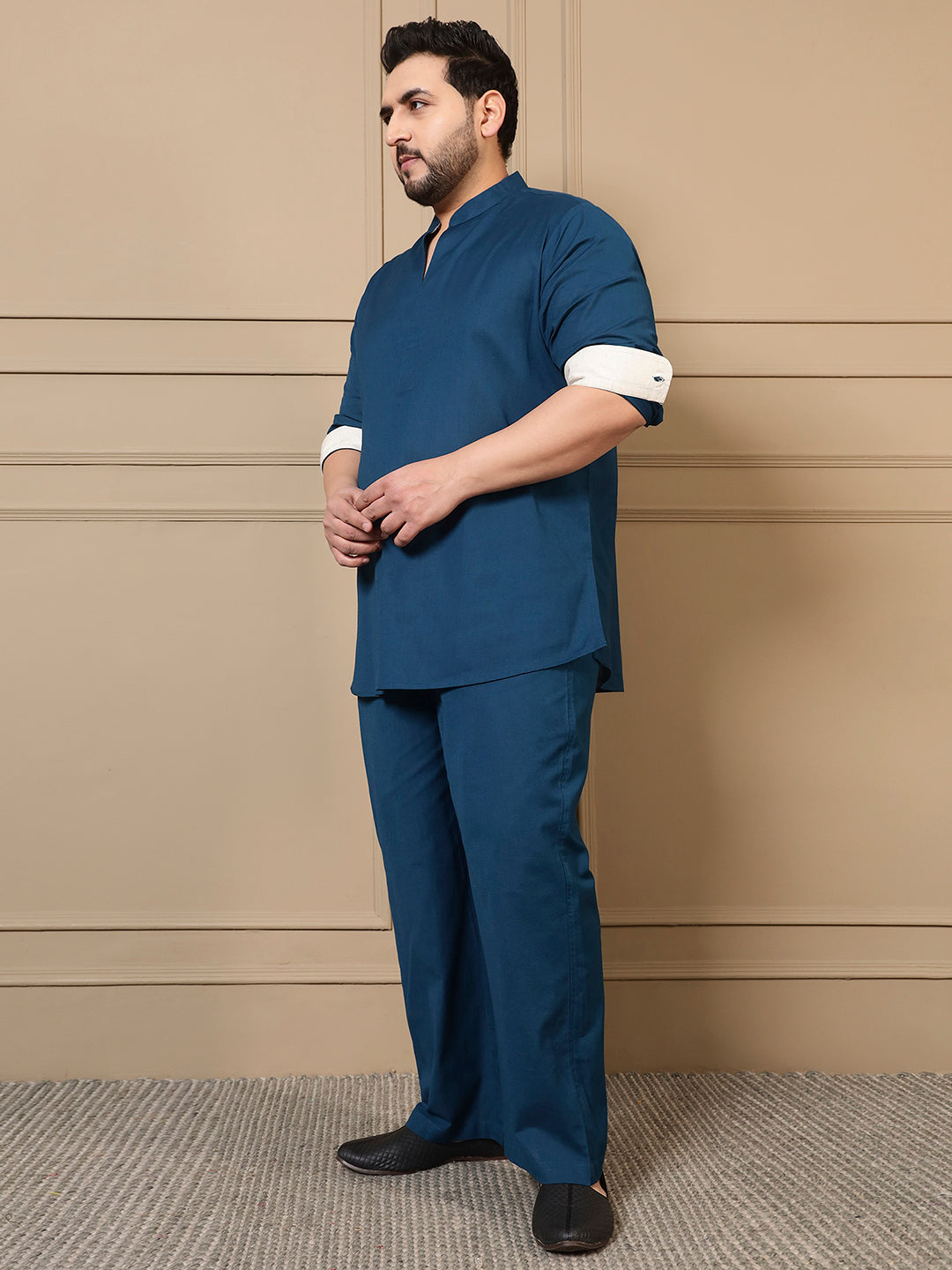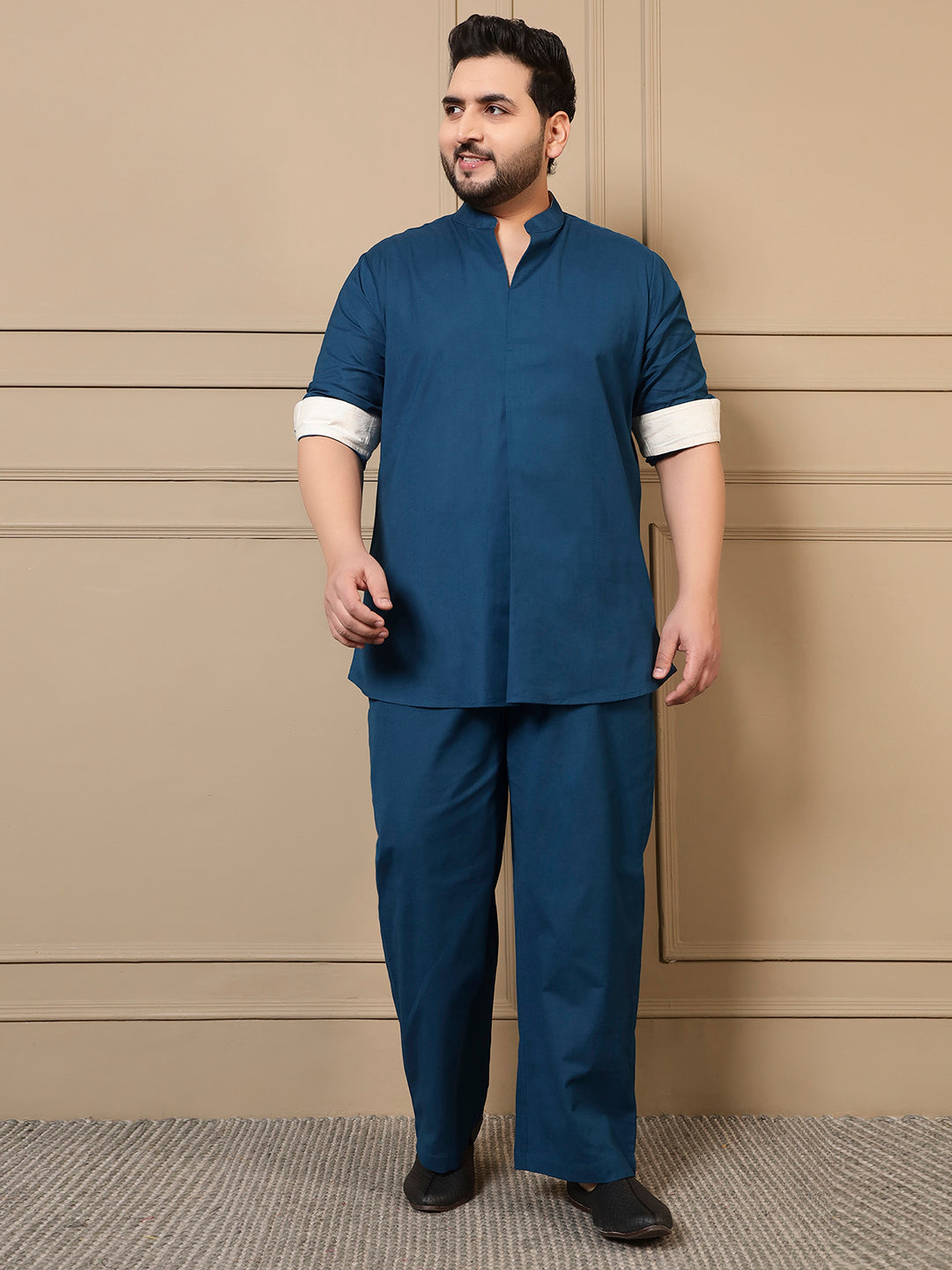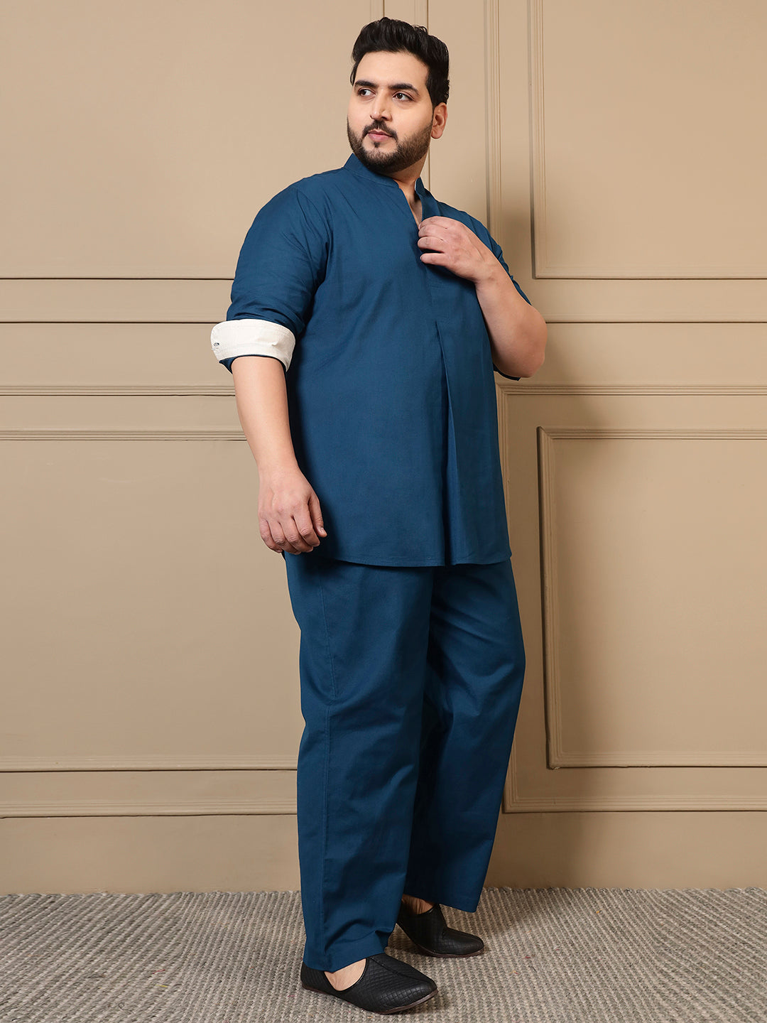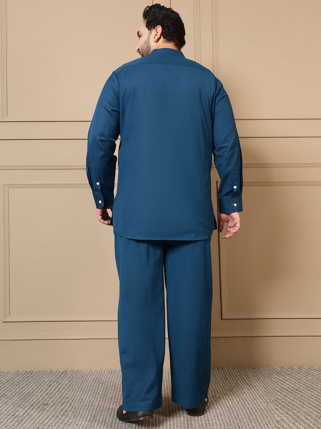 Teal Blue Cotton Kurta With Pant Men Plus Size Co-ord Set