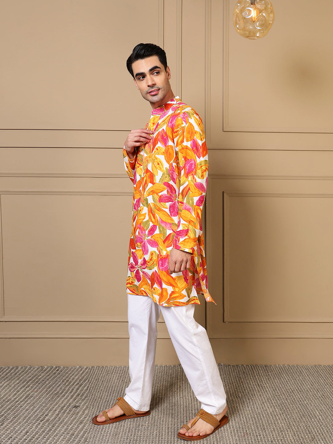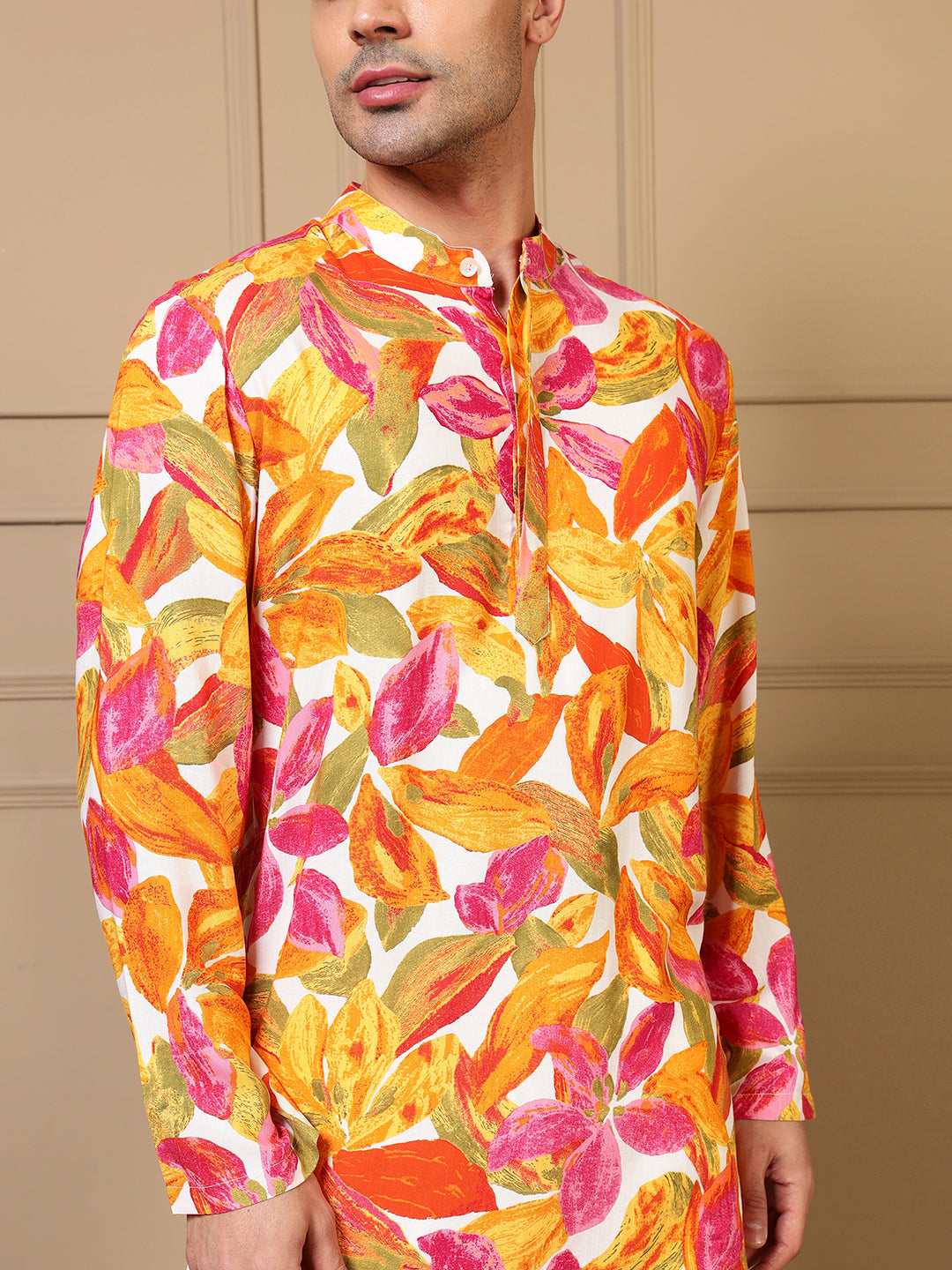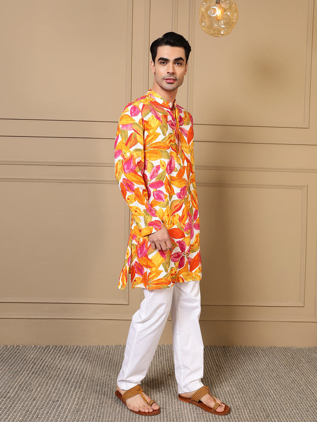 Multicolor Leaf Printed Men Kurta