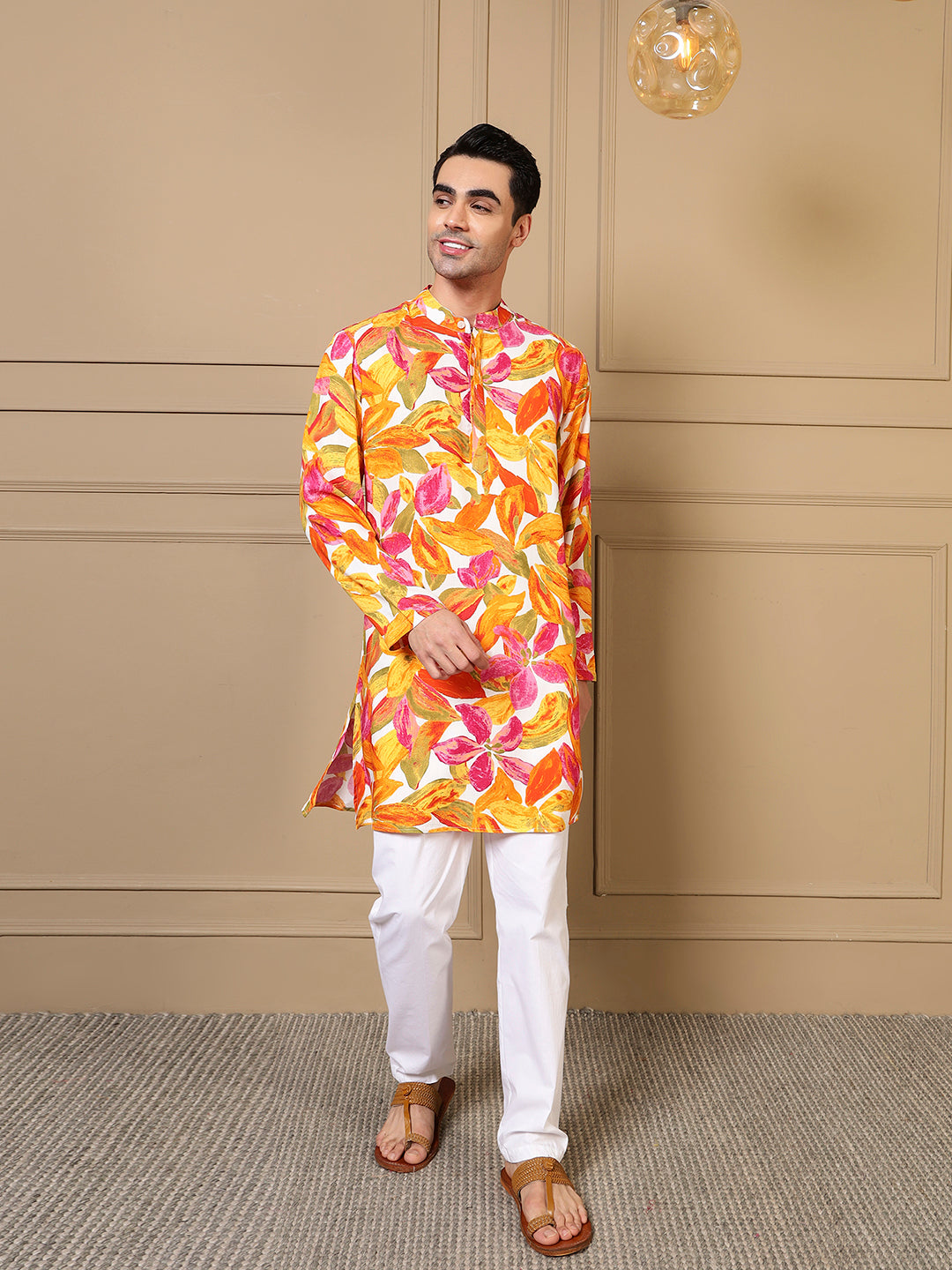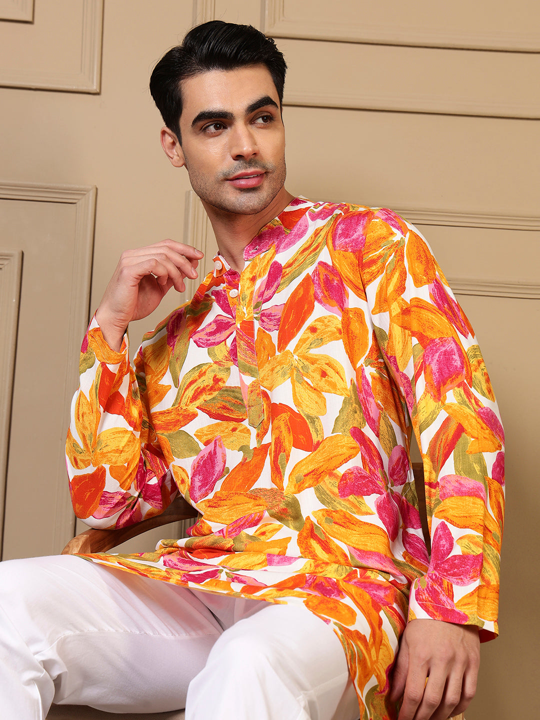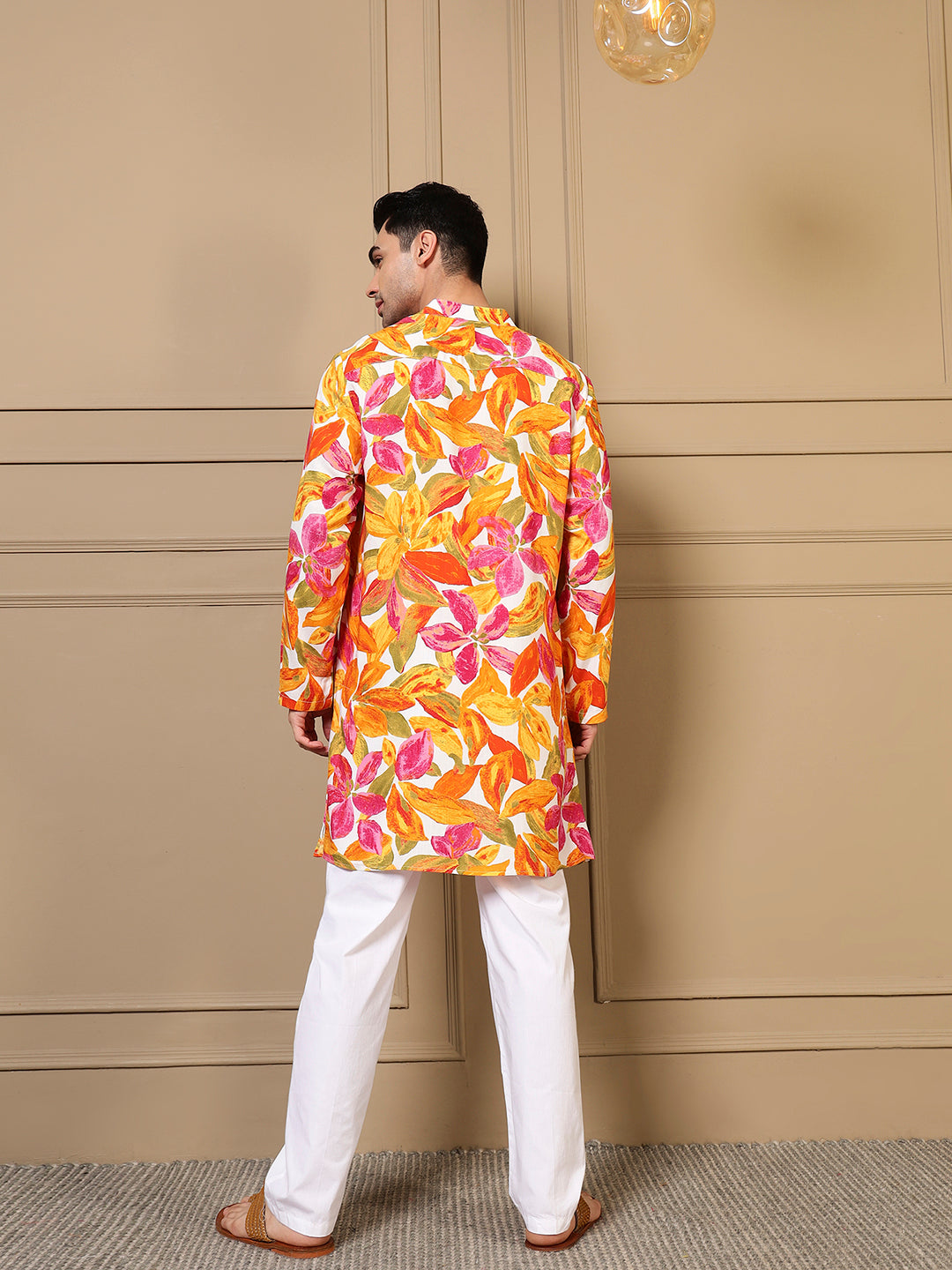 Multicolor Leaf Printed Men Kurta