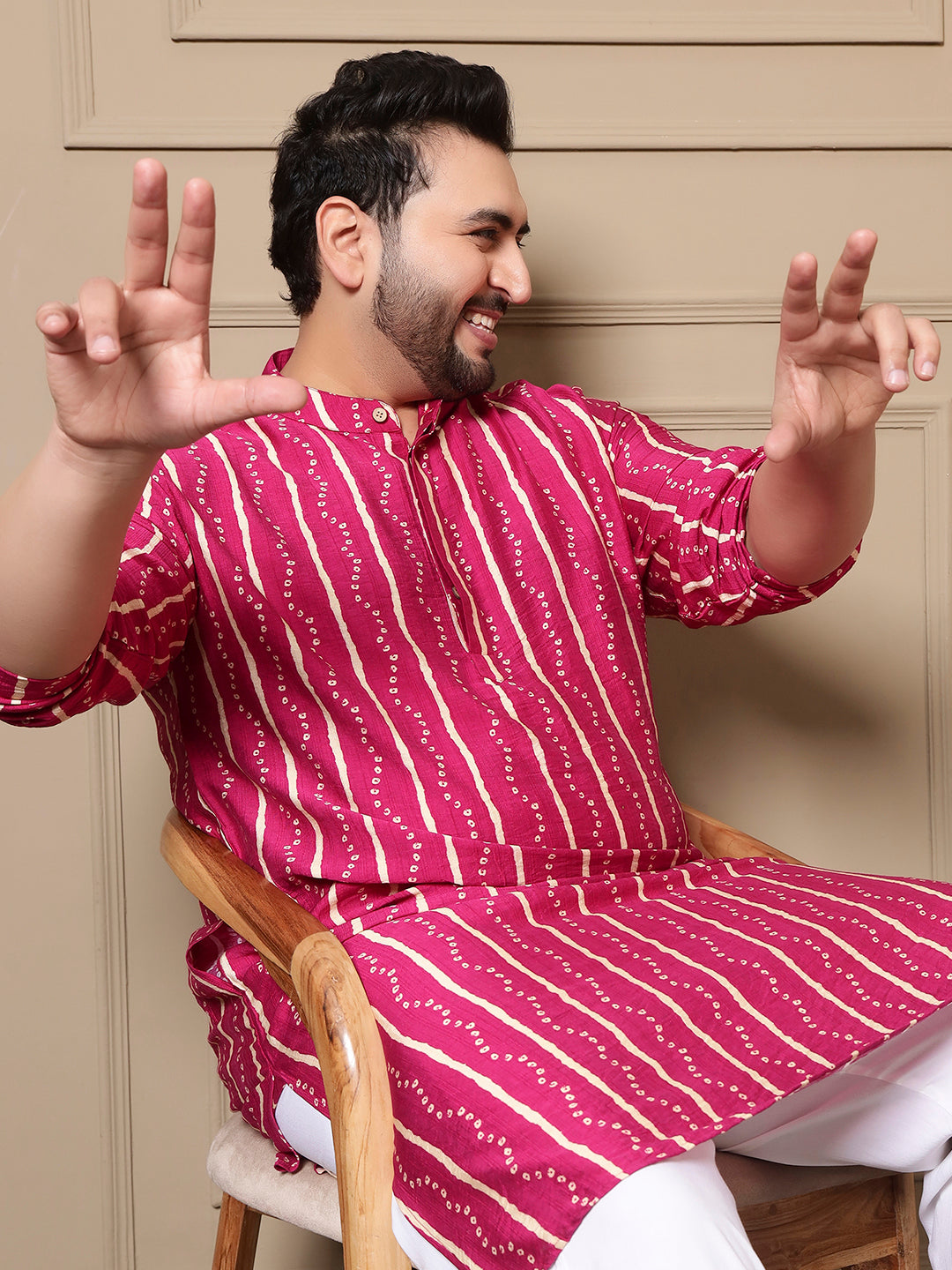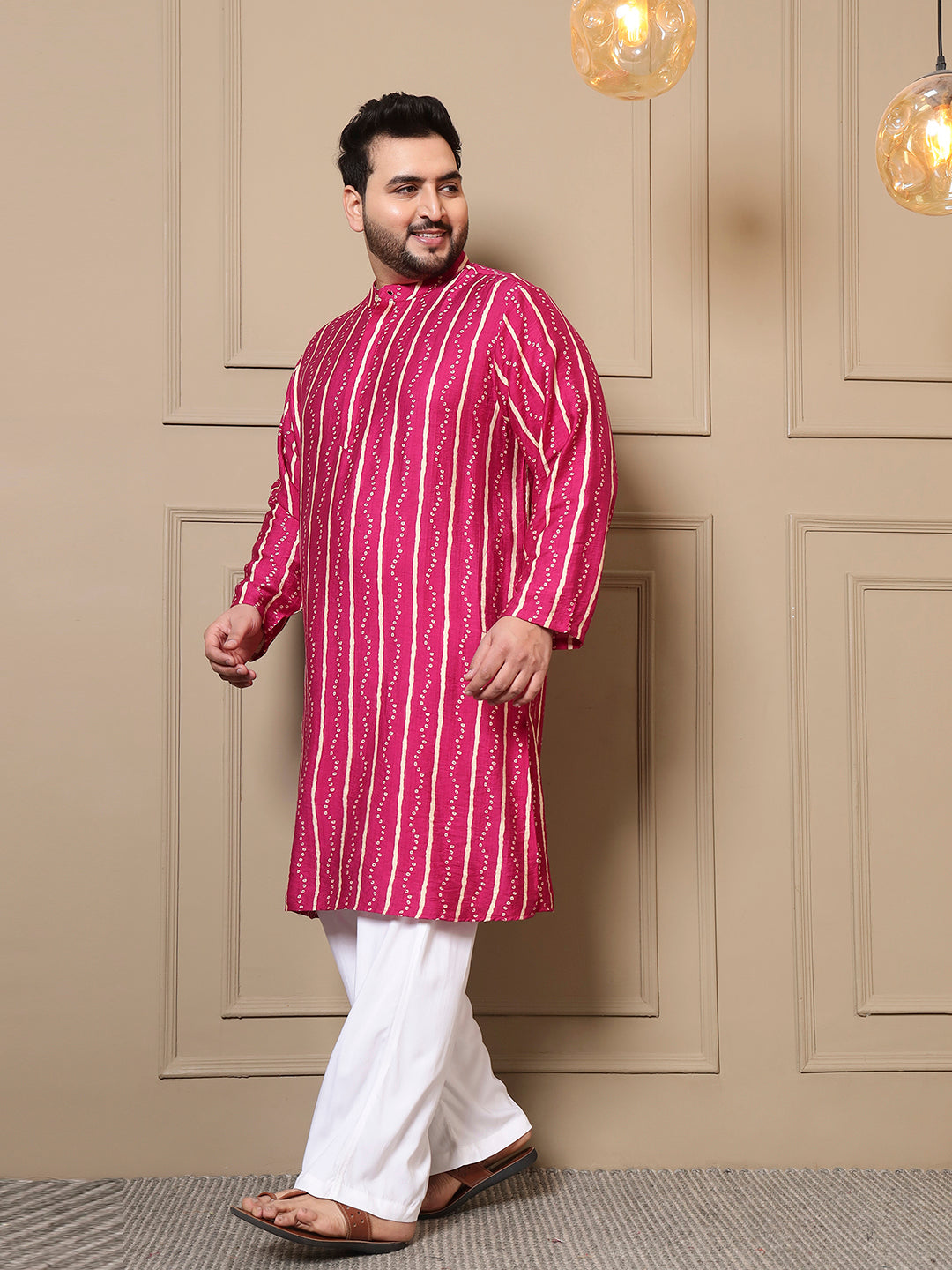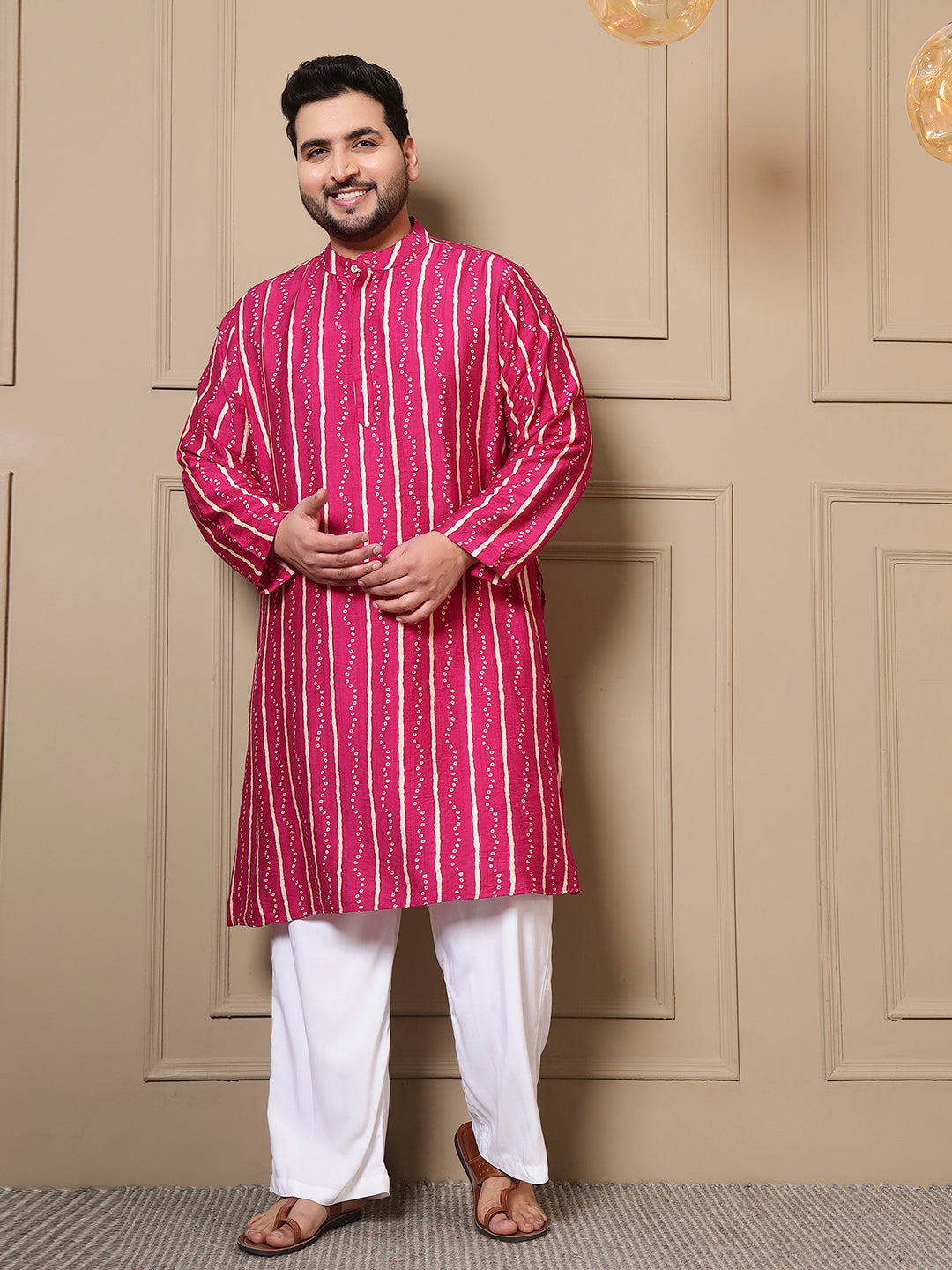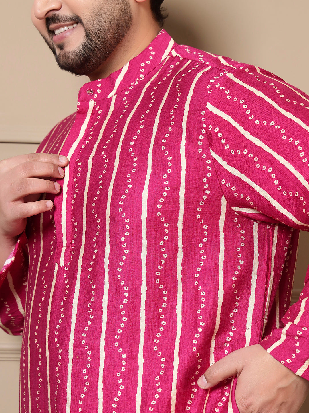 Magenta Bandhani Printed Men Plus Size Kurta