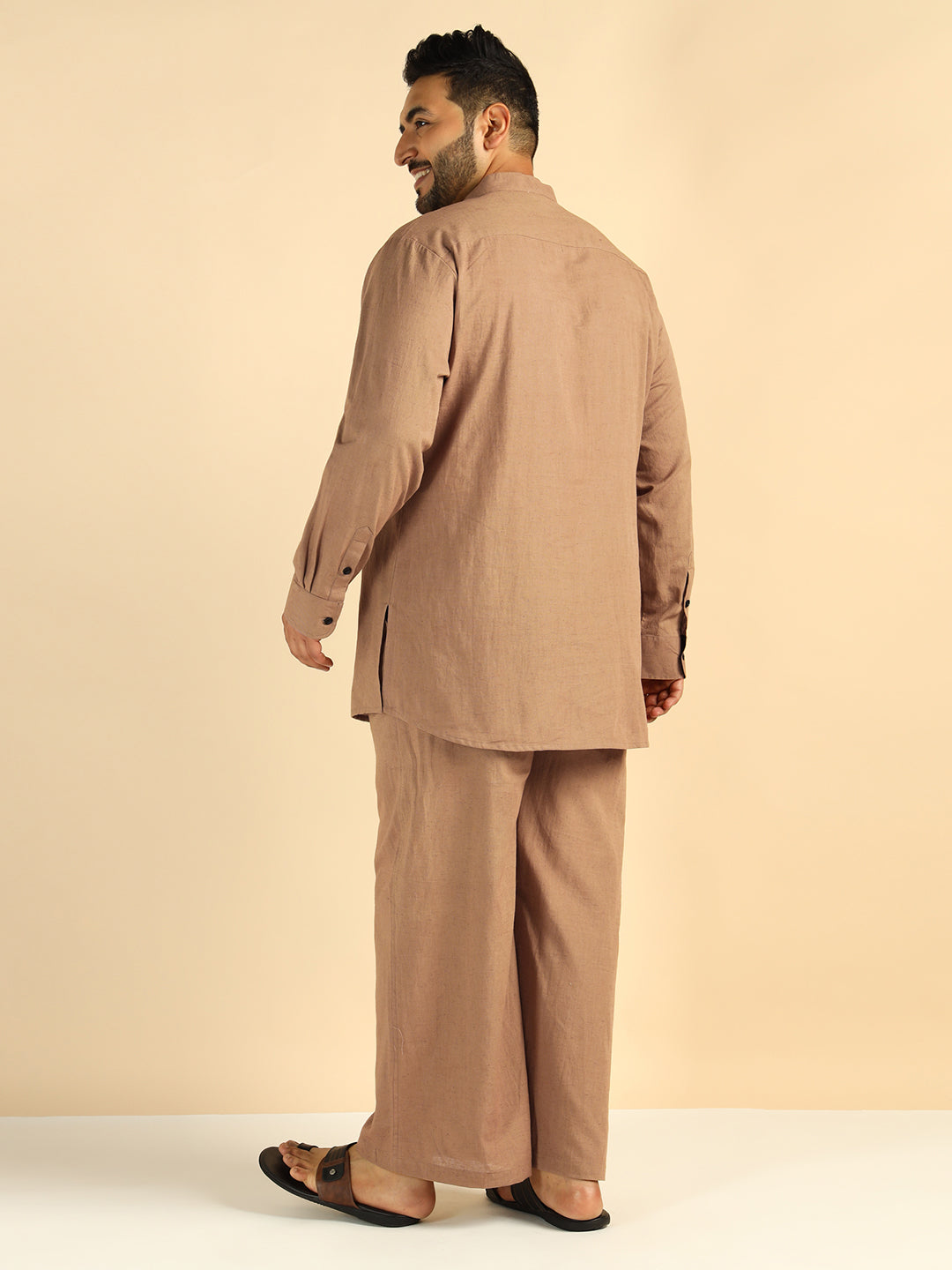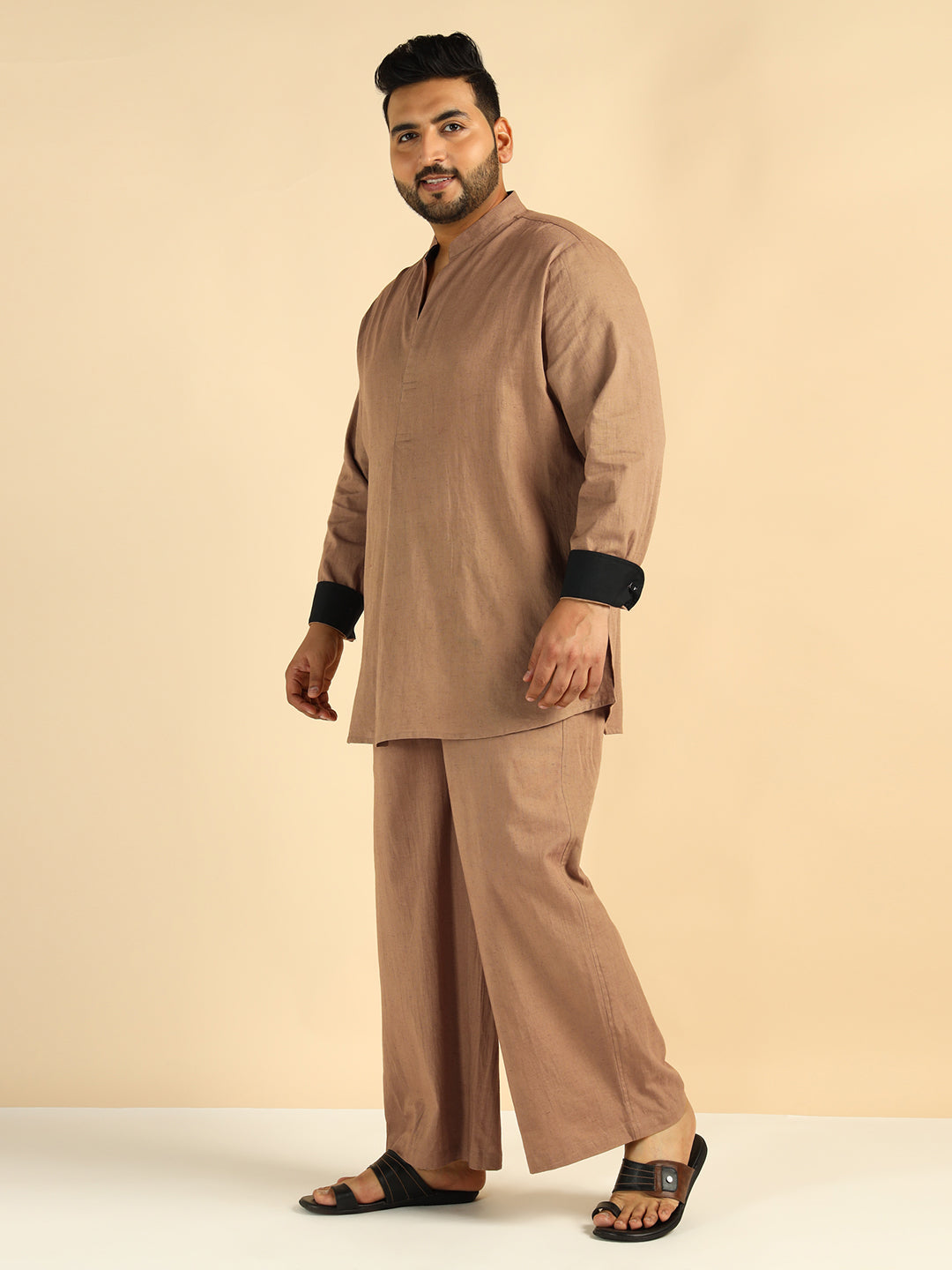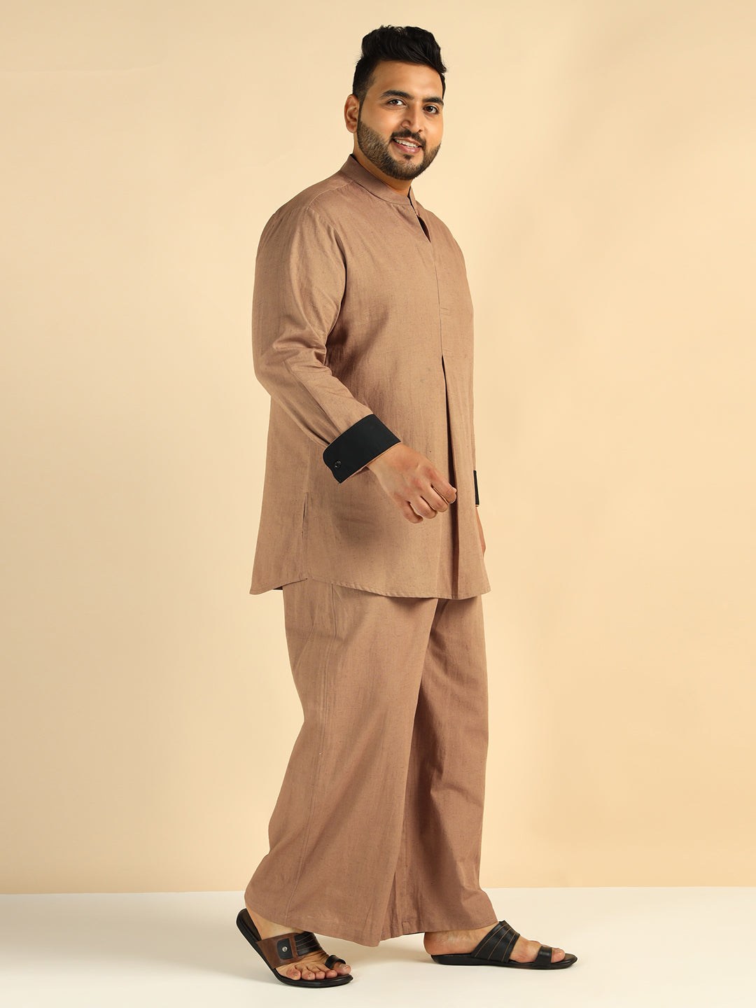 Beige Solid Colour Pure Cotton Plus Size Co-Ord Set For Men