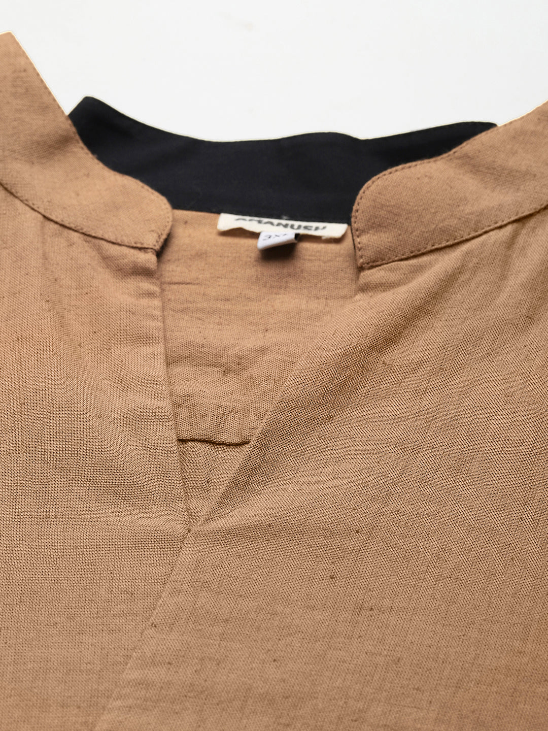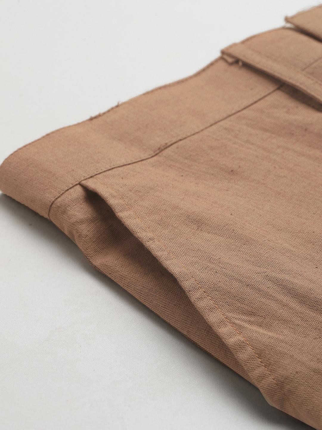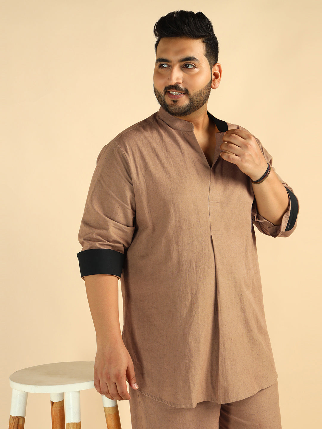Beige Solid Colour Pure Cotton Plus Size Co-Ord Set For Men