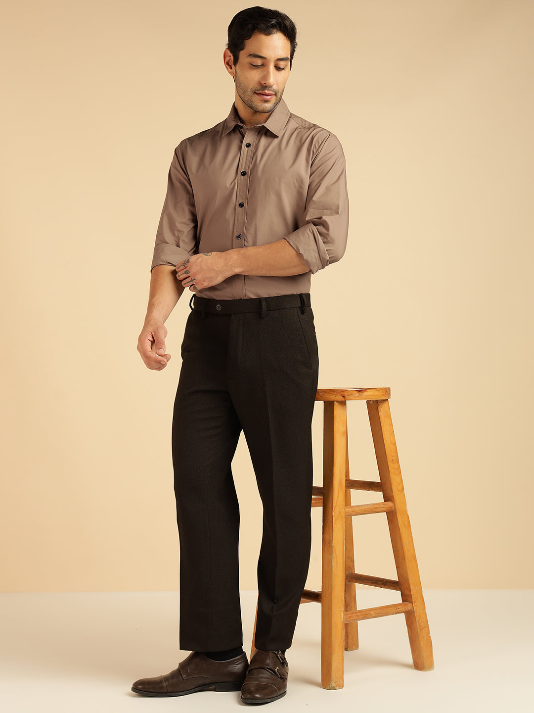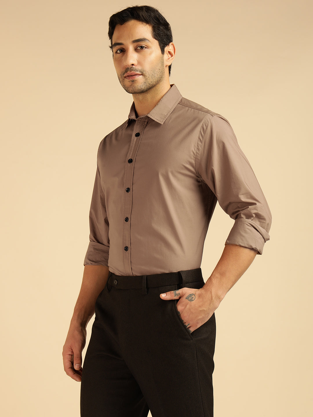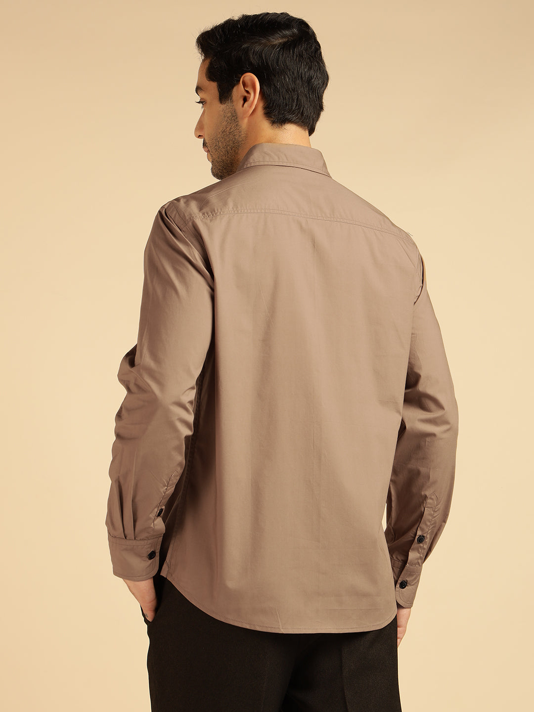Beige Solid Pure Cotton Men Formal Shirt