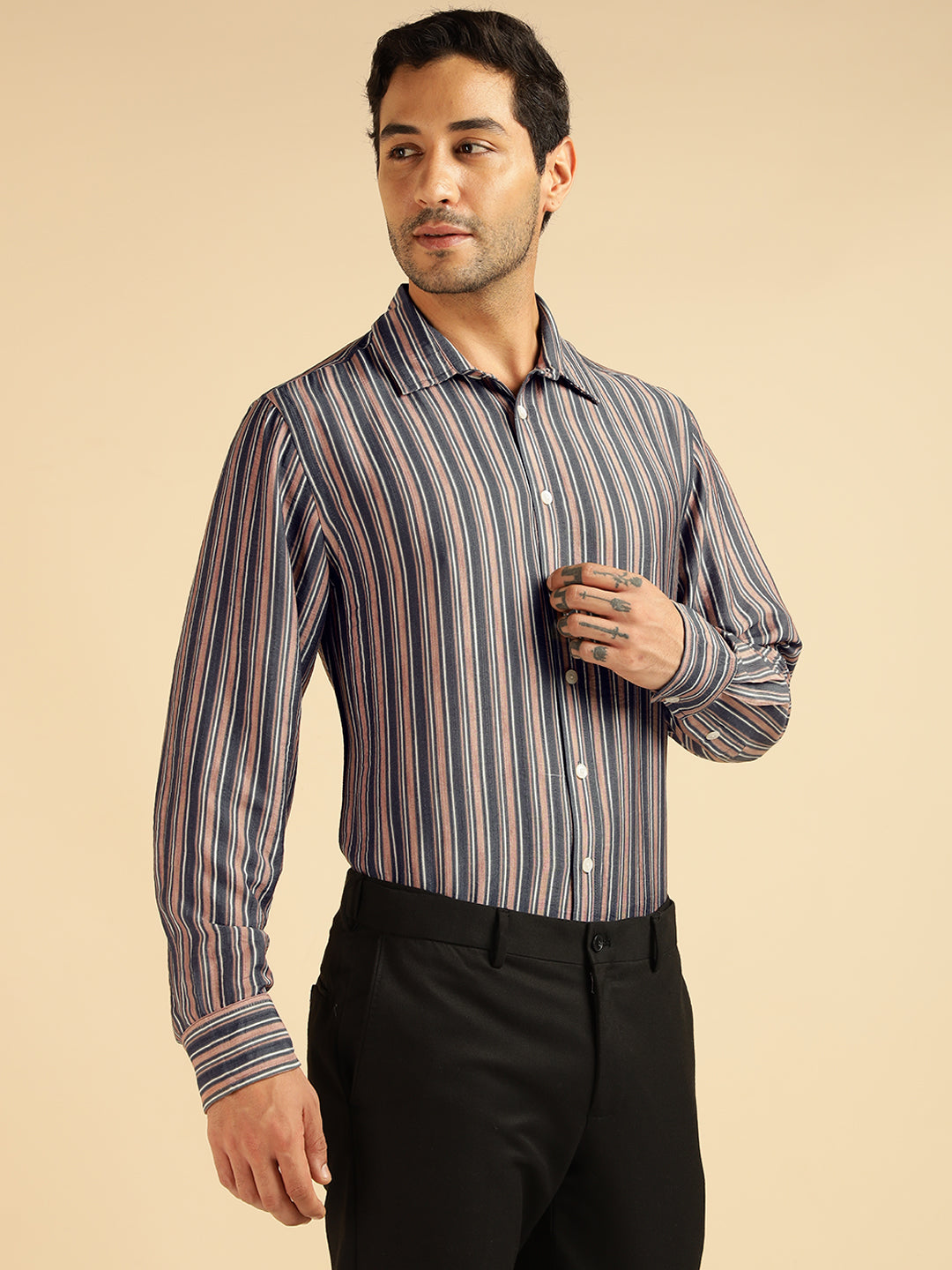 Blue Multi Striped Men Formal Shirt