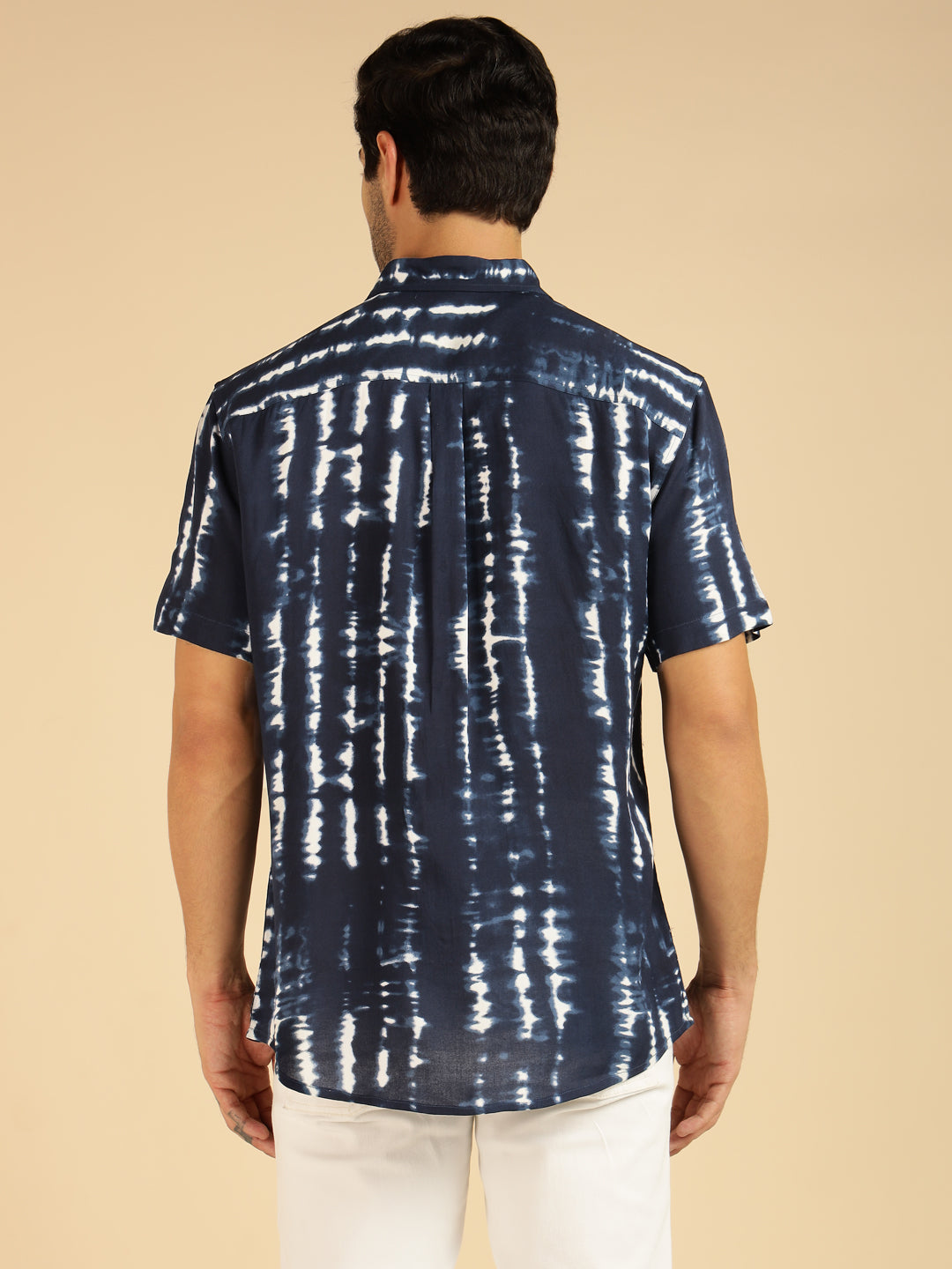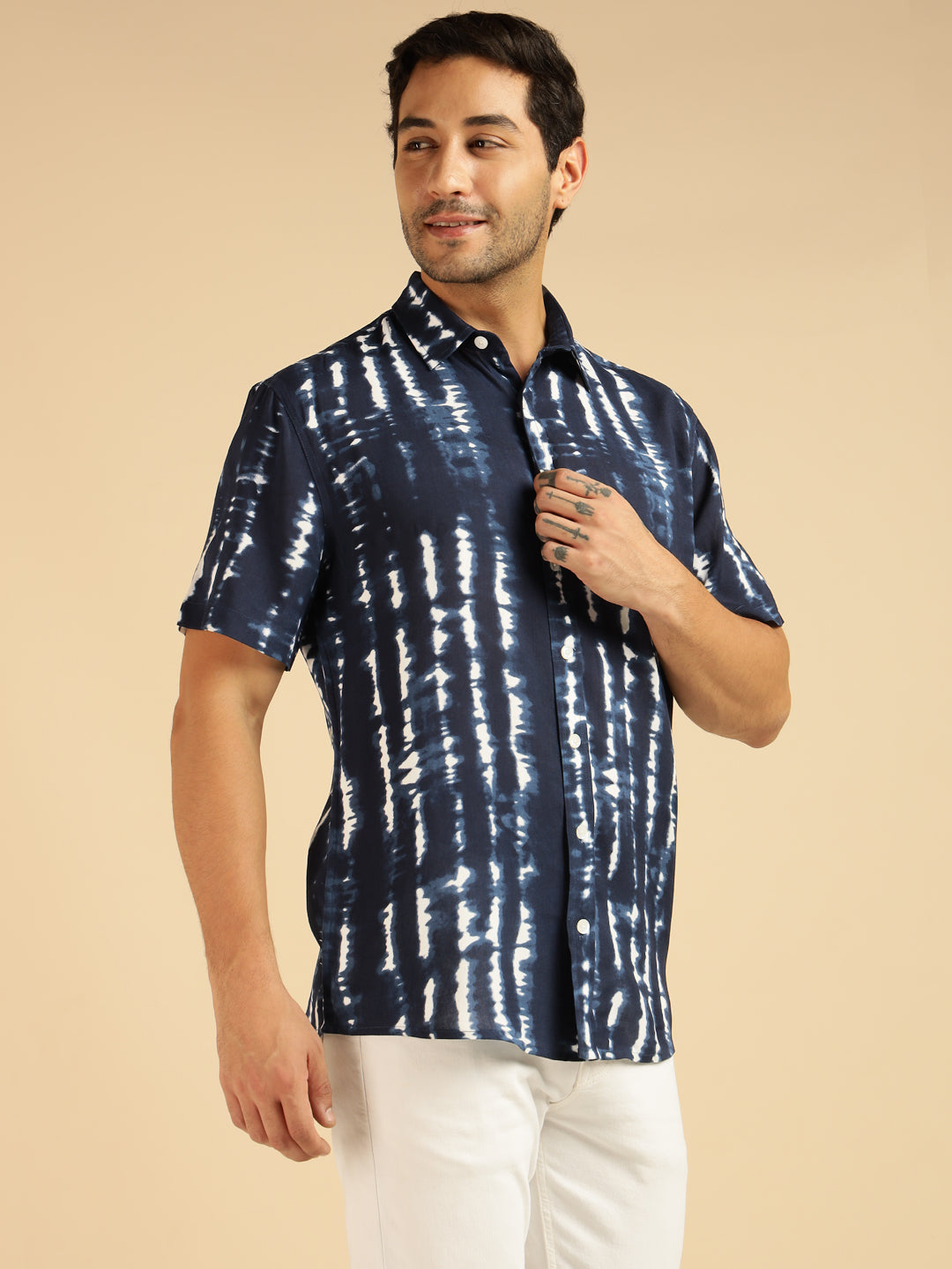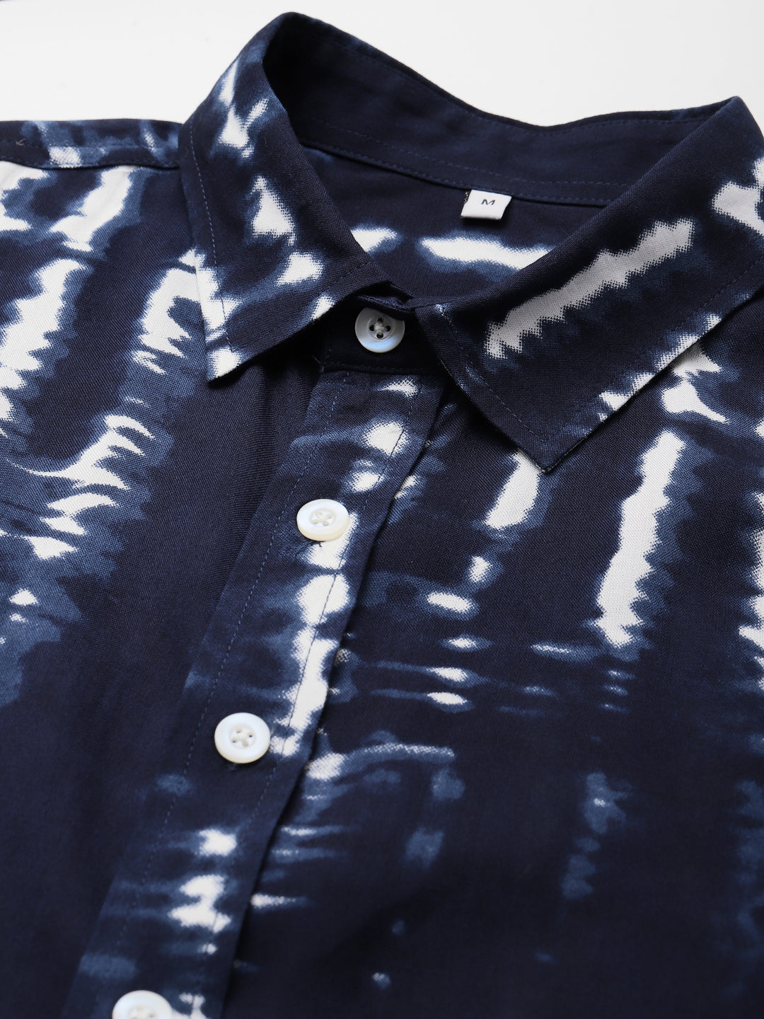Blue Tie Dye Pure Rayon Men Casual Shirt