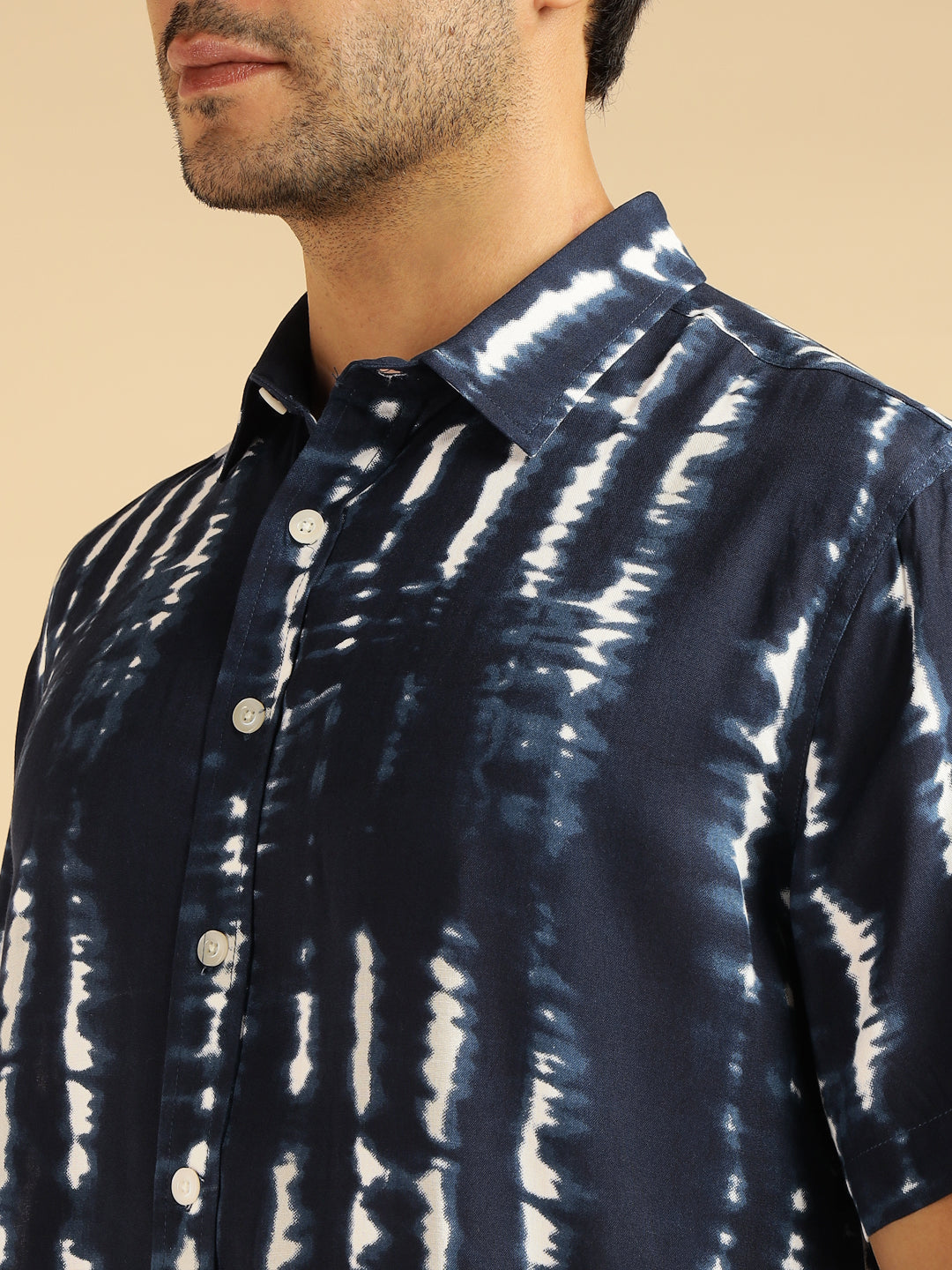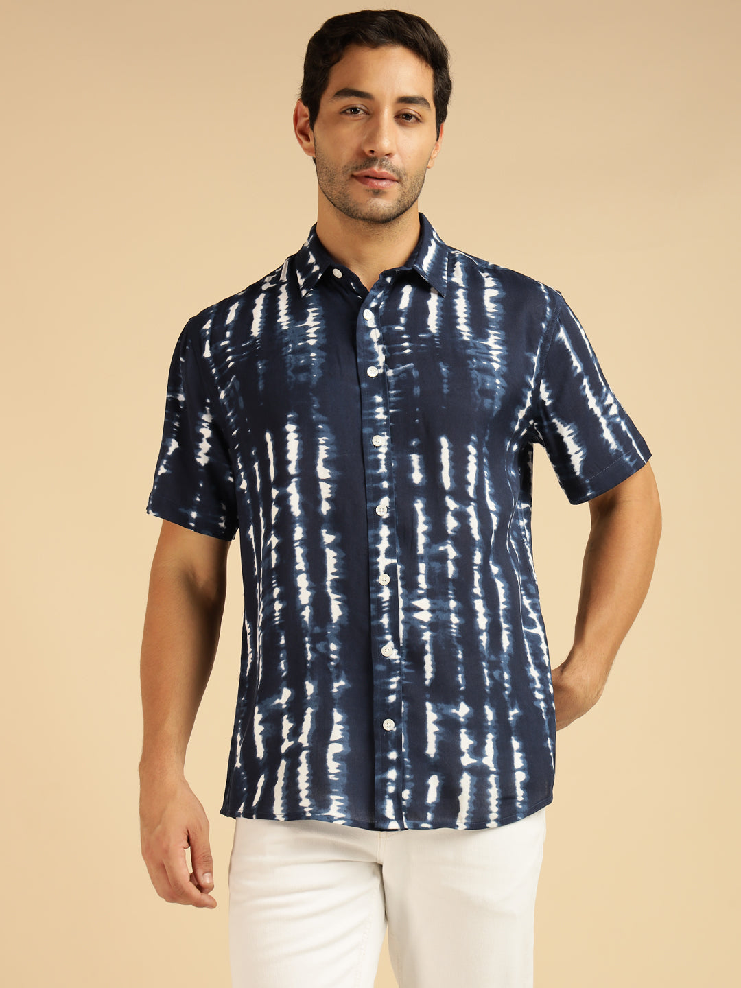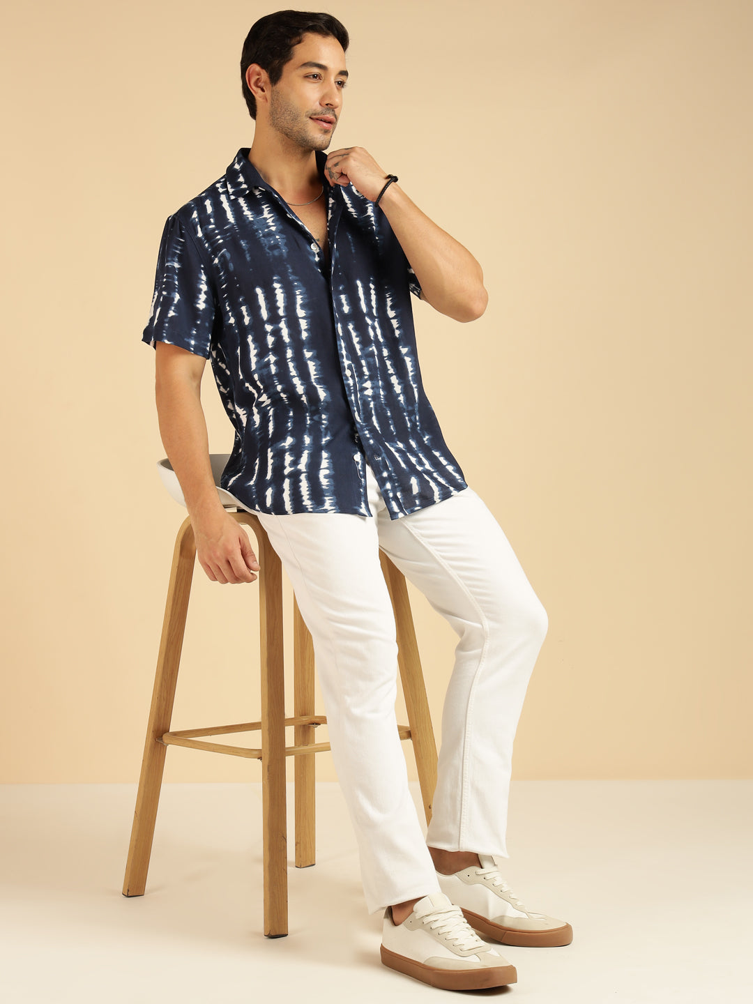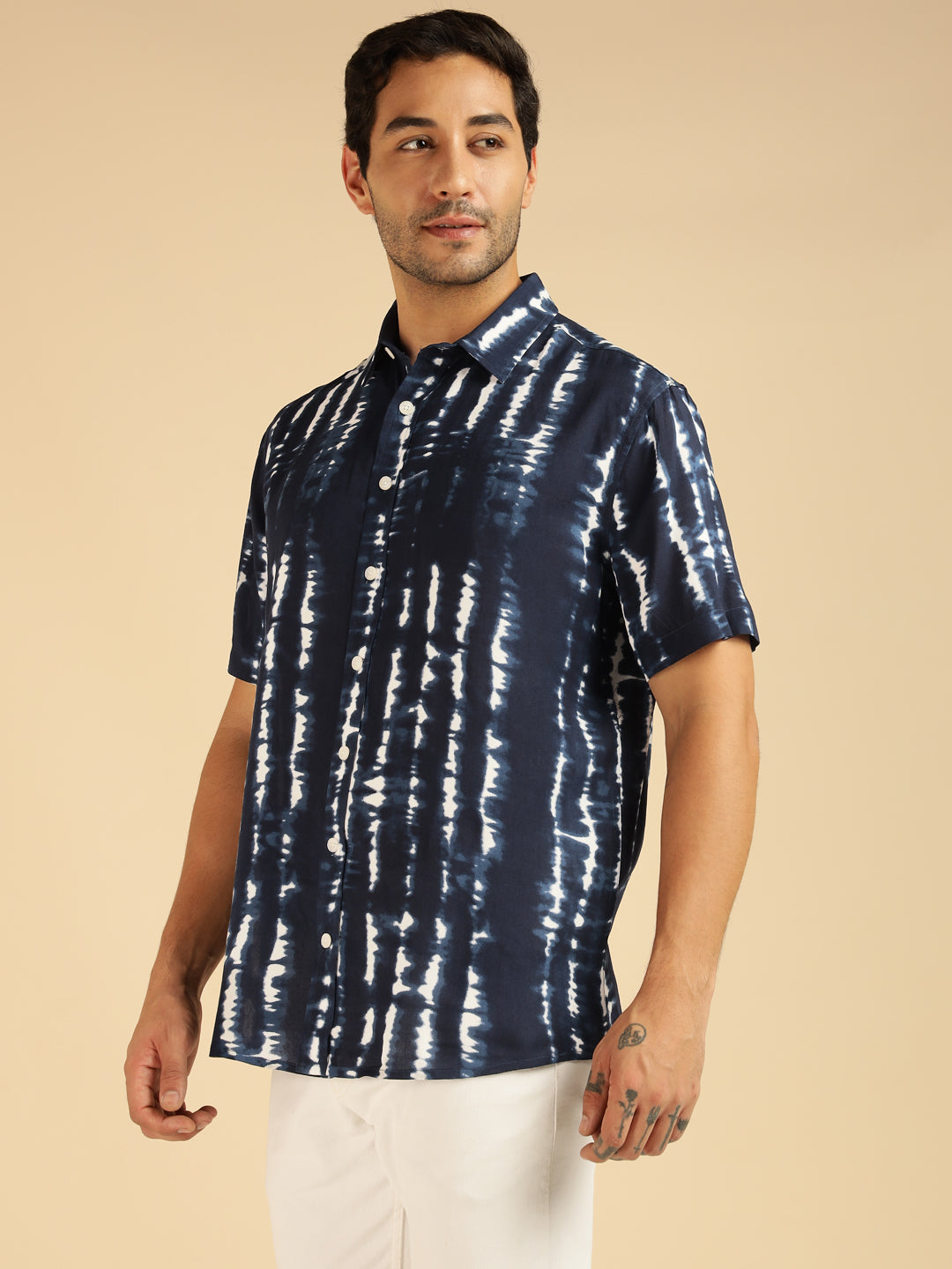 Blue Tie Dye Pure Rayon Men Casual Shirt