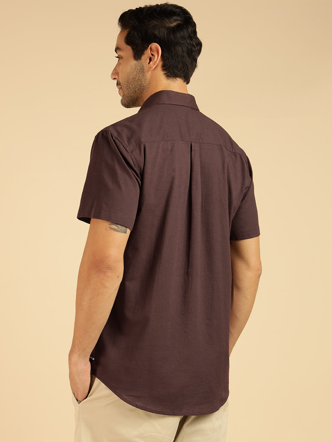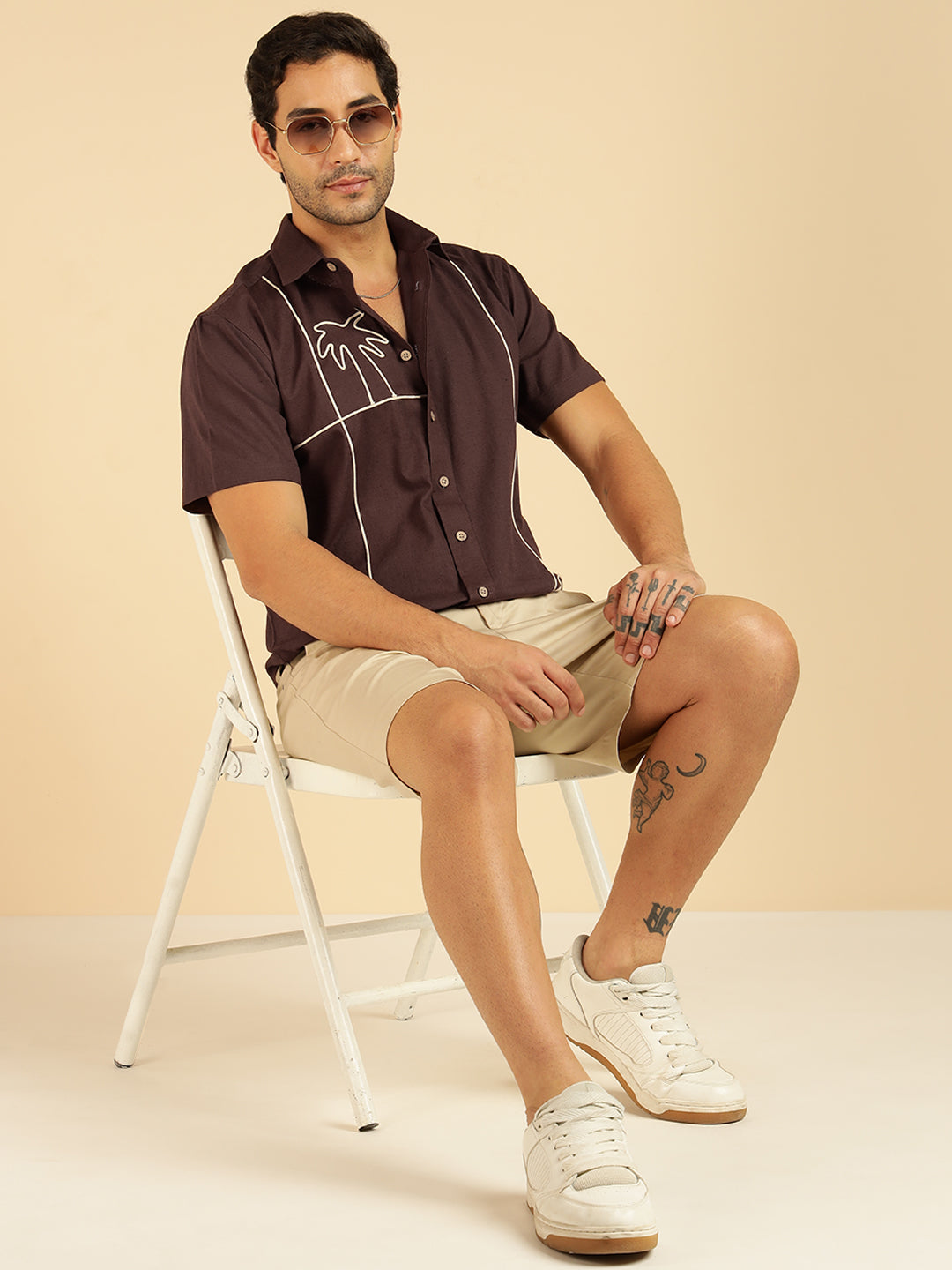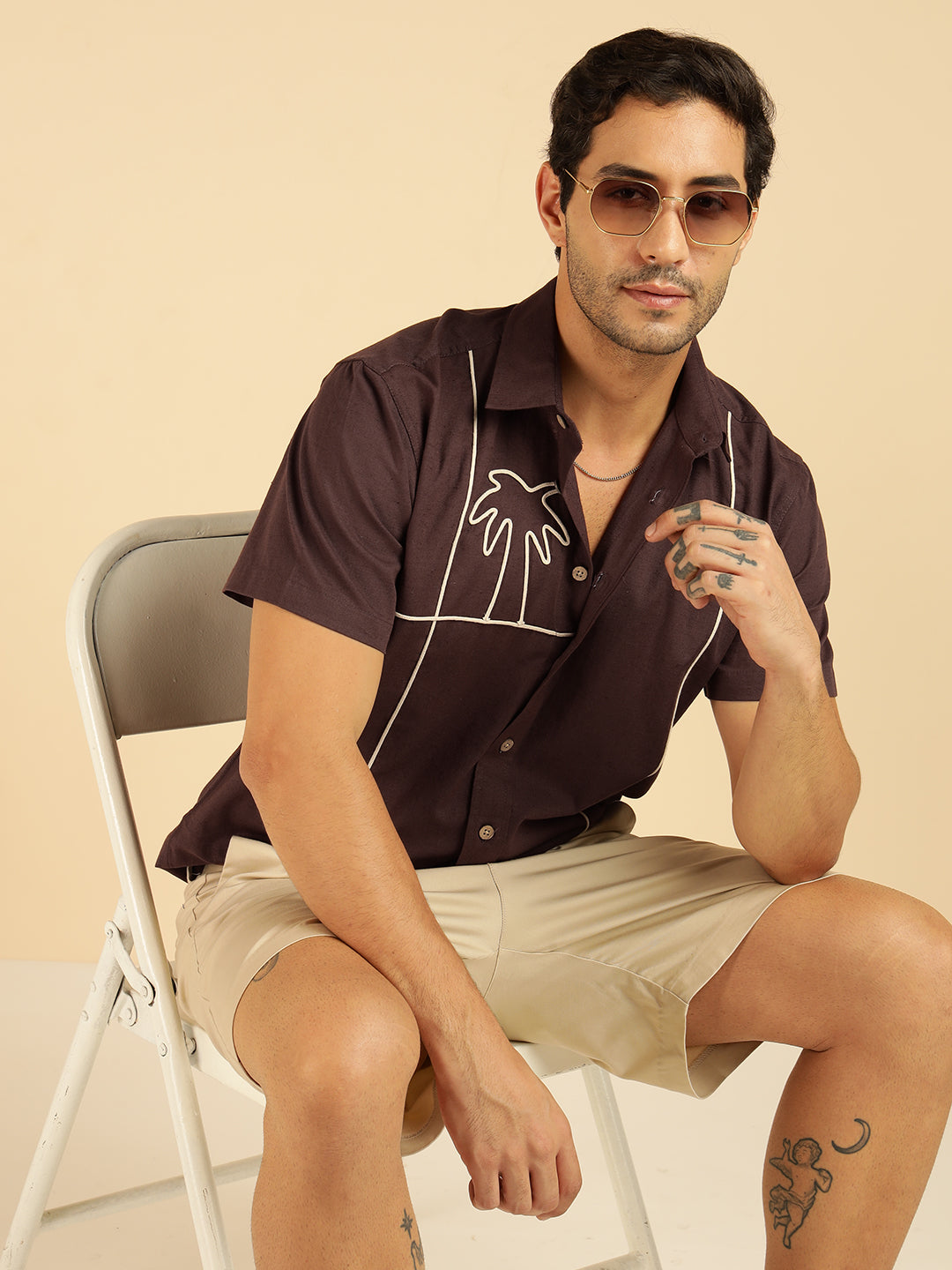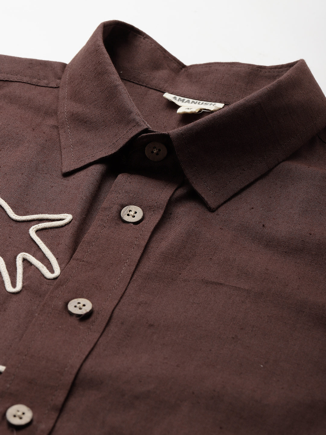Brown Embroidered Pure Cotton Men Casual Shirt