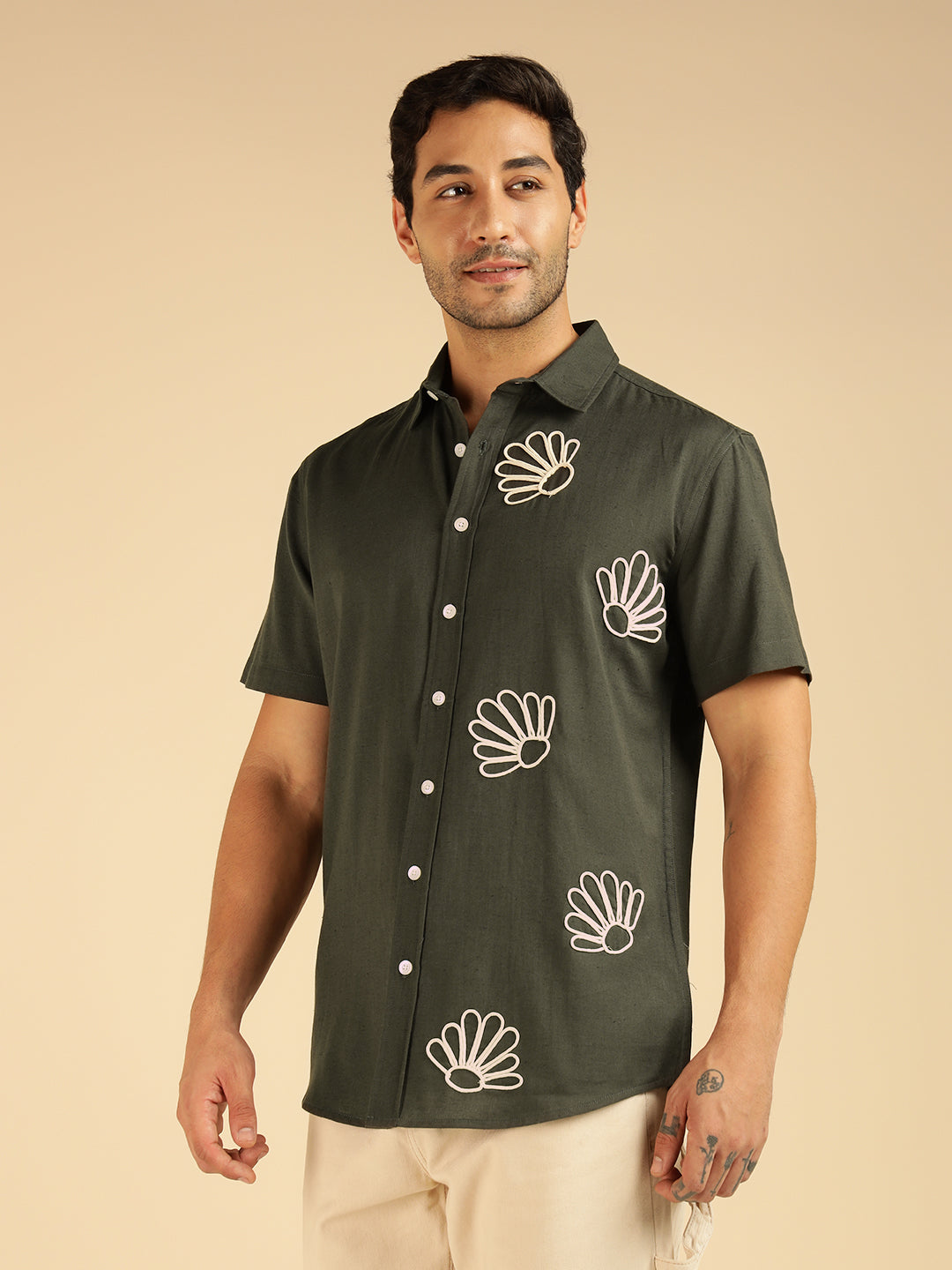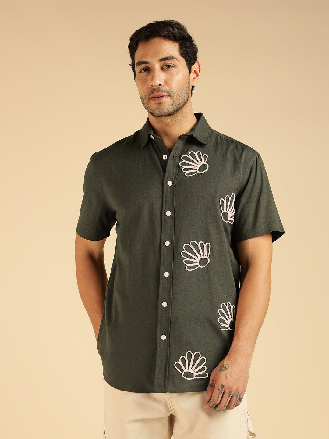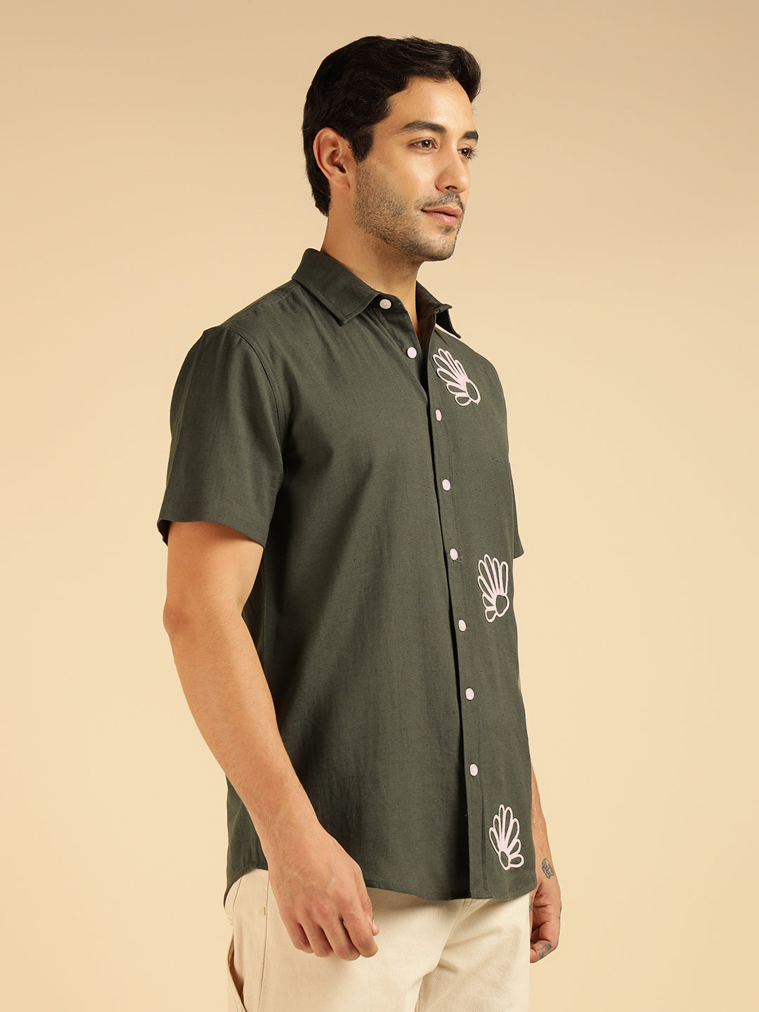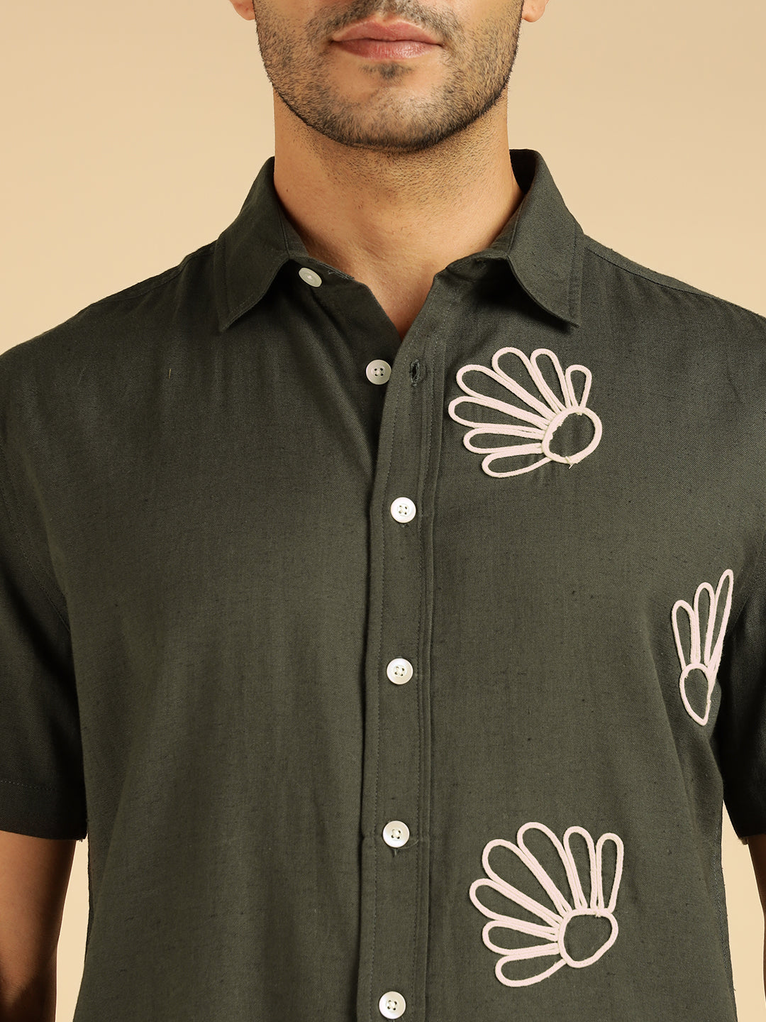 Charcoal Embroidered Pure Cotton Men Casual Shirt