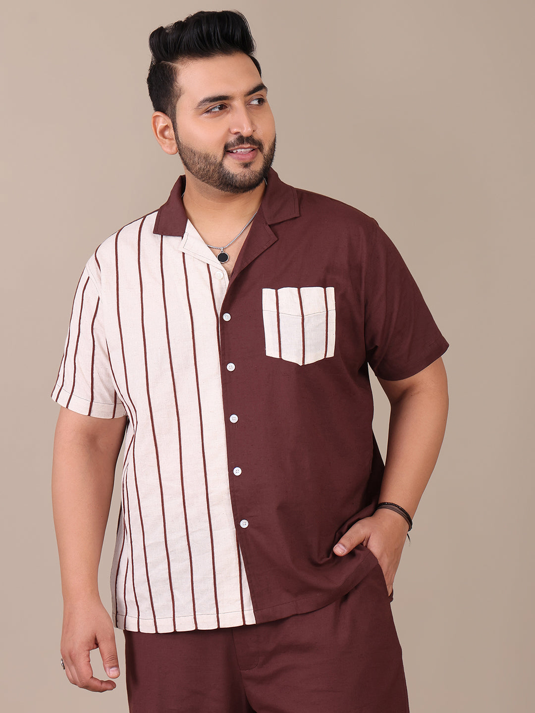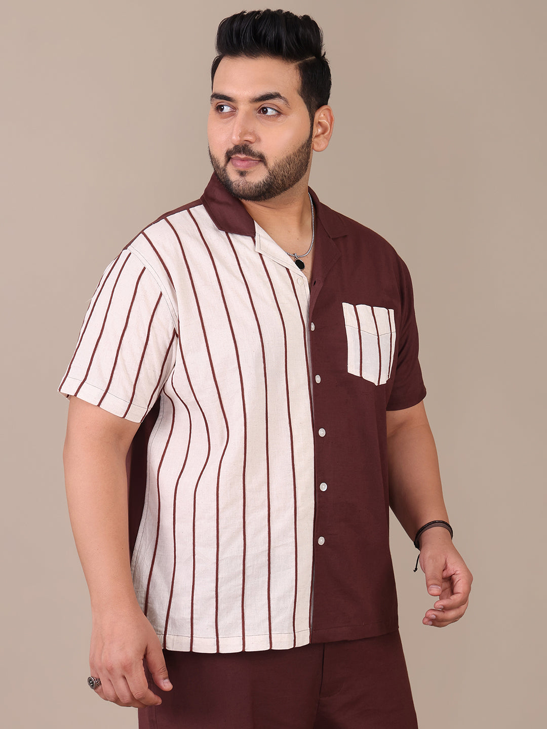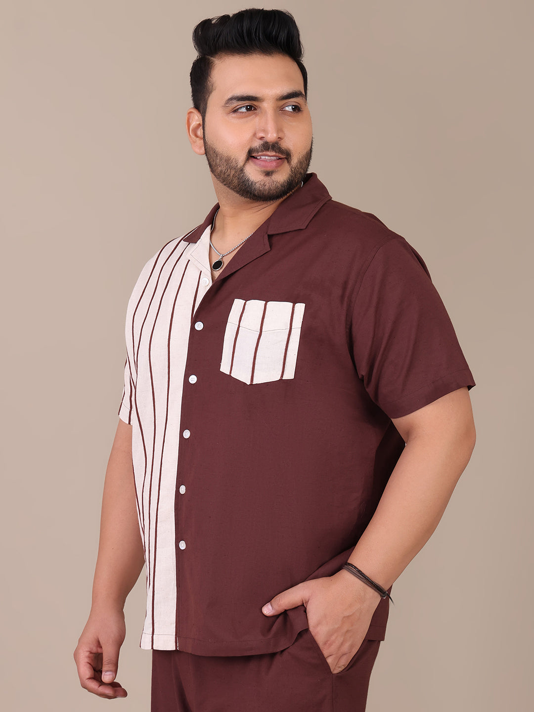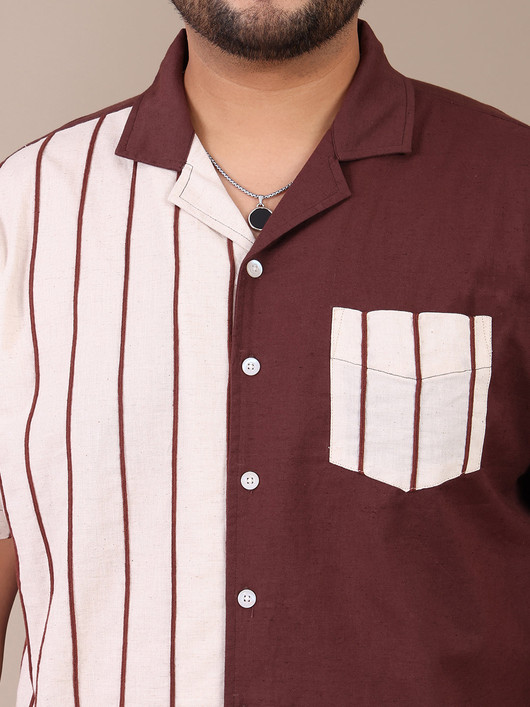 Colorblock Pure Cotton Embroidered Casual Plus Size Shirt For Men