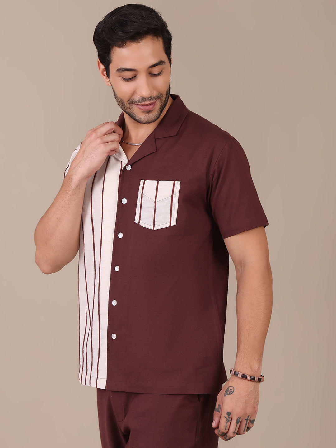 Colorblock Pure Cotton Embroidered Casual Shirt For Men