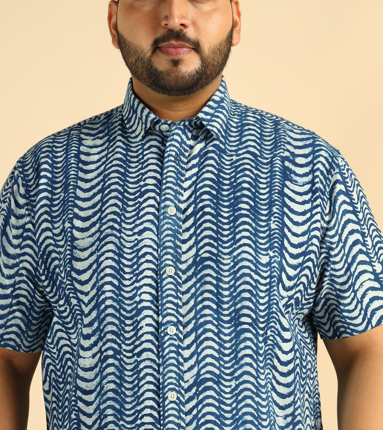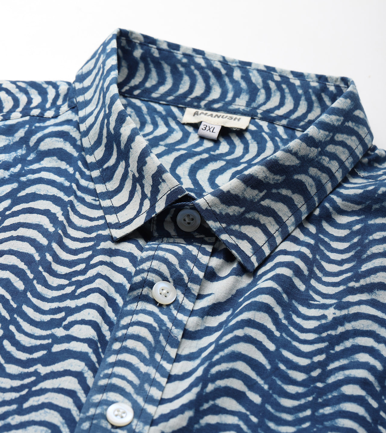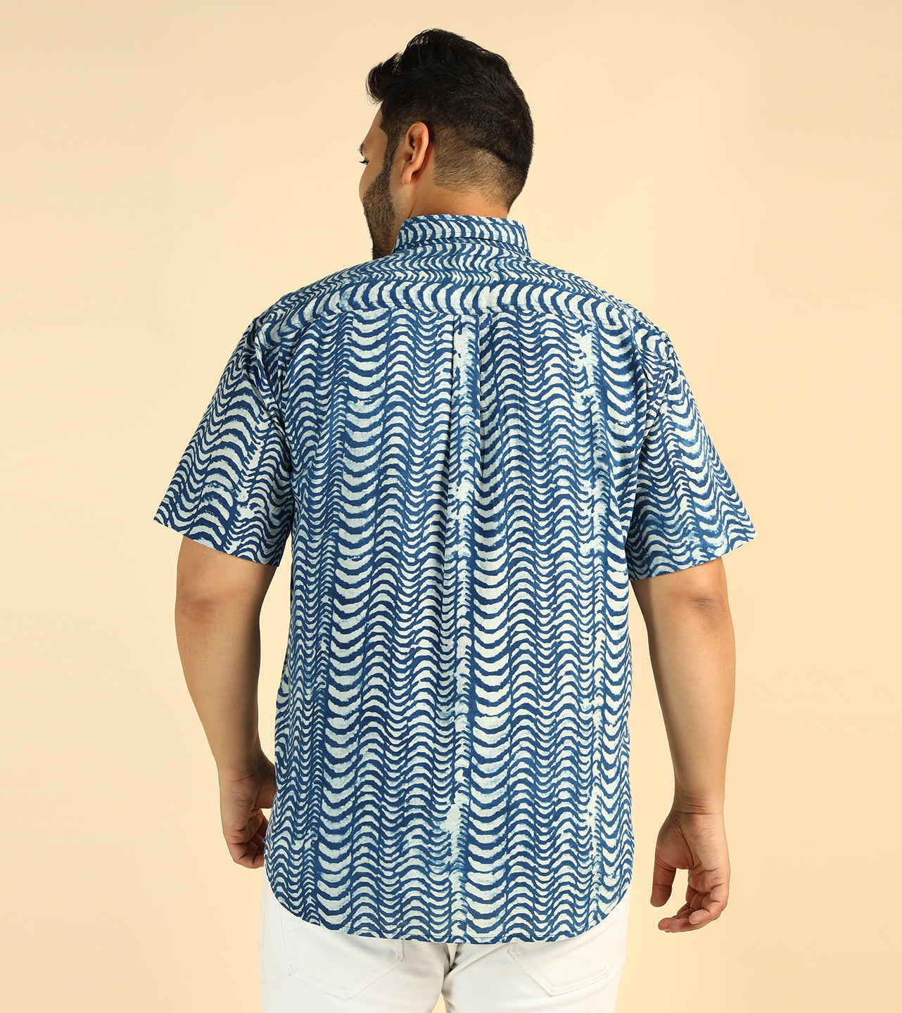 Cotton Wave Printed Plus Size Casual Indigo Men Shirt