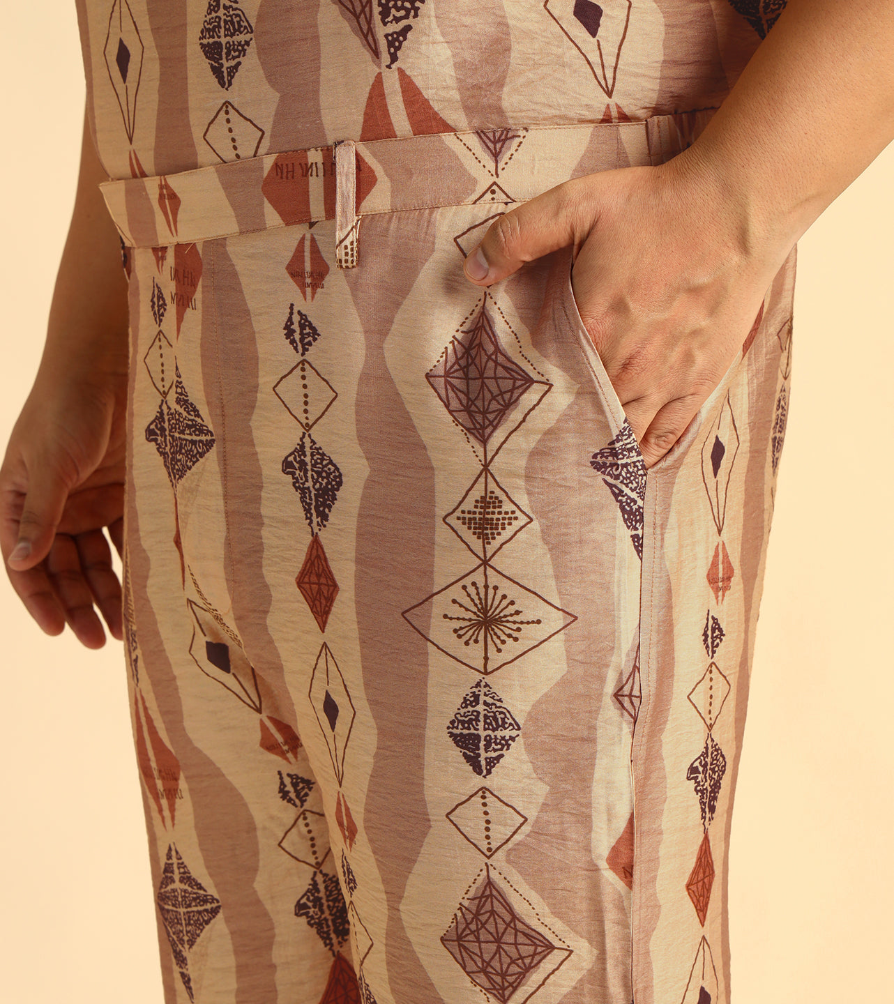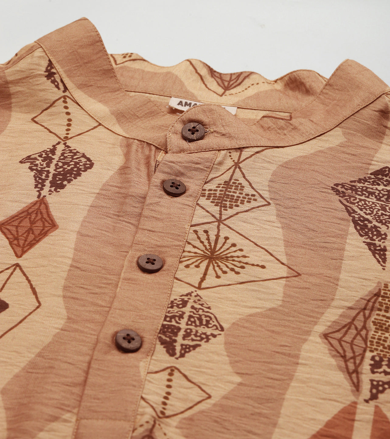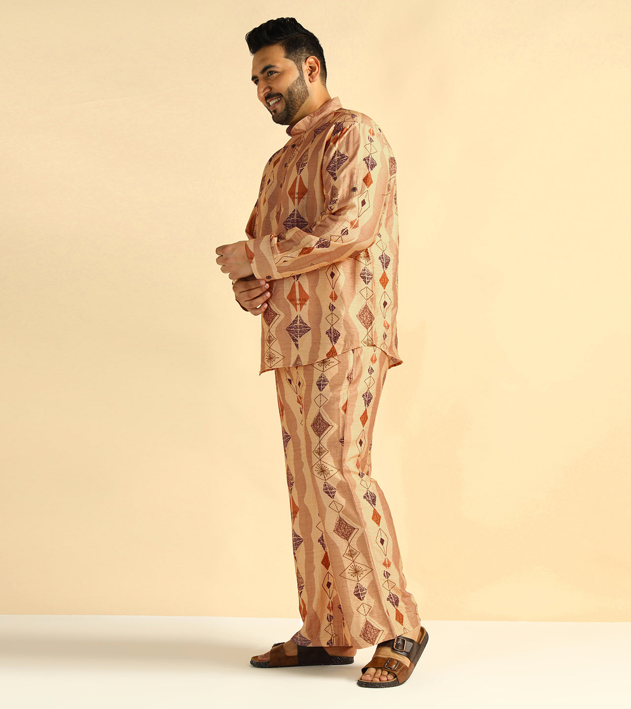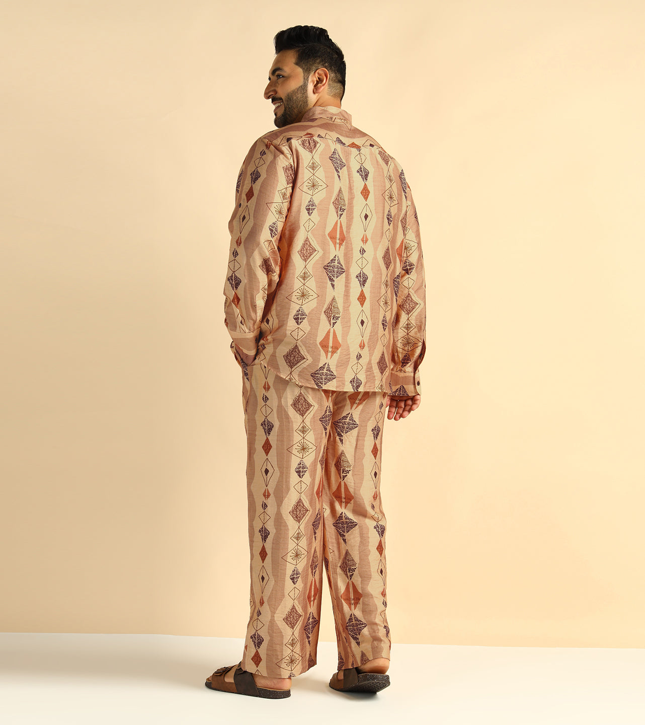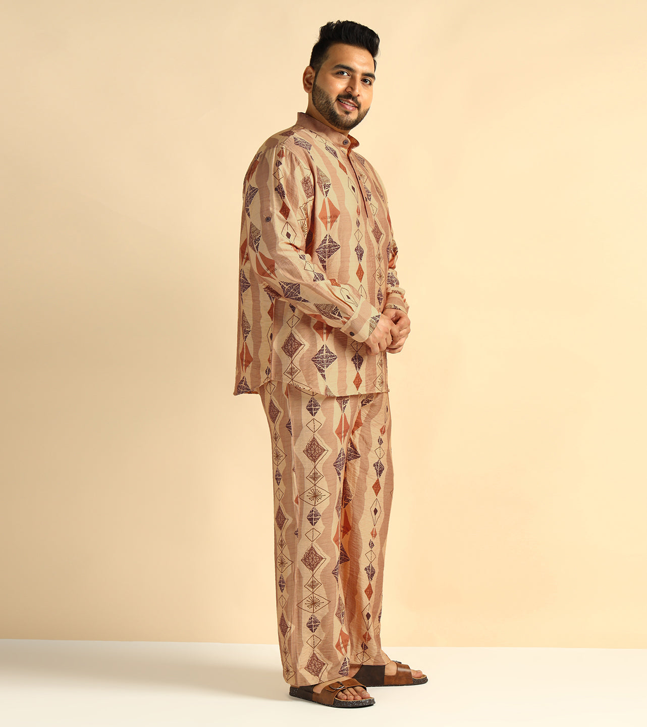 Dark Beige Geometrical Printed Men Plus Size Co-Ord Set