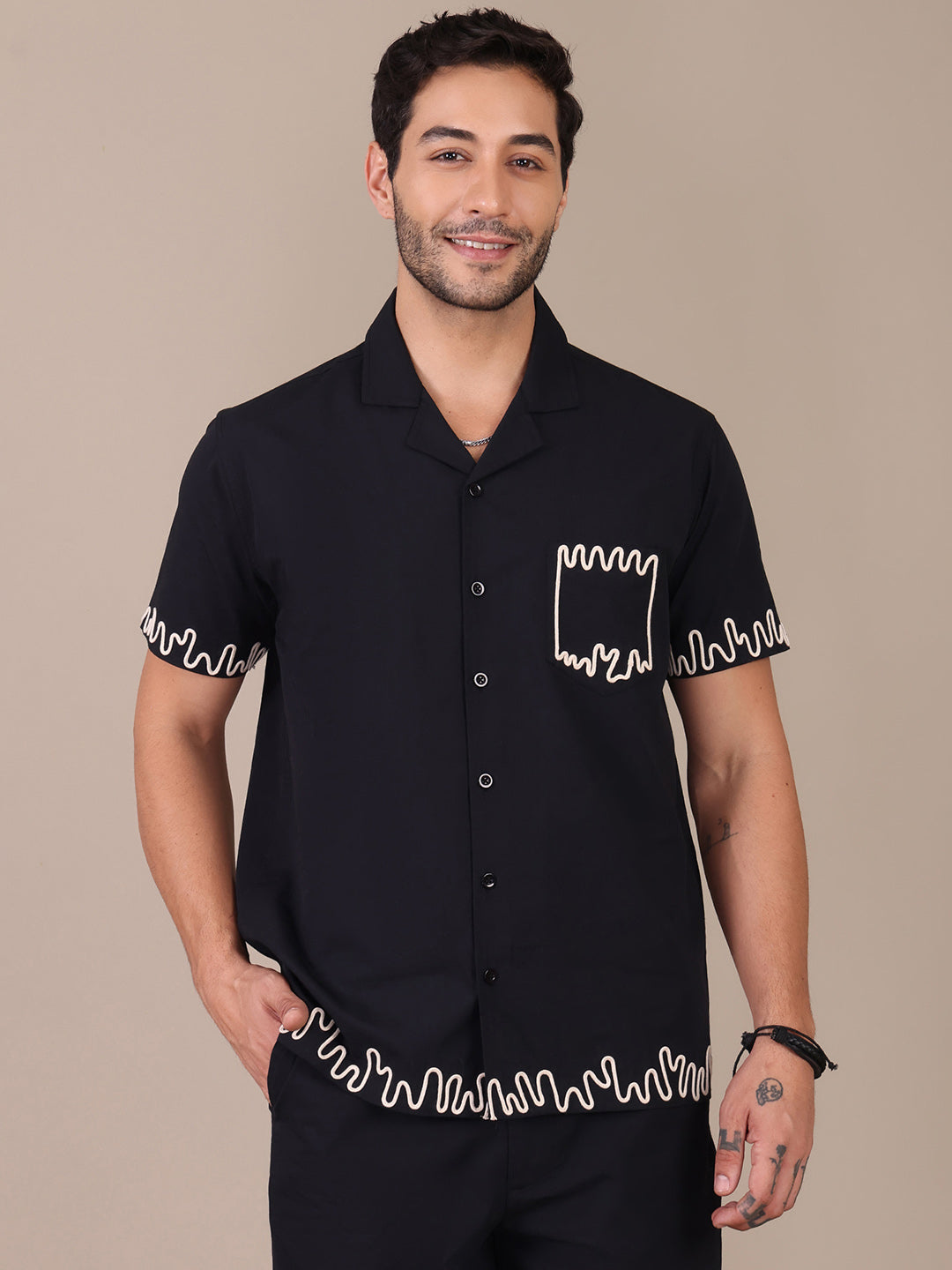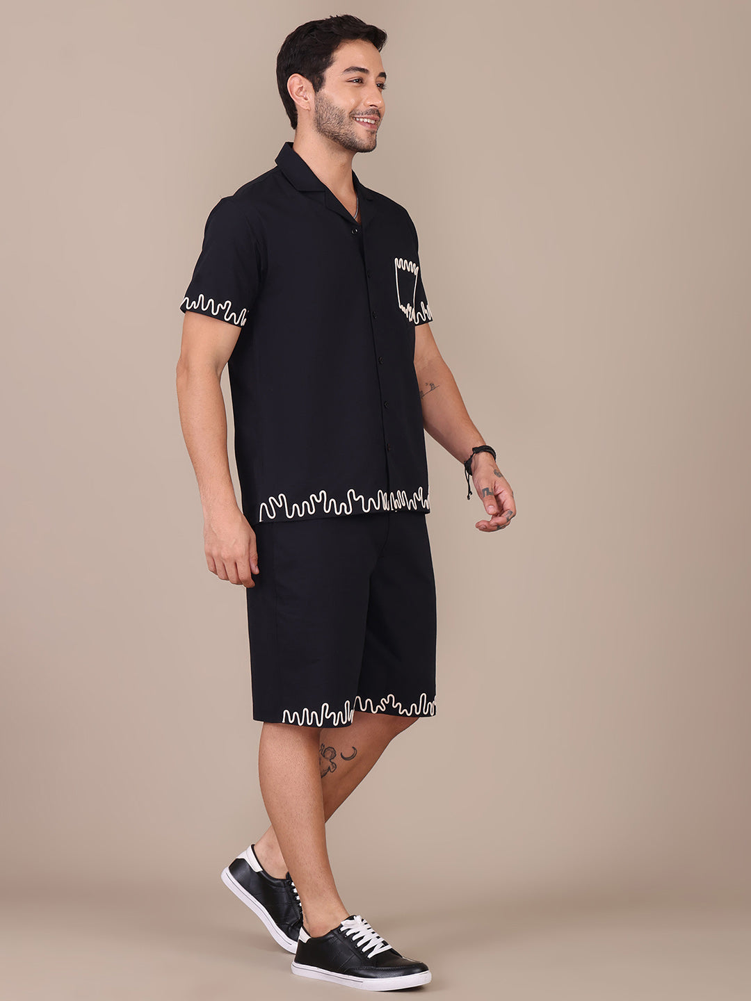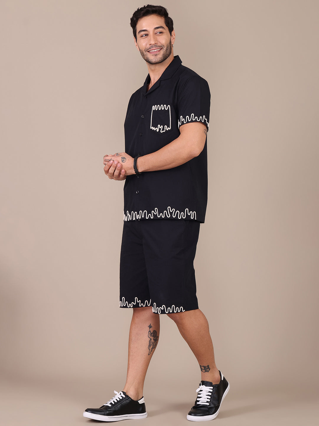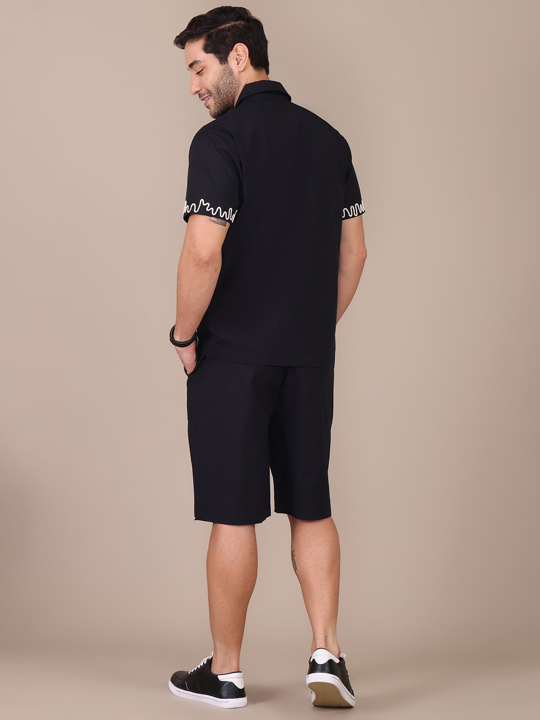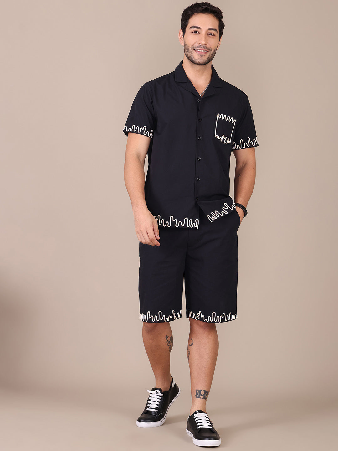 Embroidered Pure Cotton Black Co-Ord Set For Men