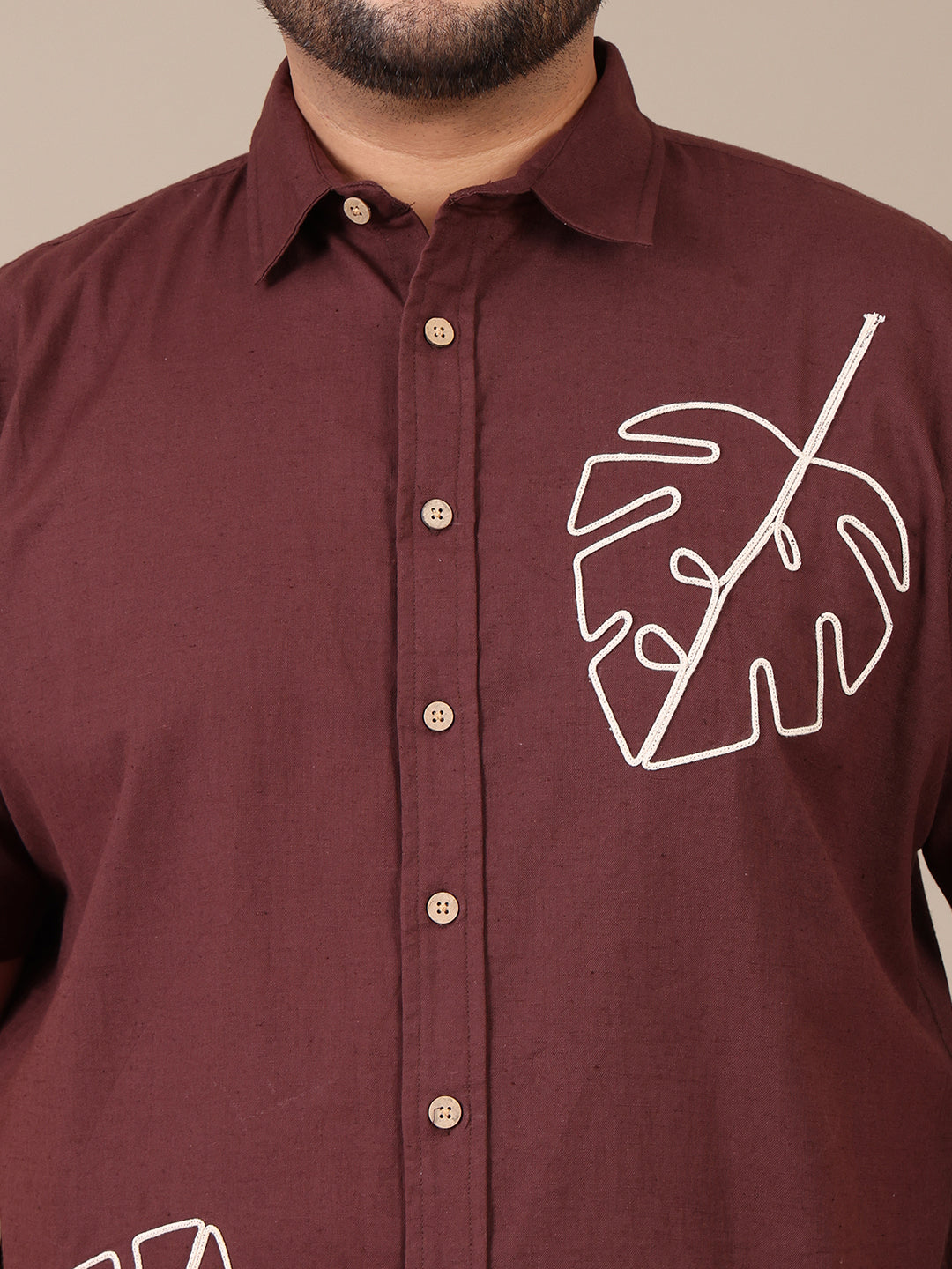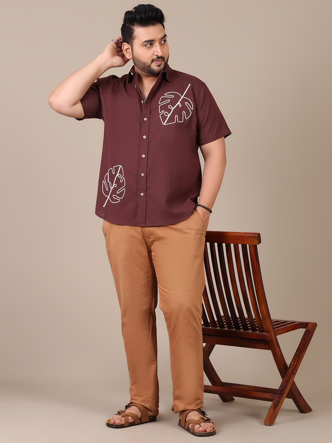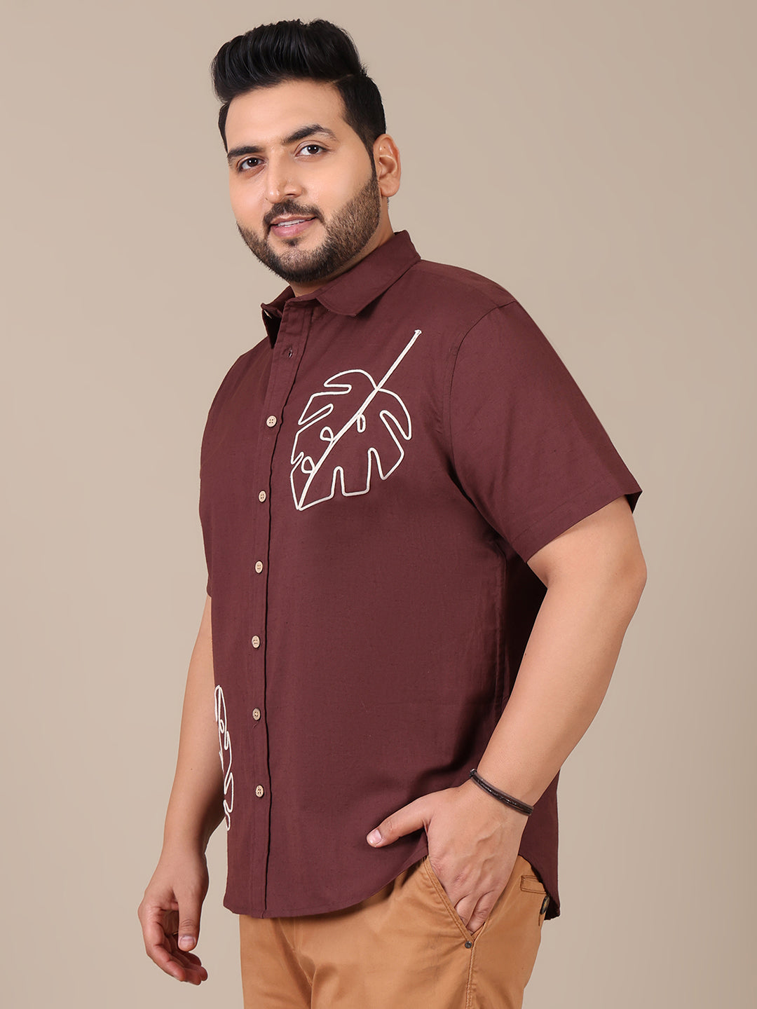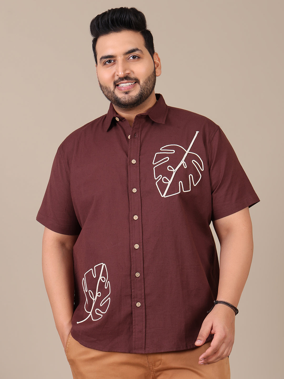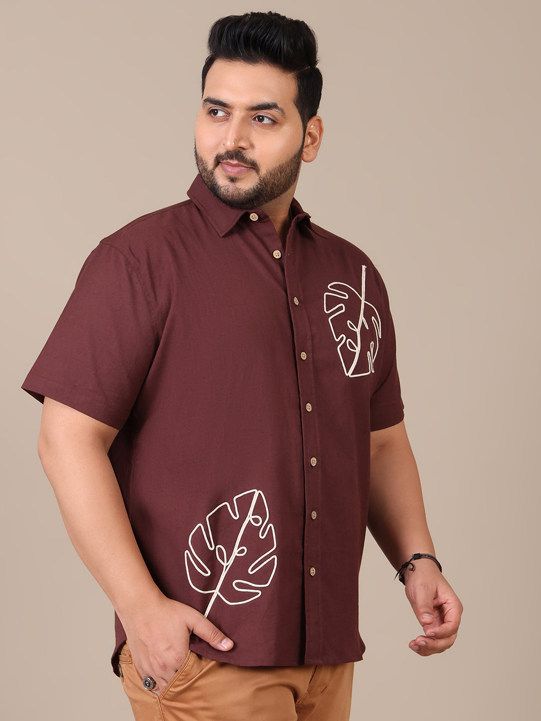 Embroidered Pure Cotton Casual Plus Size Shirt For Men