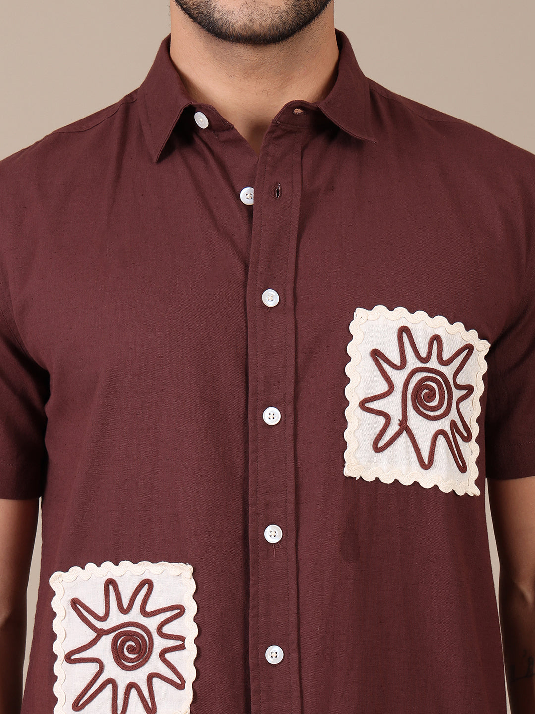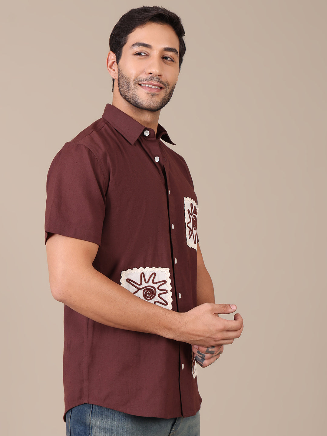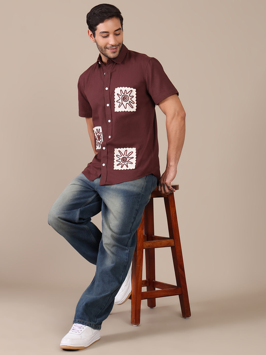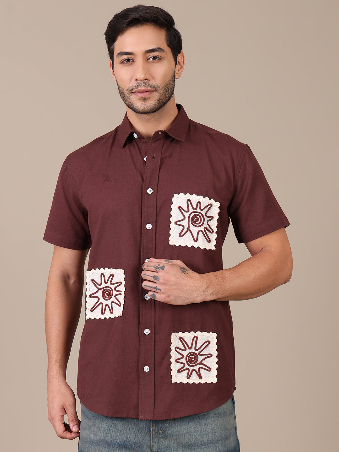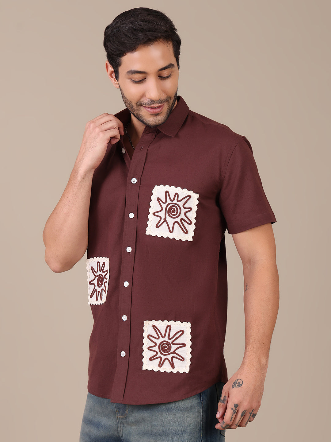 Embroidered Pure Cotton Patch Work Casual Shirt For Men