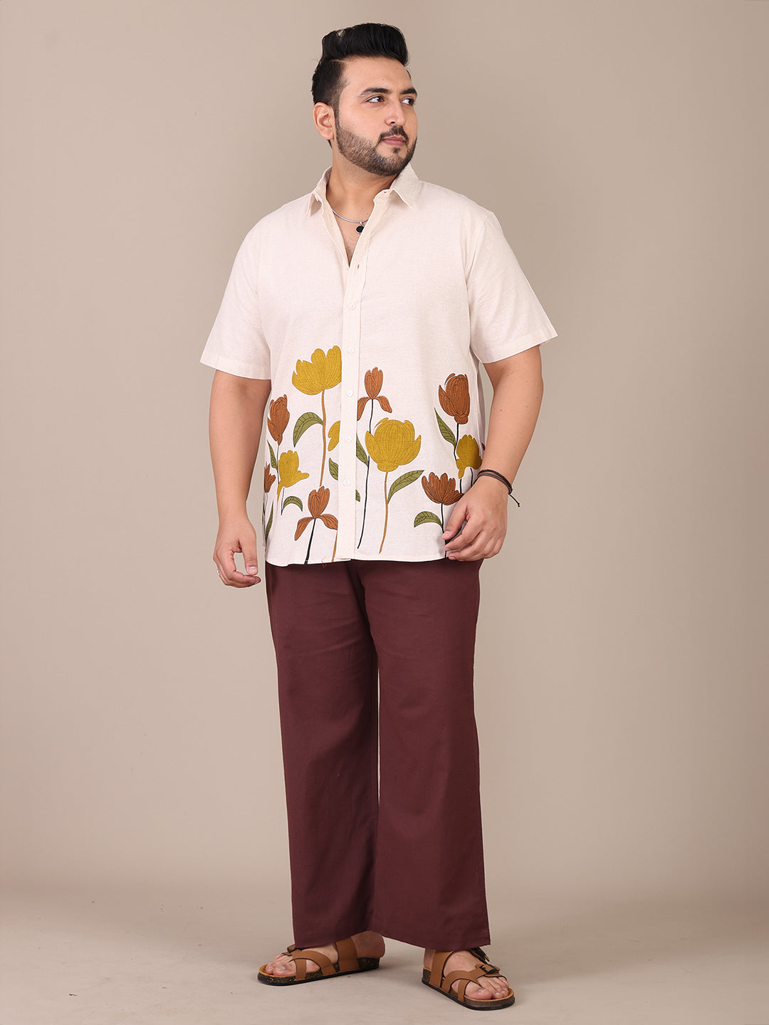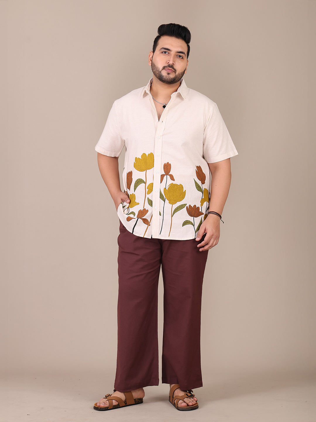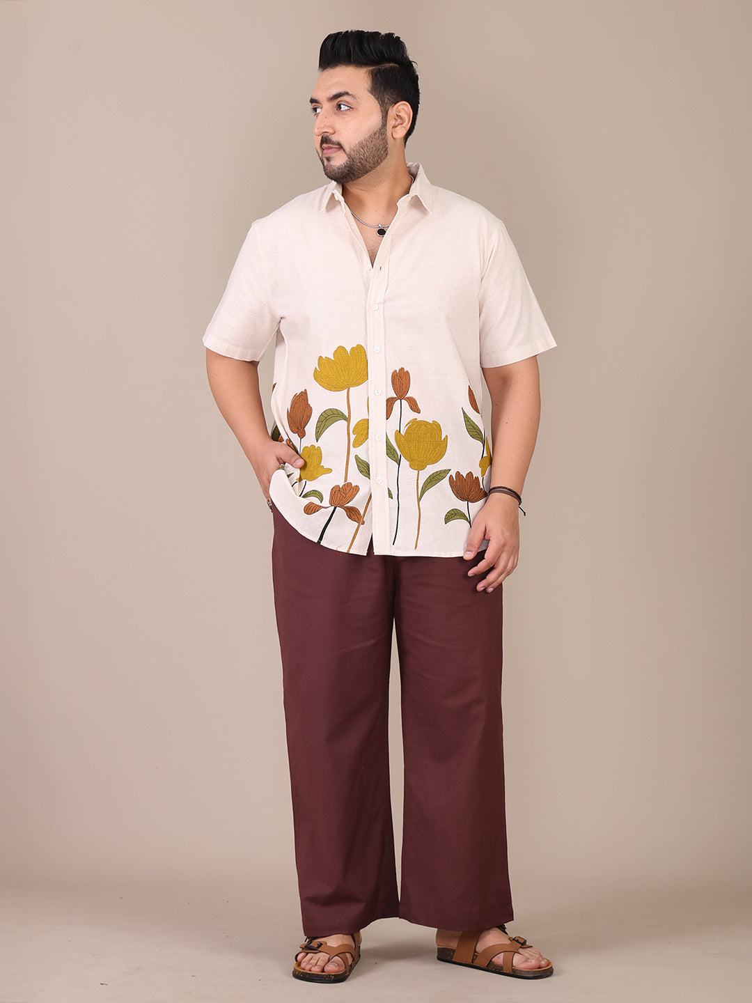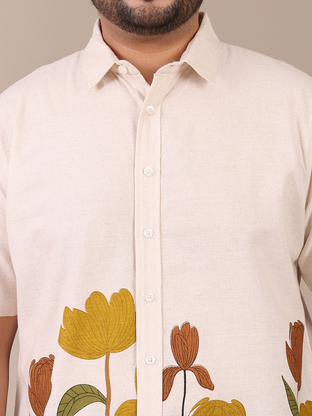 Floral Placement Printed Pure Cotton Plus Size Co-Ord Set For Men