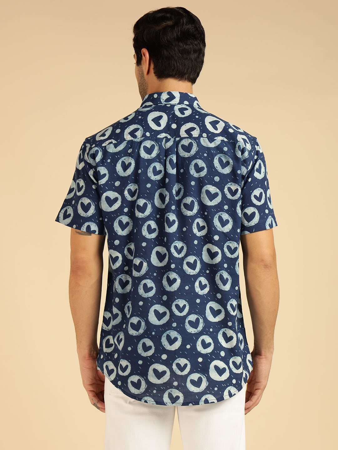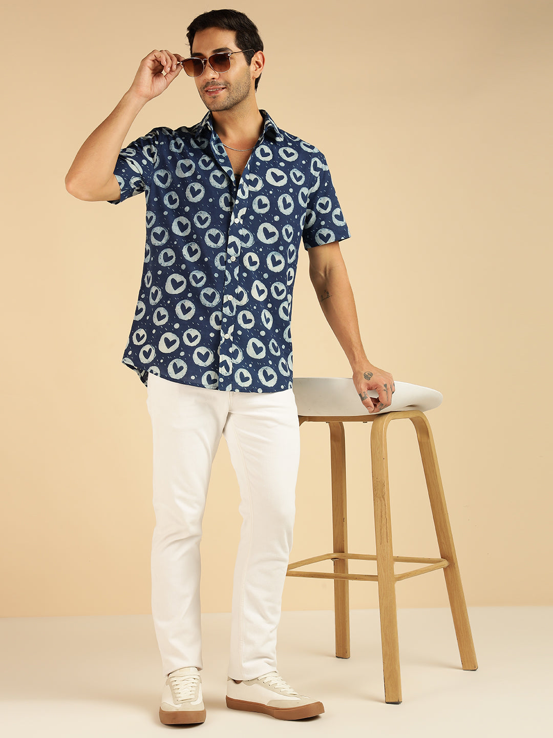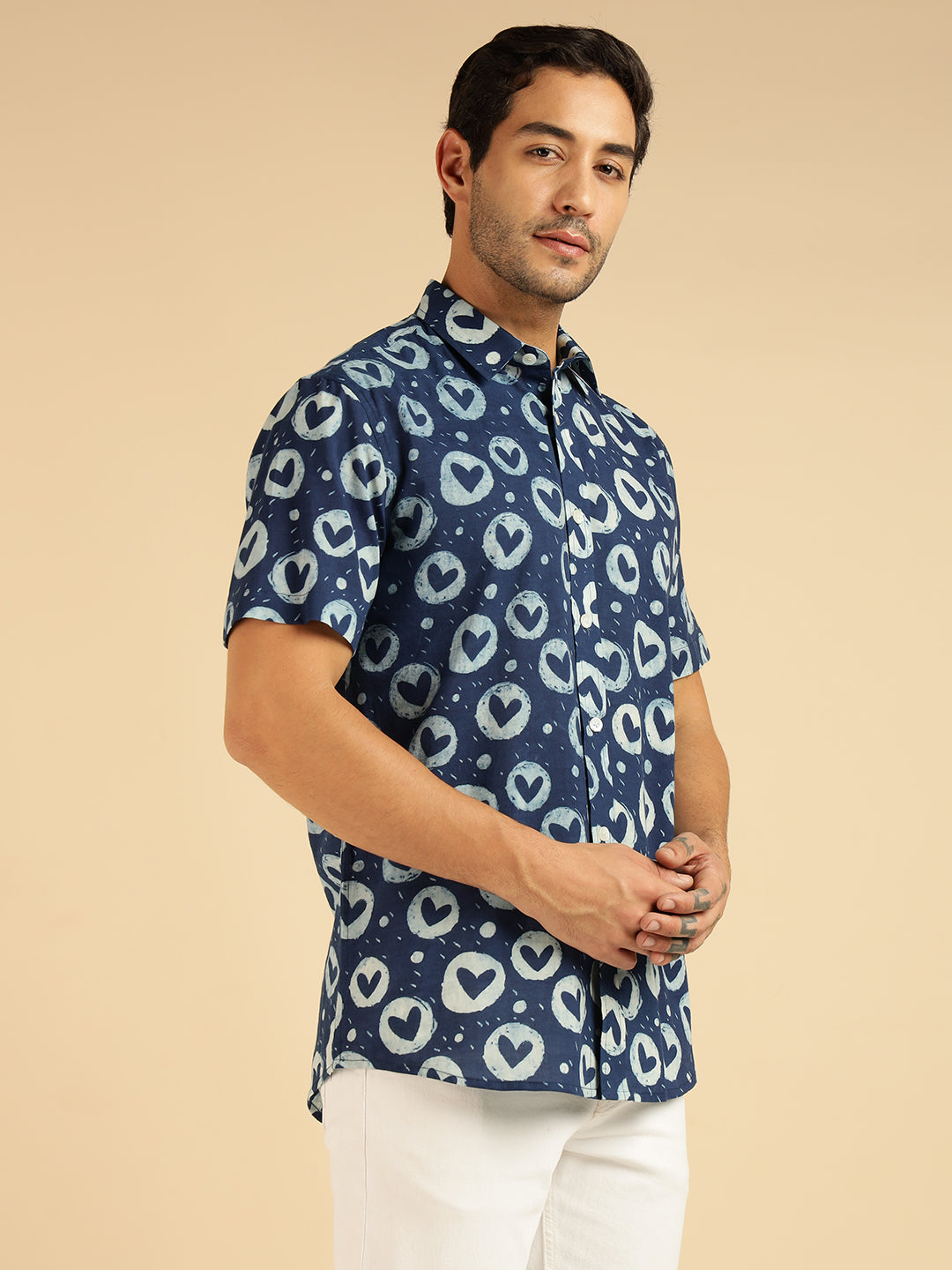 Indigo Pure Cotton Heart Printed Men Casual Shirt
