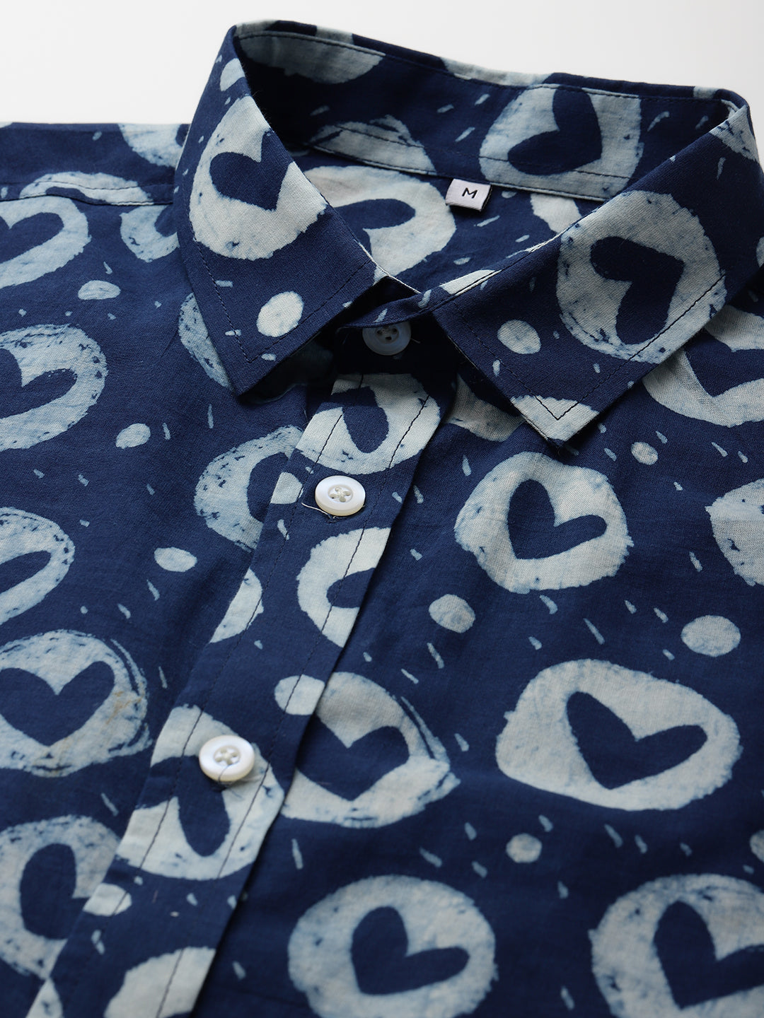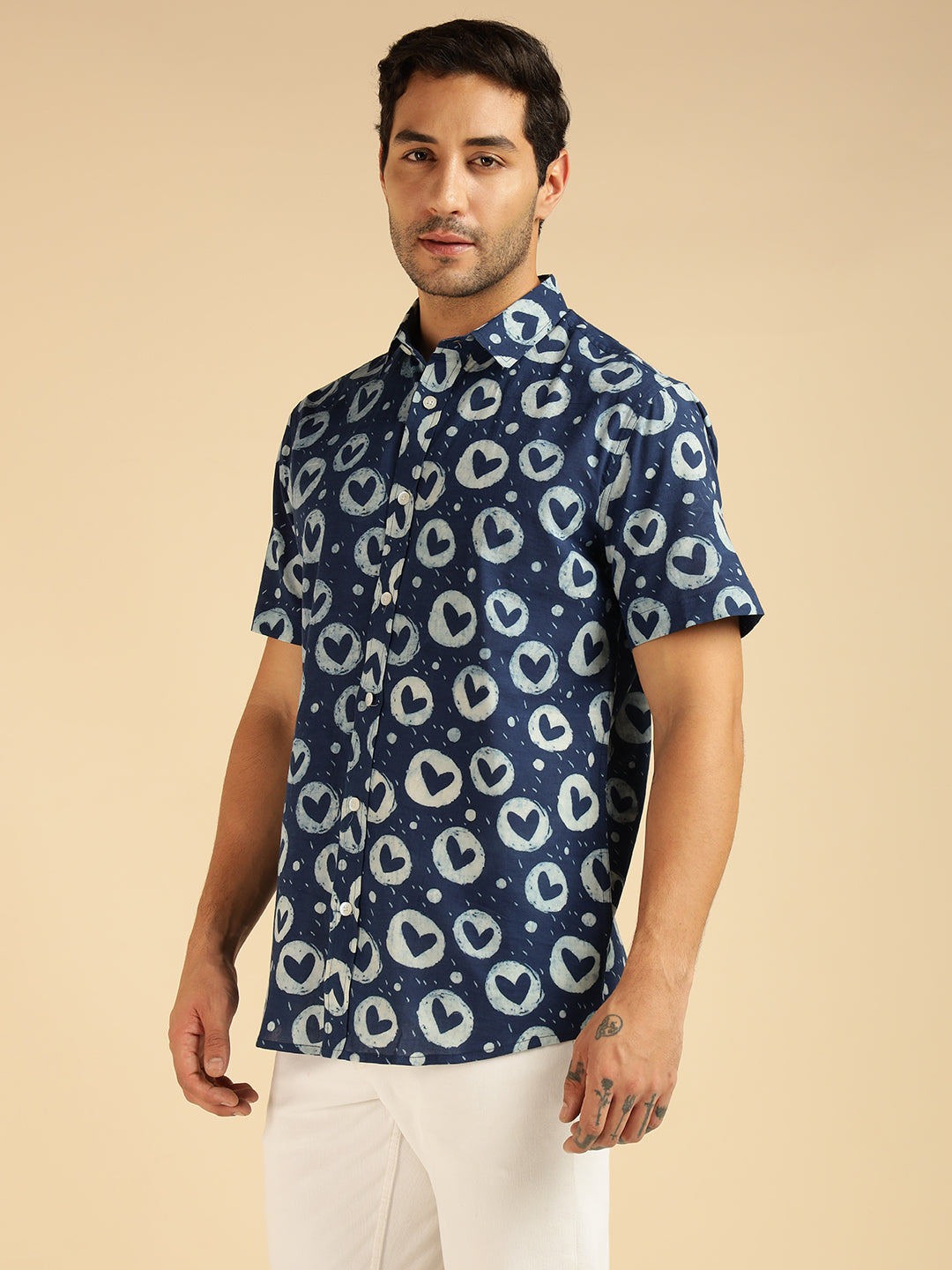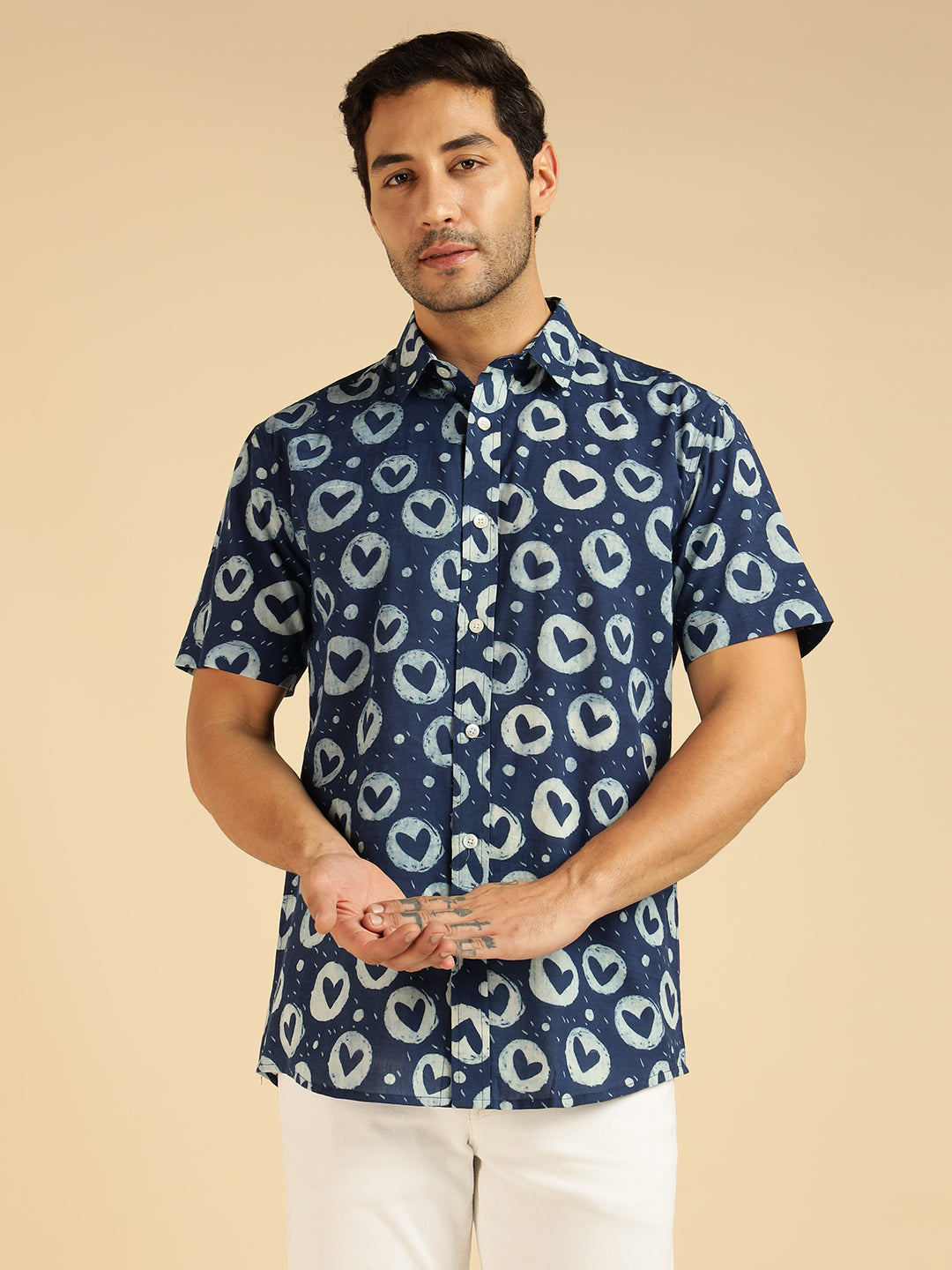 Indigo Pure Cotton Heart Printed Men Casual Shirt