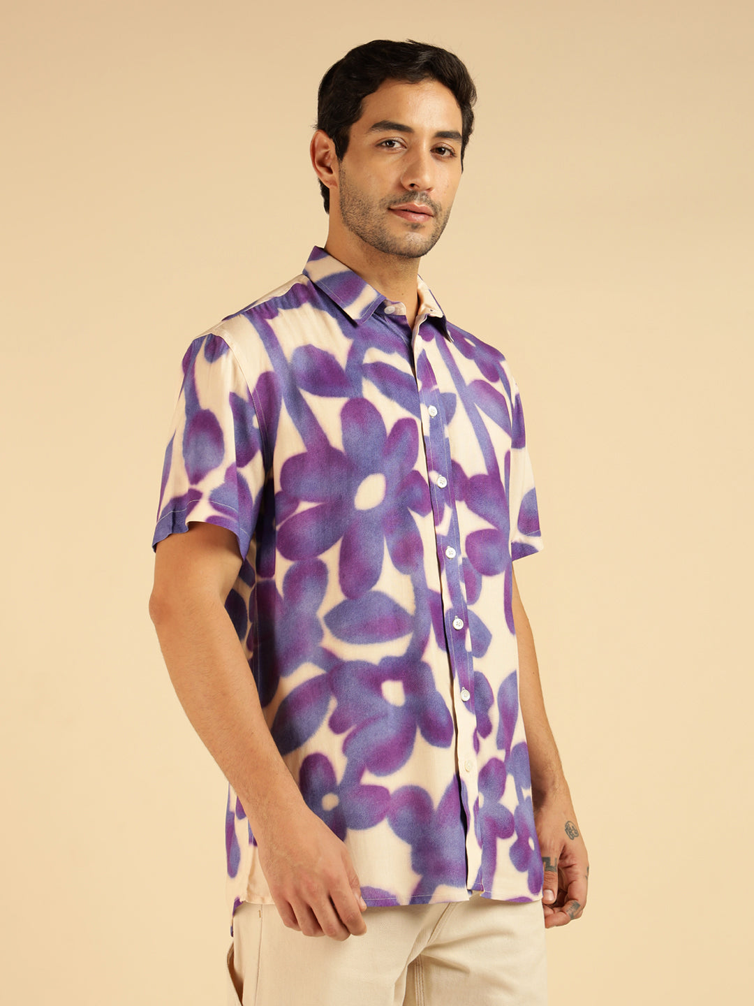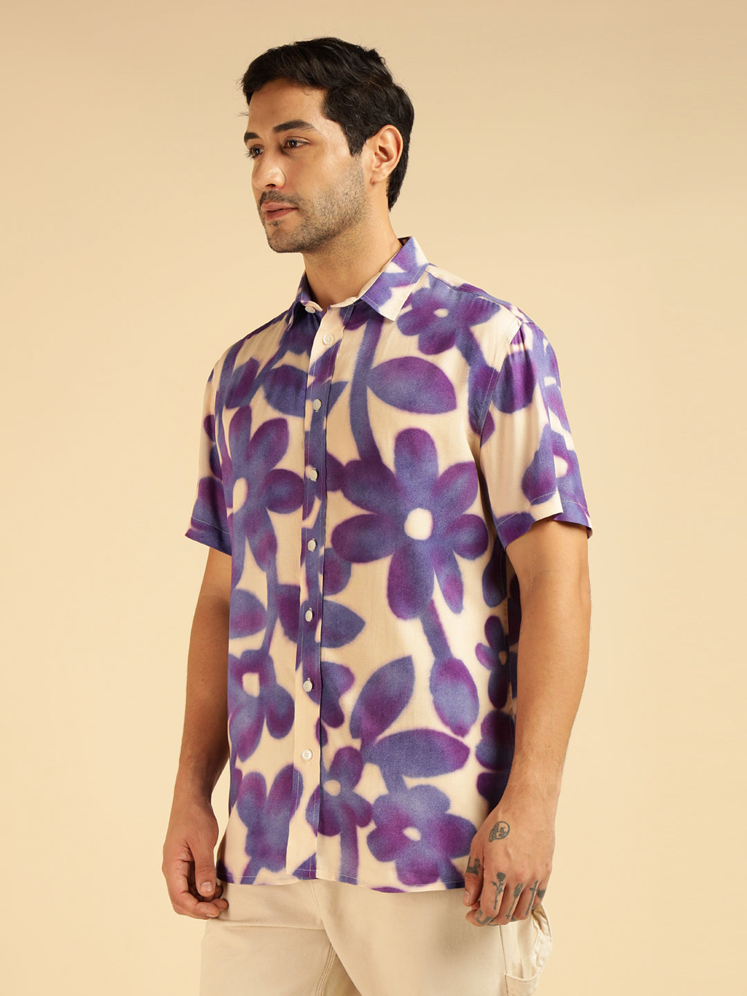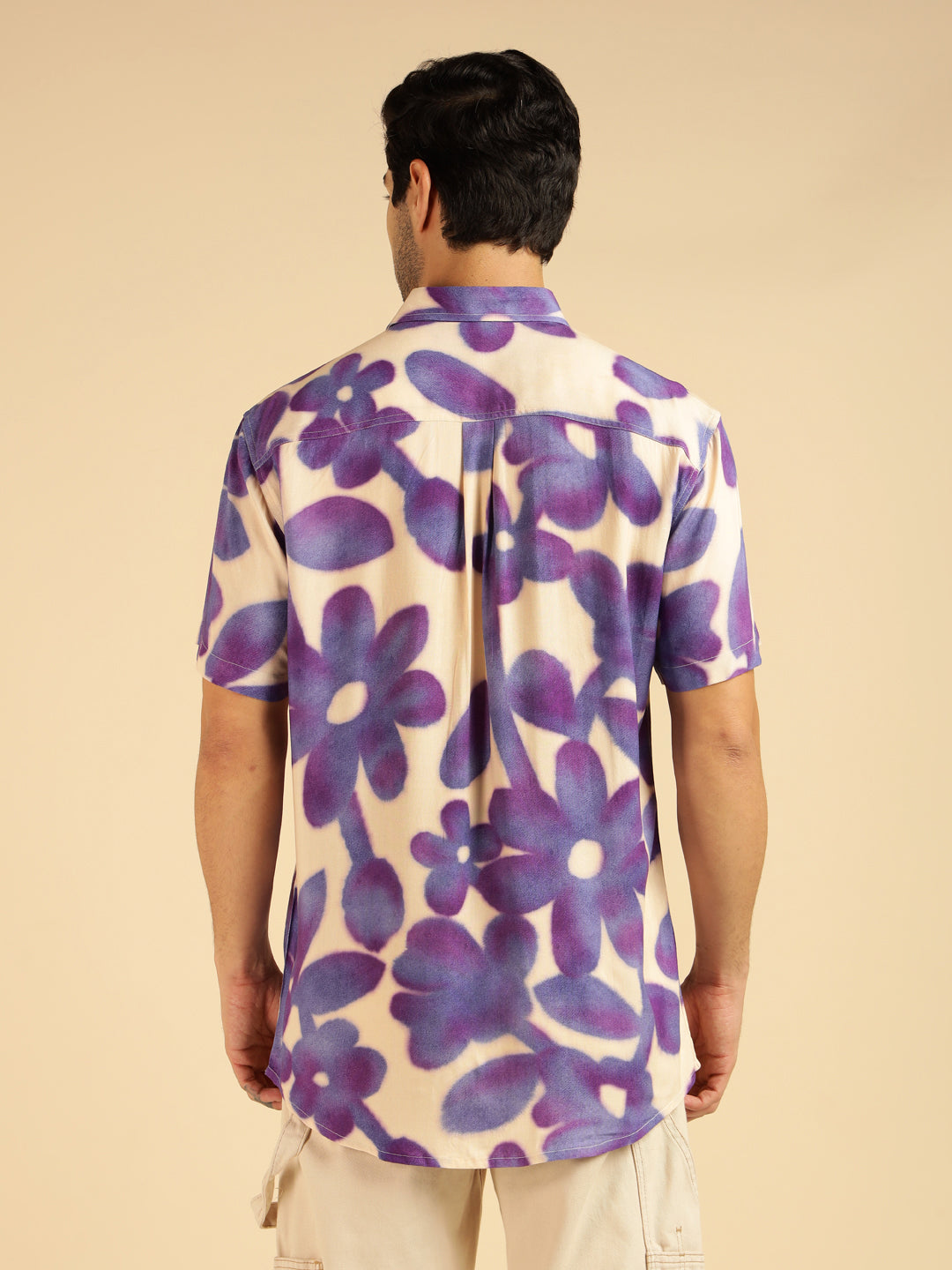 Lavender Floral Pure Rayon Men Casual Shirt