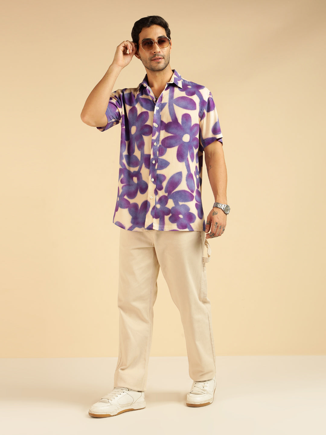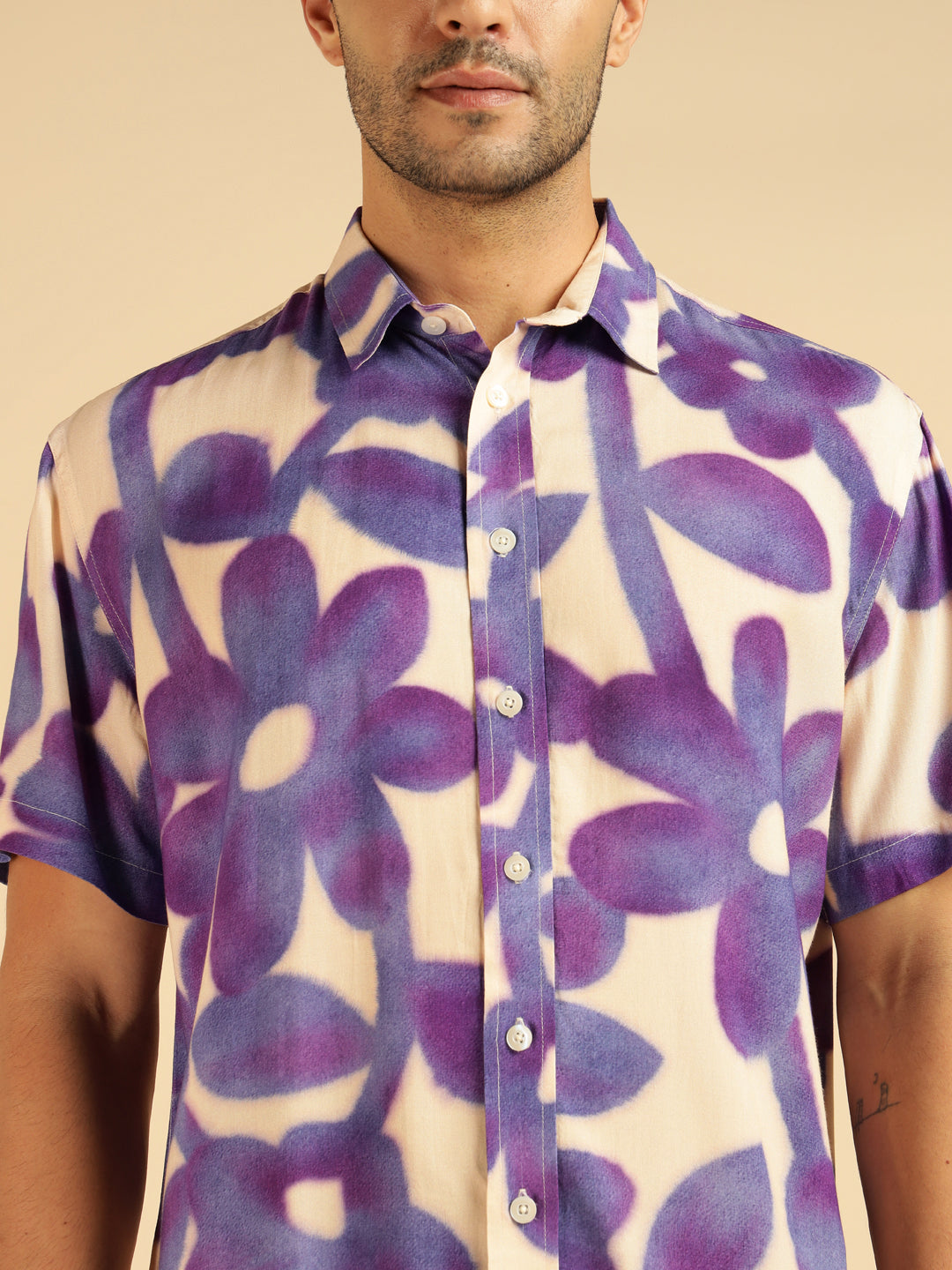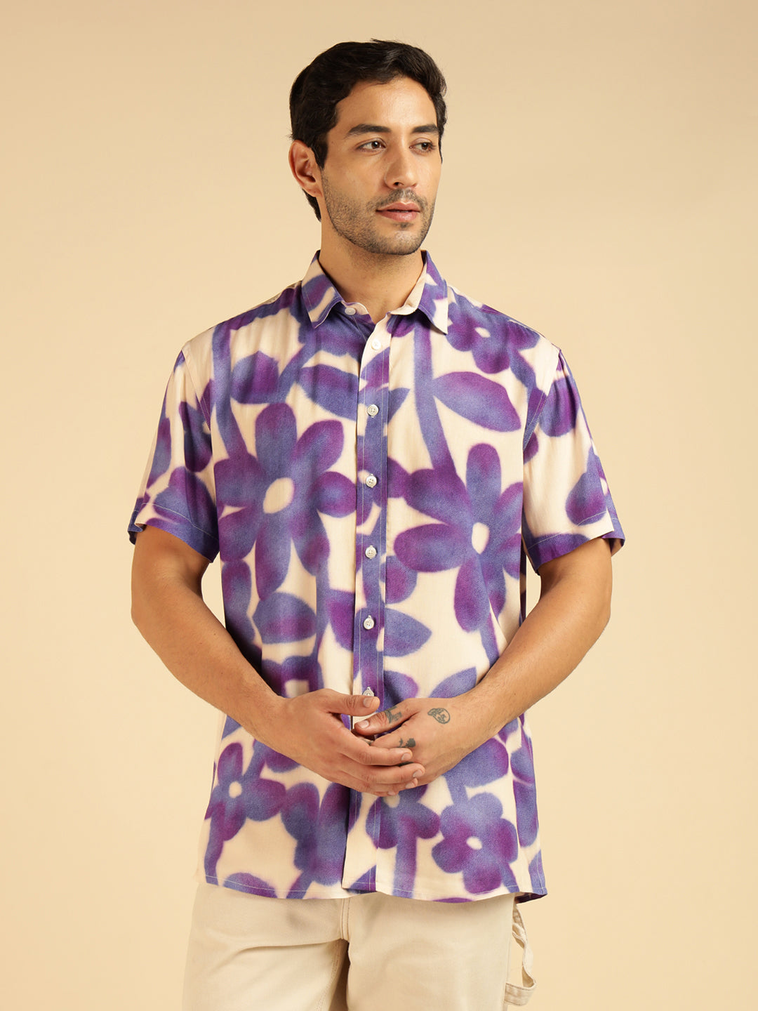 Lavender Floral Pure Rayon Men Casual Shirt