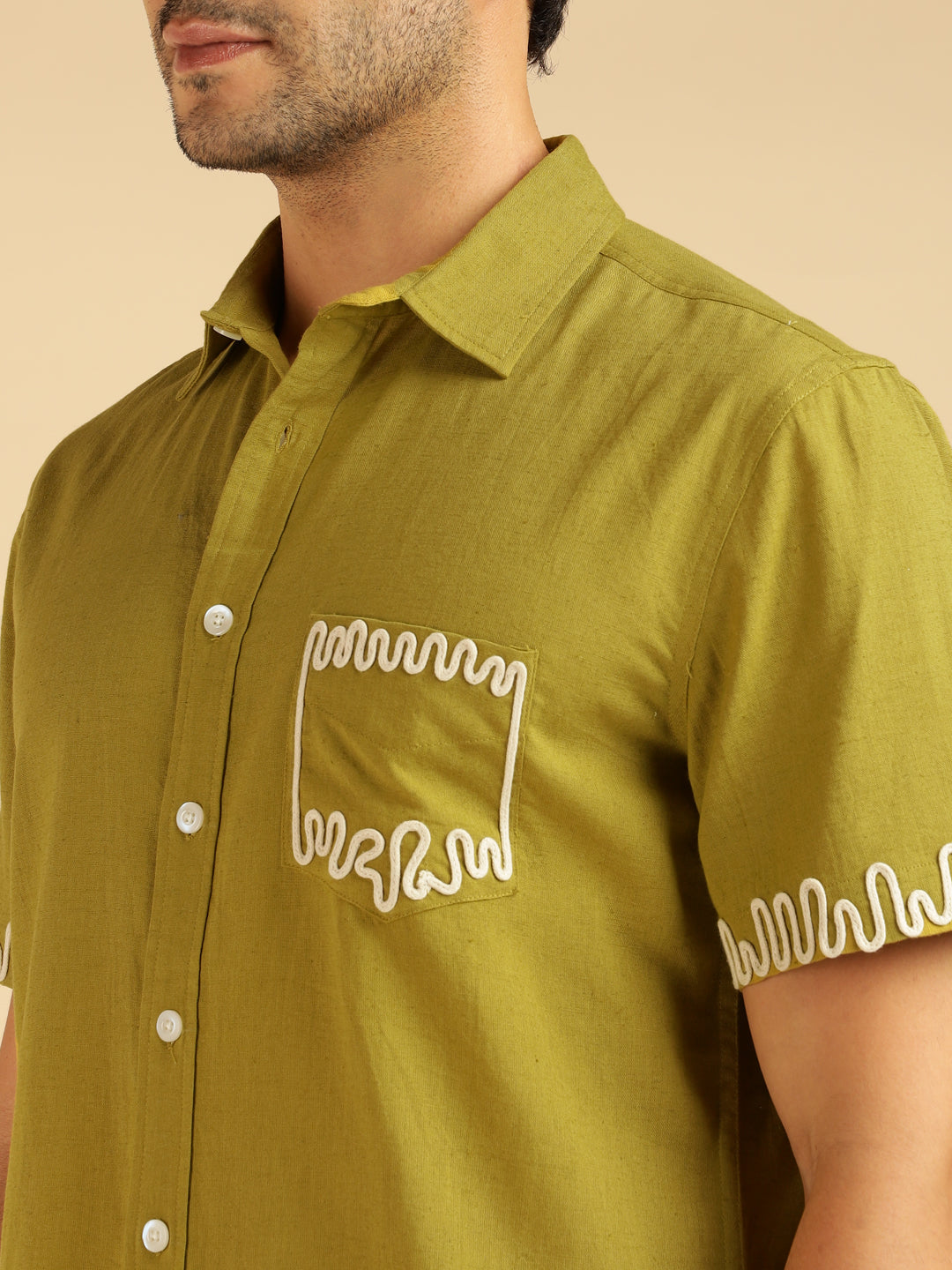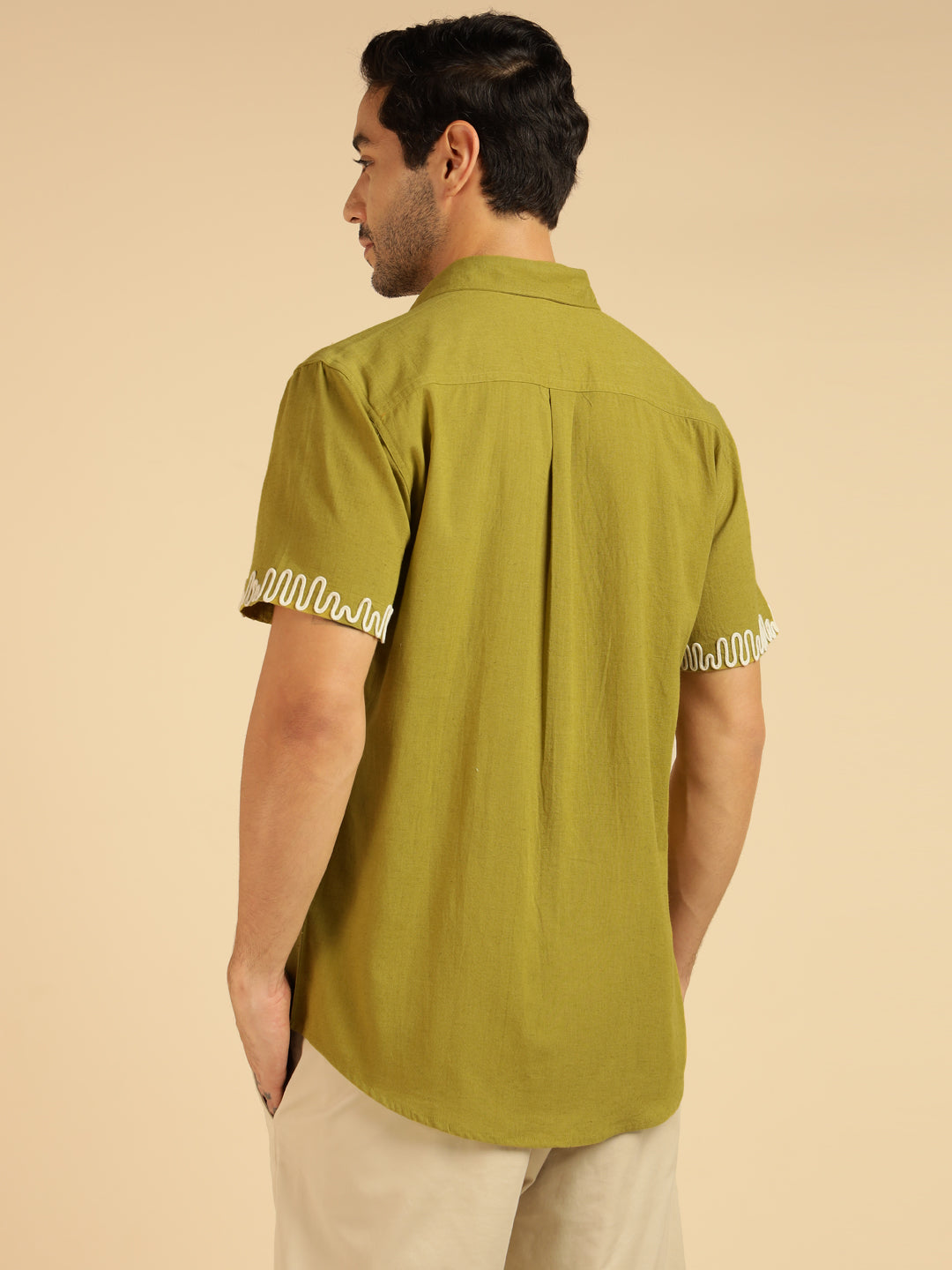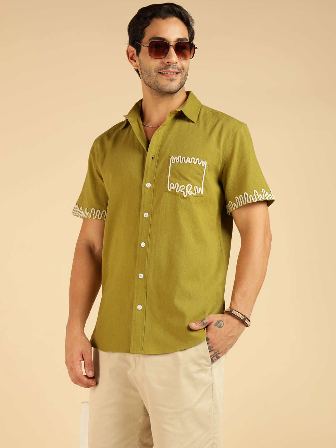 Lemon Yellow Embroidered Pure Cotton Men Casual Shirt