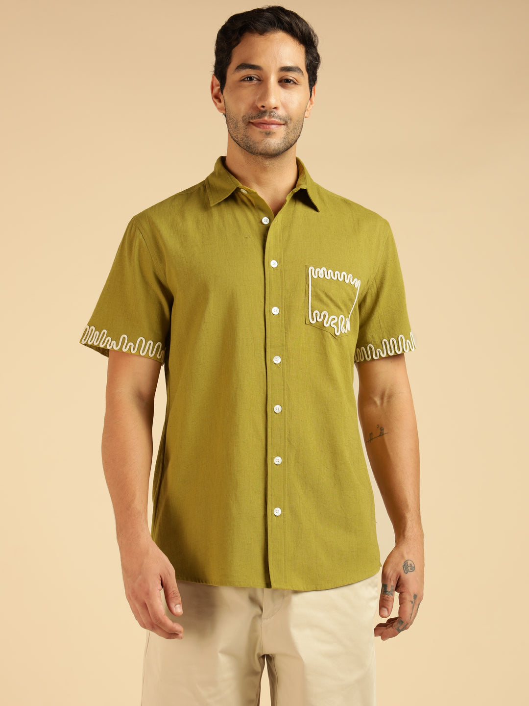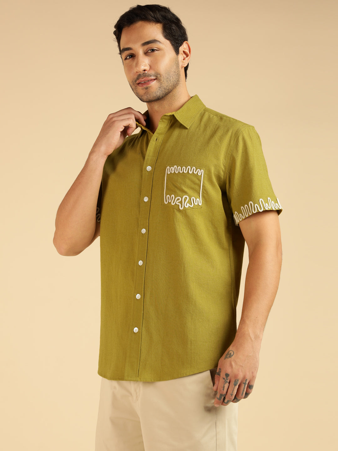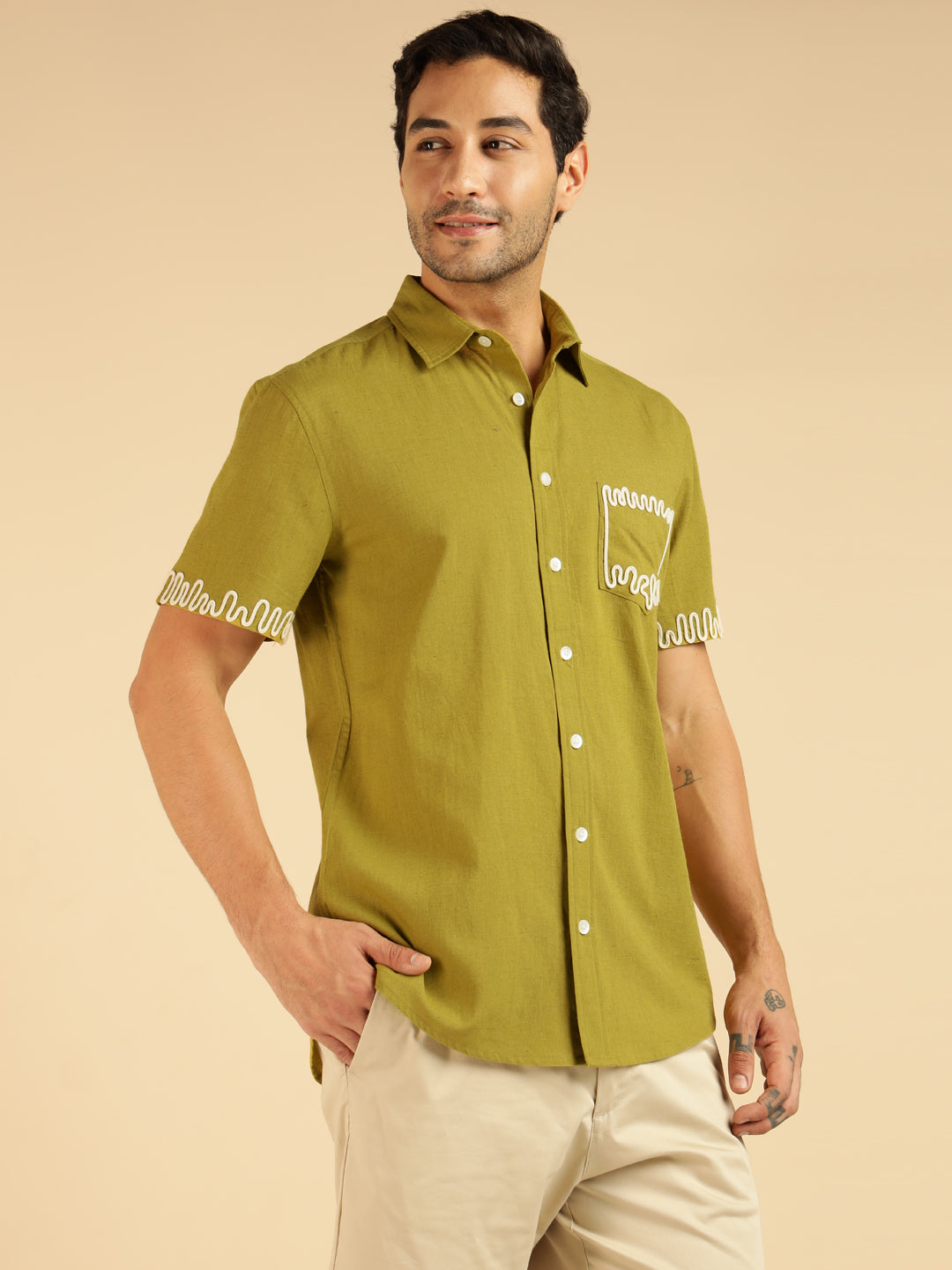 Lemon Yellow Embroidered Pure Cotton Men Casual Shirt