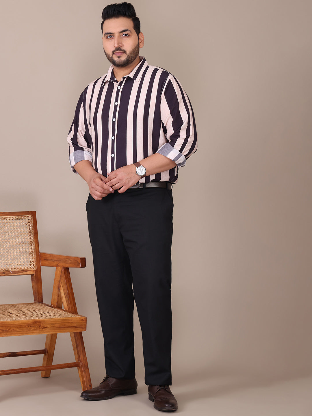 Multi Striped Formal Plus Size Shirt For Men