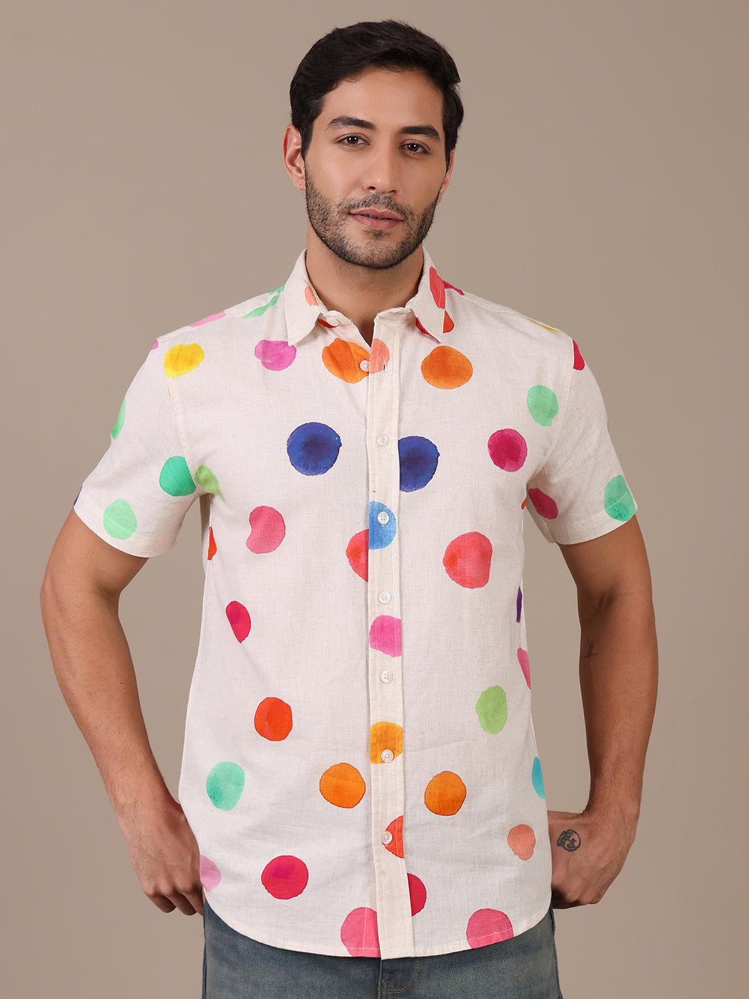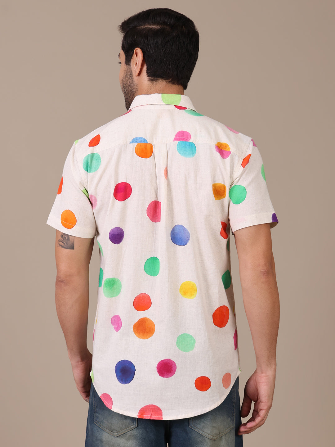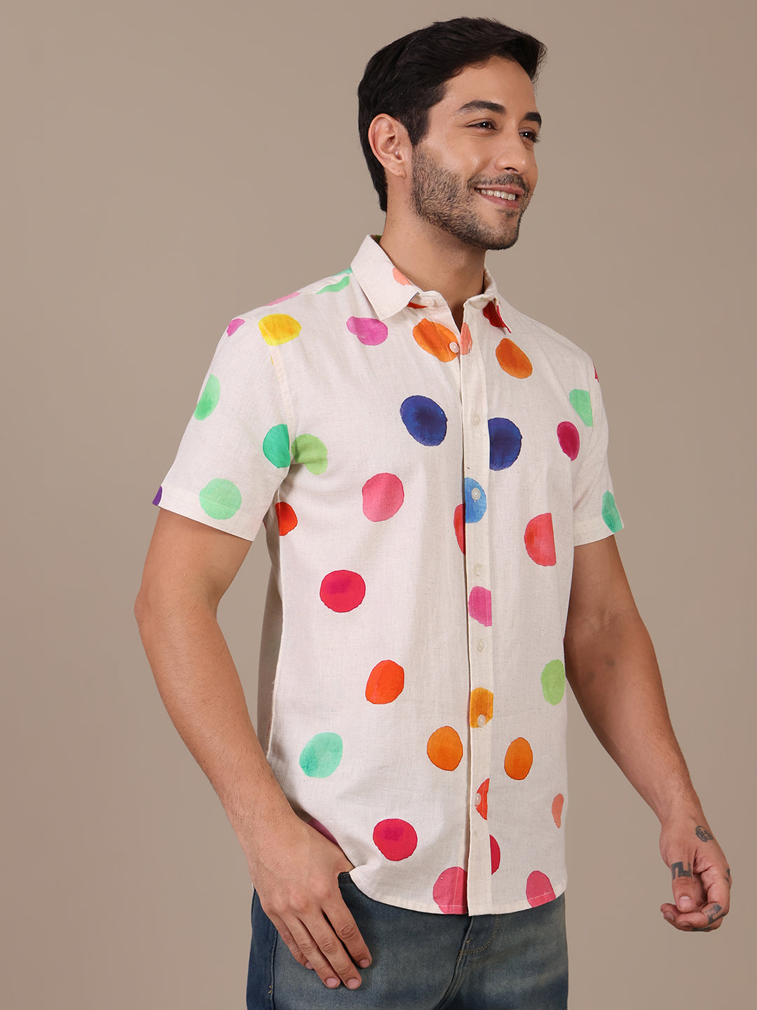 Multicolor Pure Cotton Polka Casual Shirt For Men