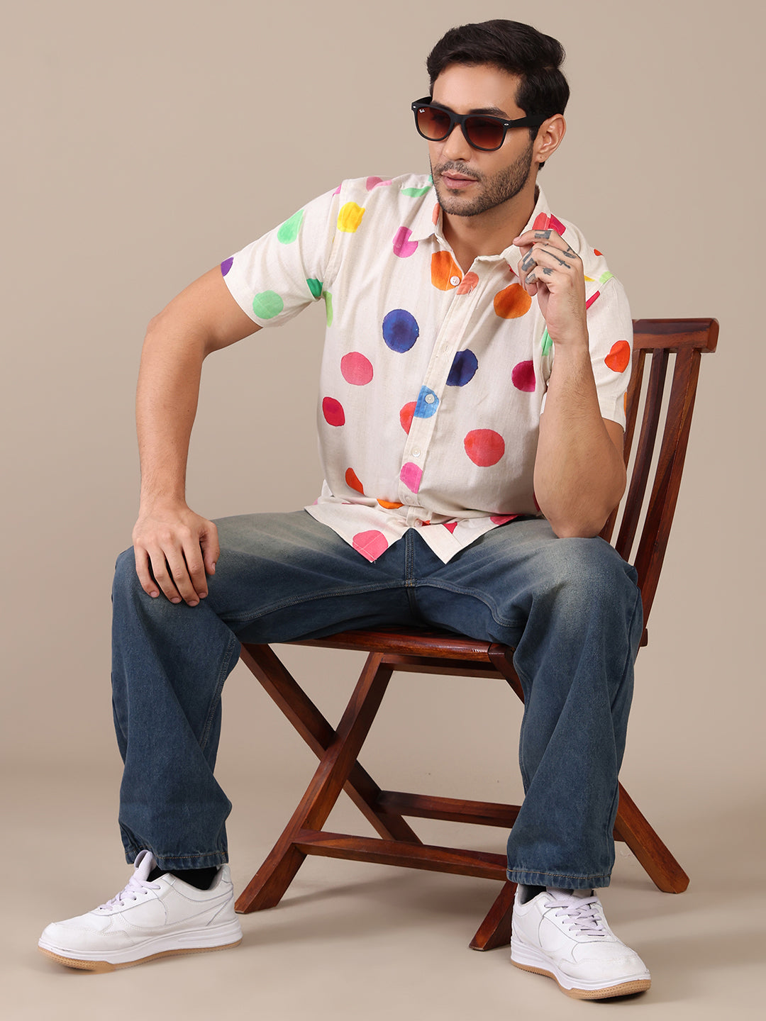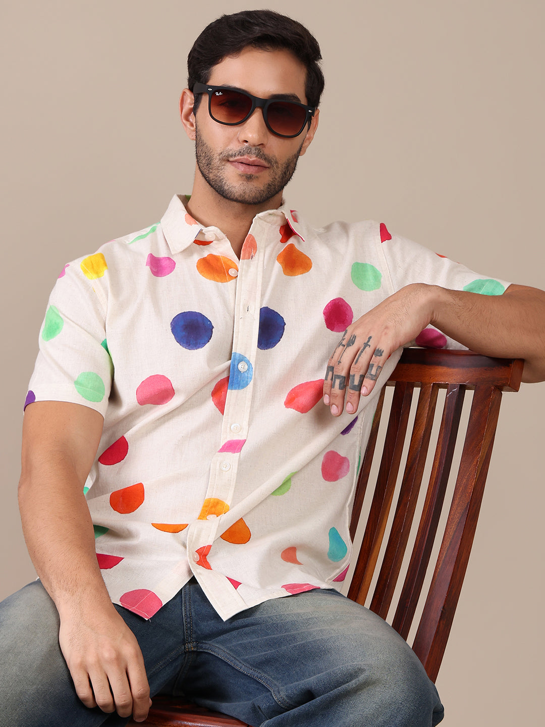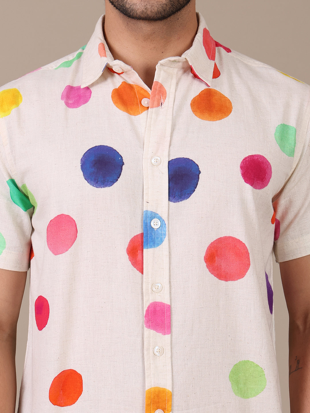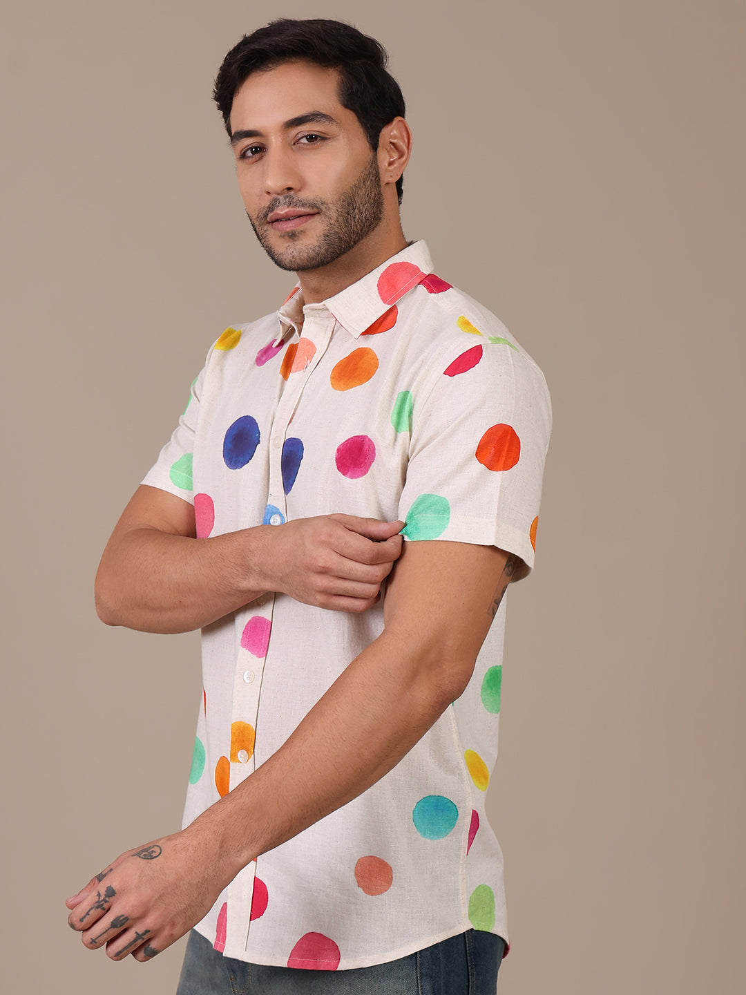 Multicolor Pure Cotton Polka Casual Shirt For Men