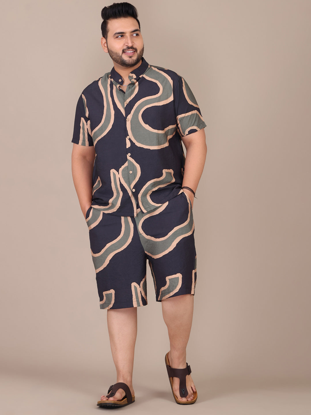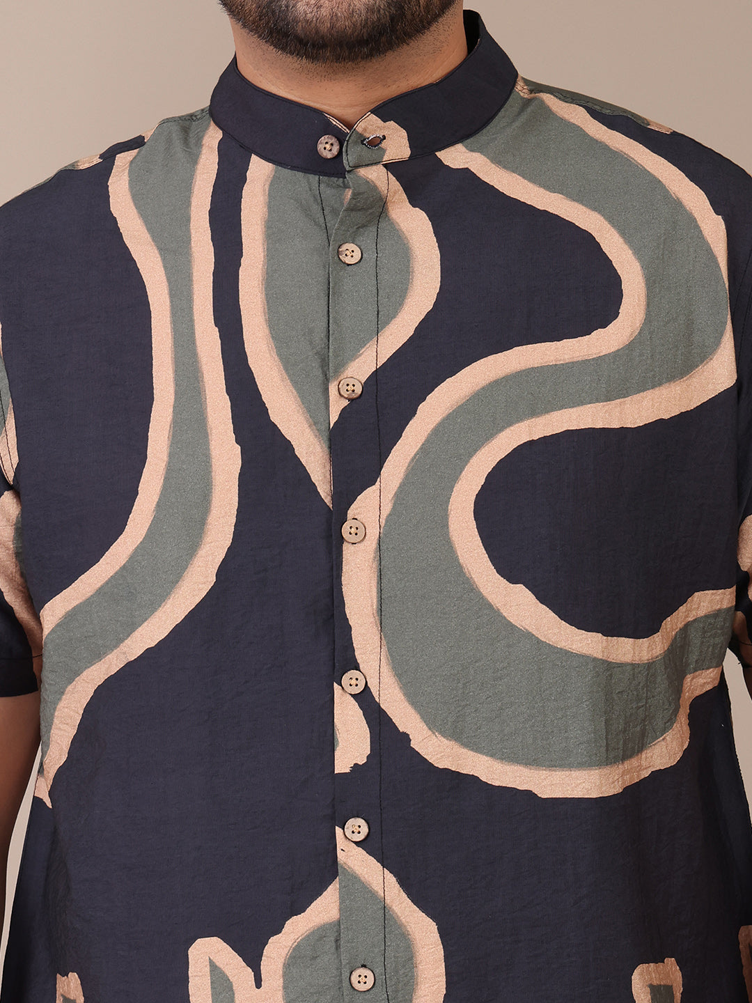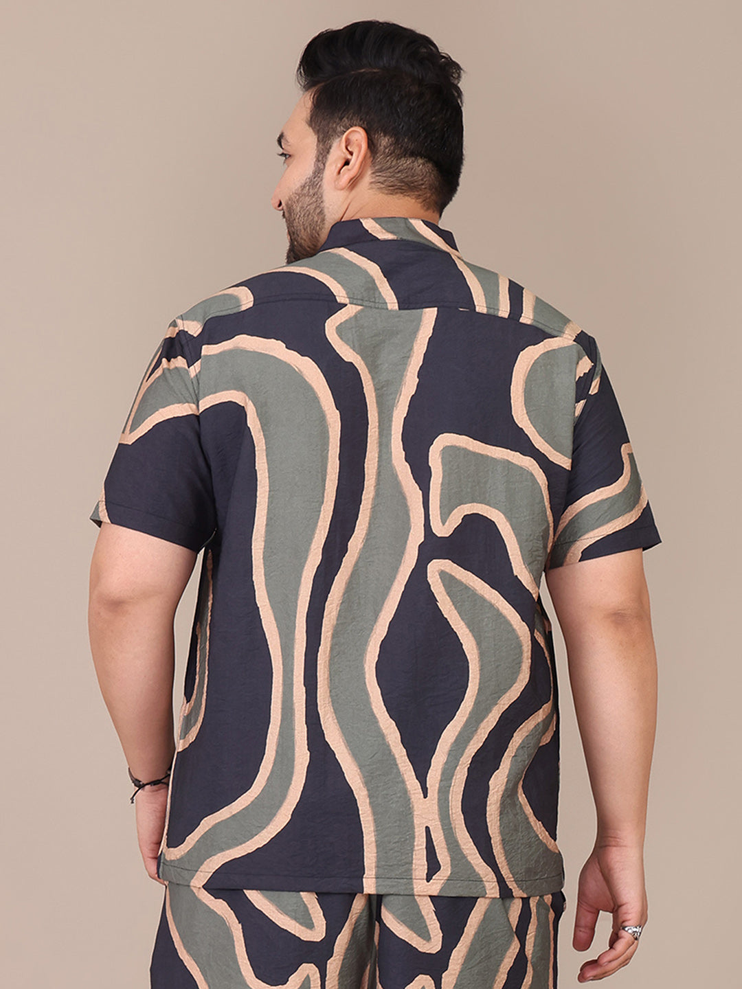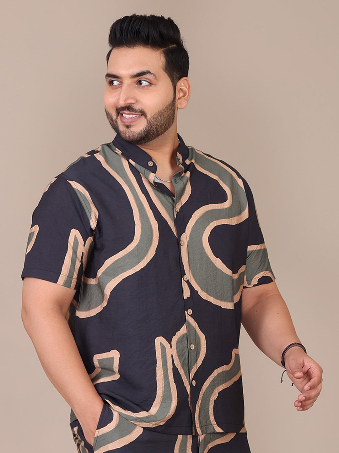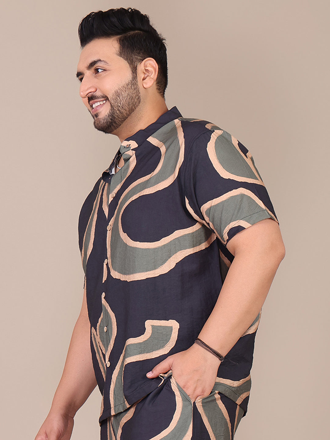 Multicolor Pure Khadi Abstract Printed Casual Plus Size Shirt For Men