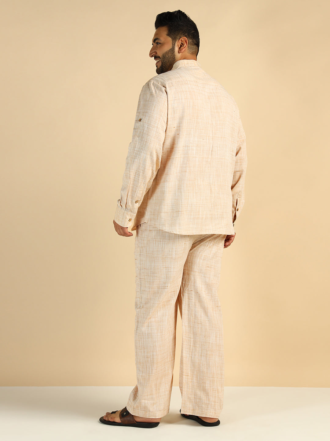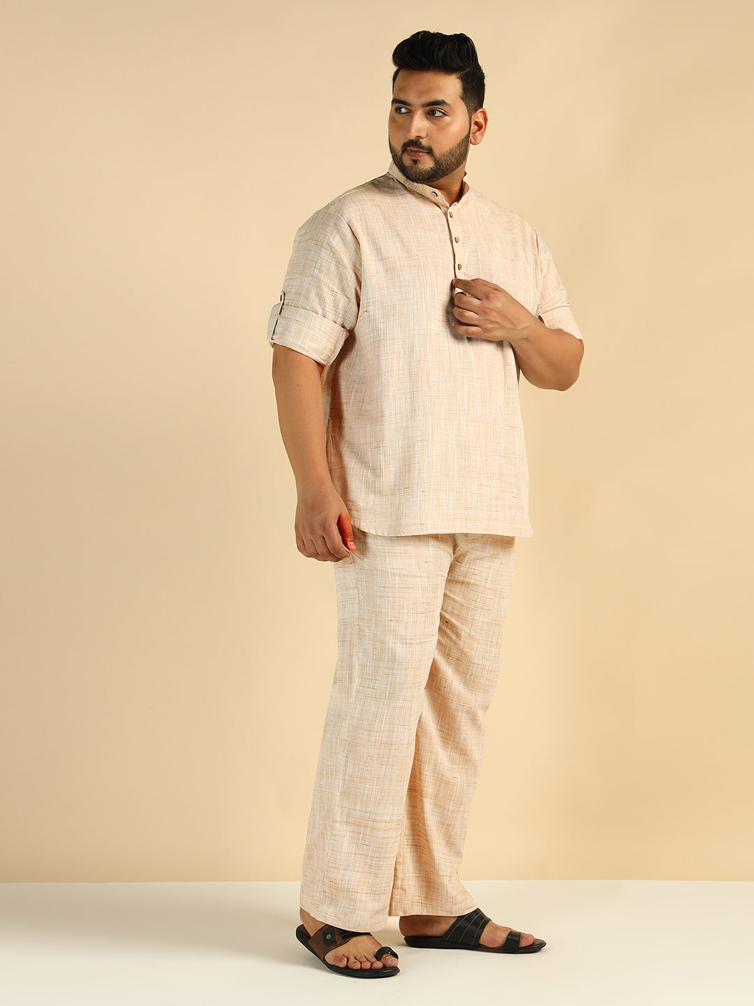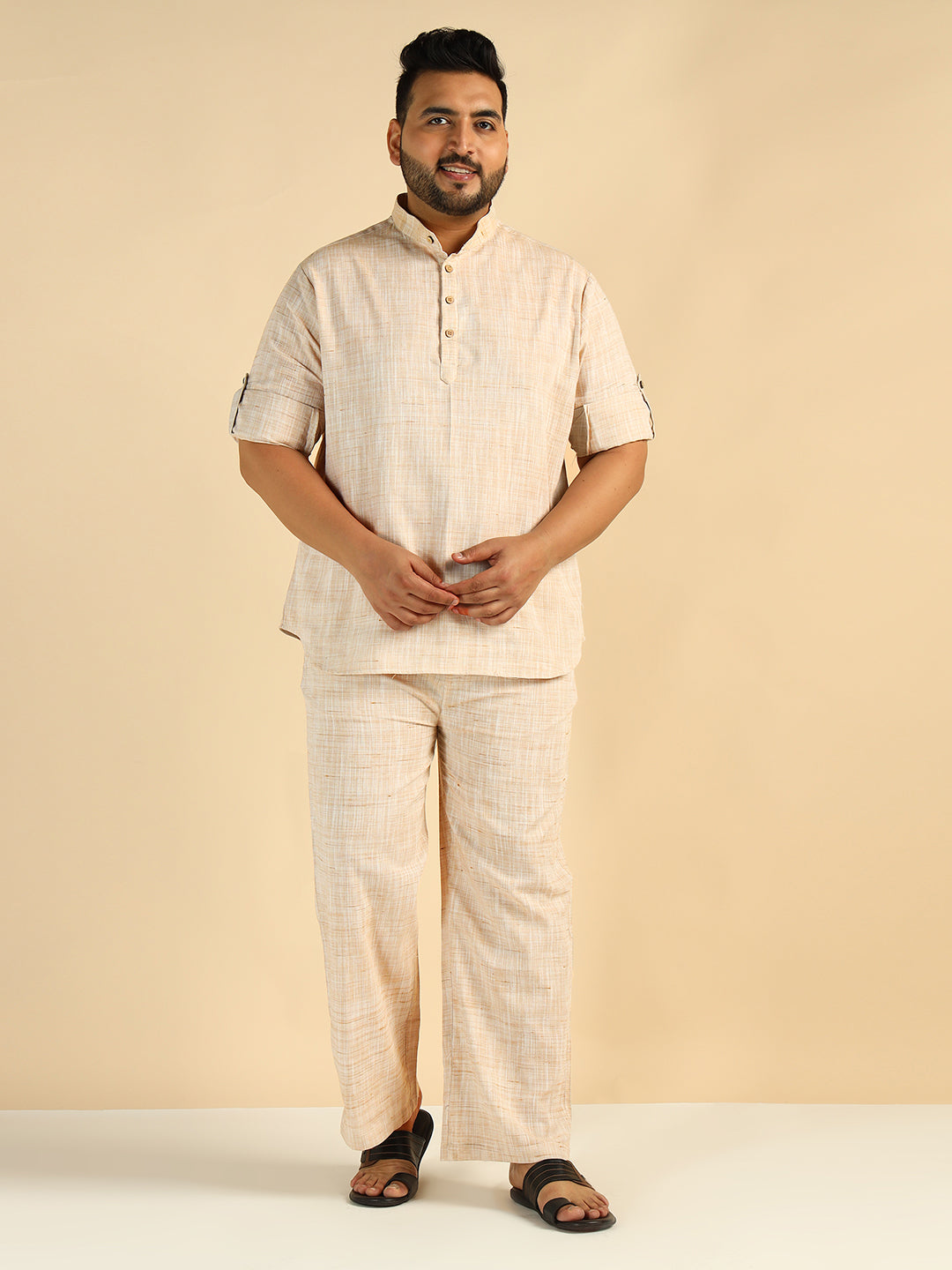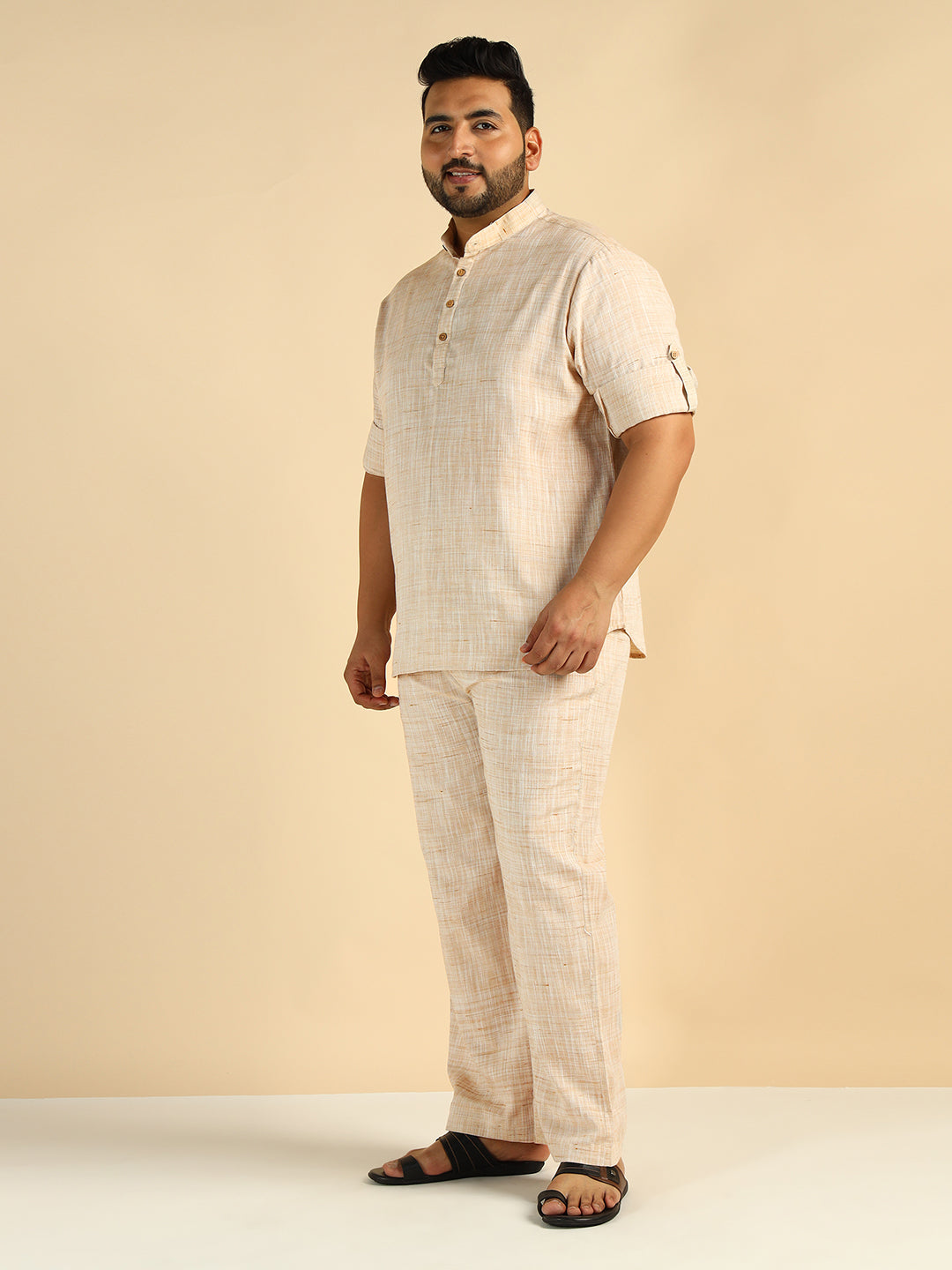 Off White Cotton Khadi Men Plus Size Co-Ord Set