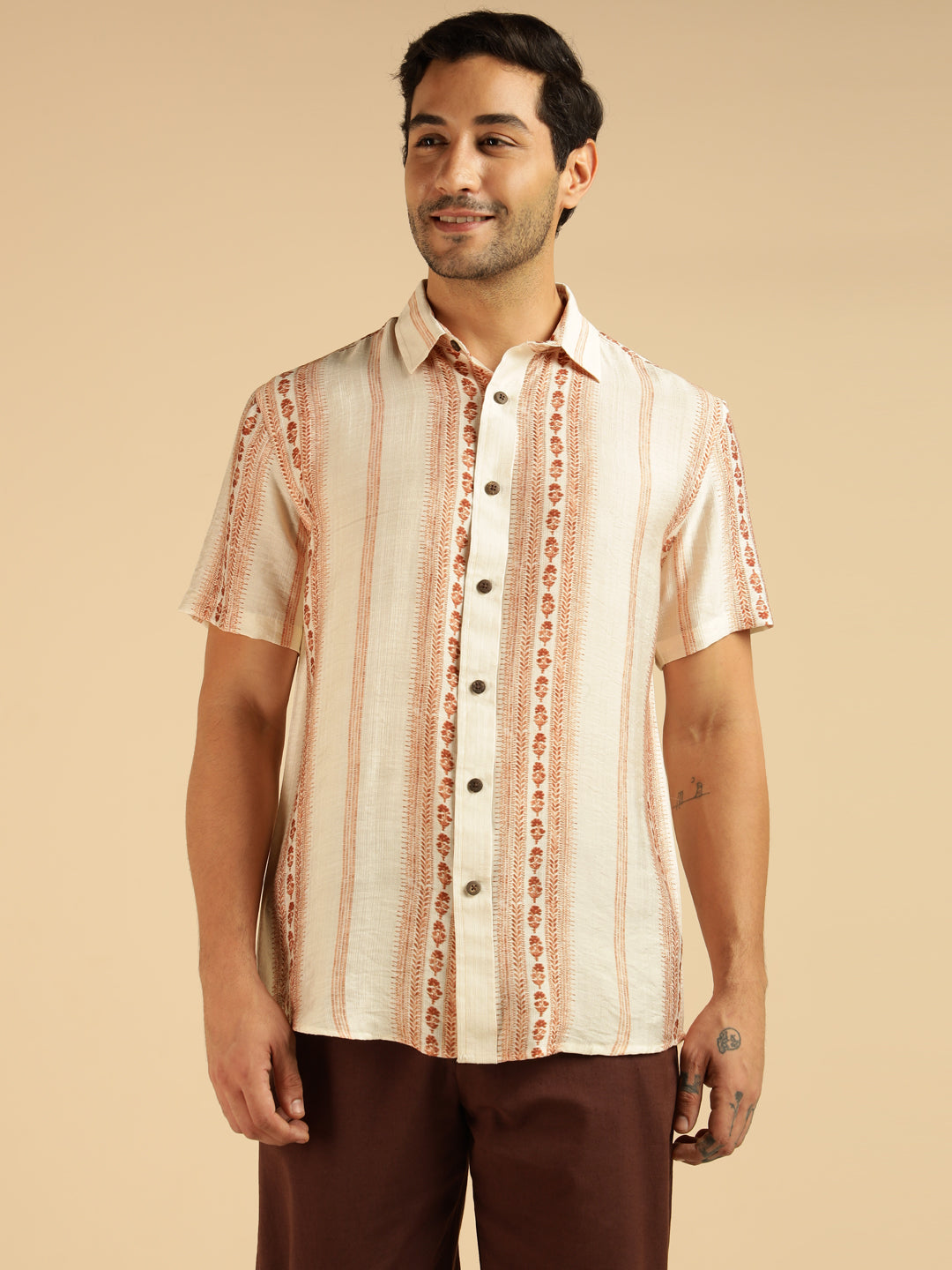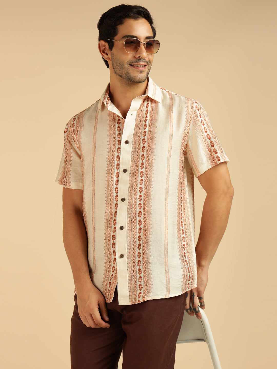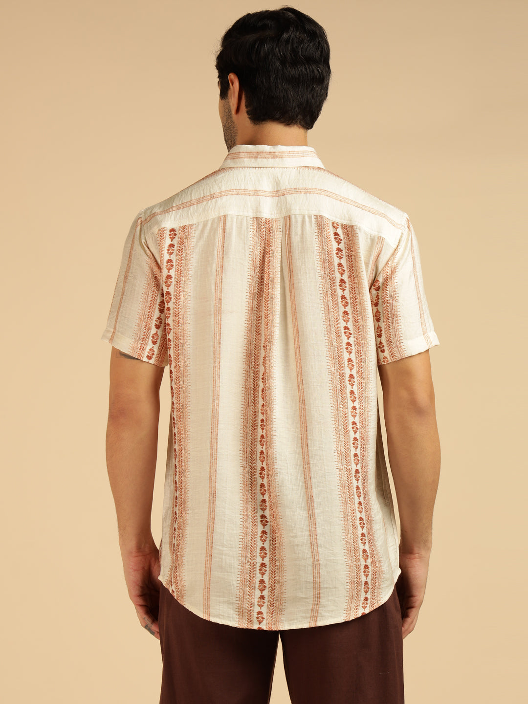 Off White Motif Striped Men Casual Shirt
