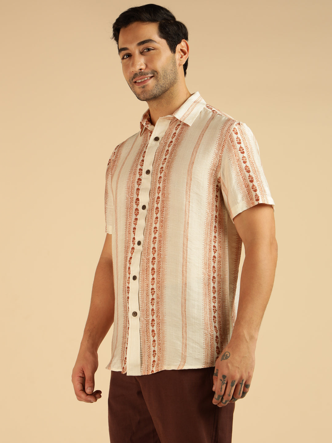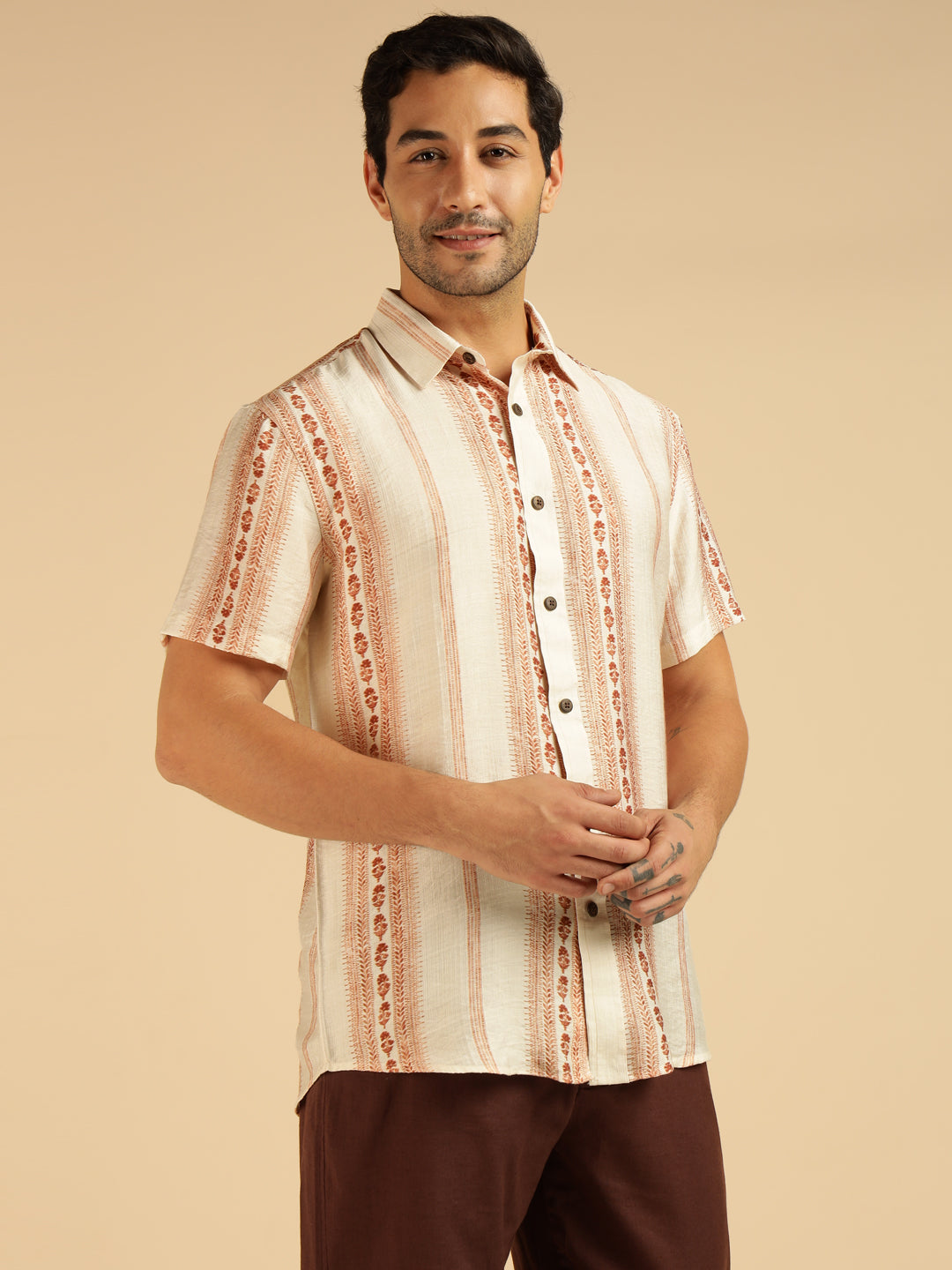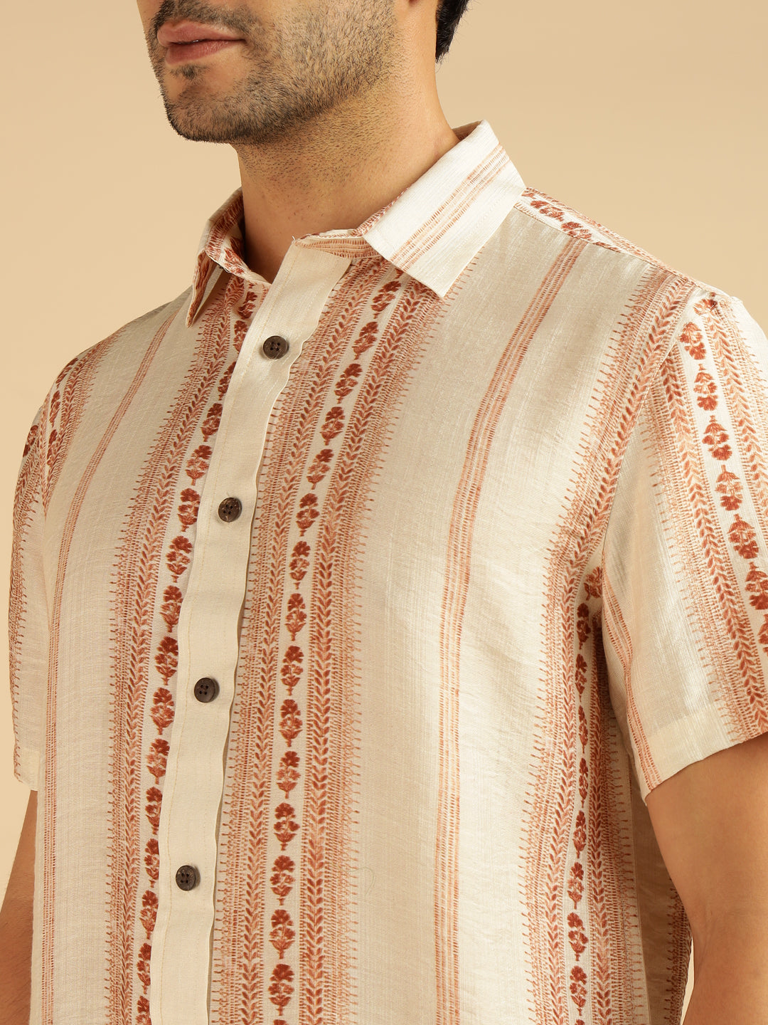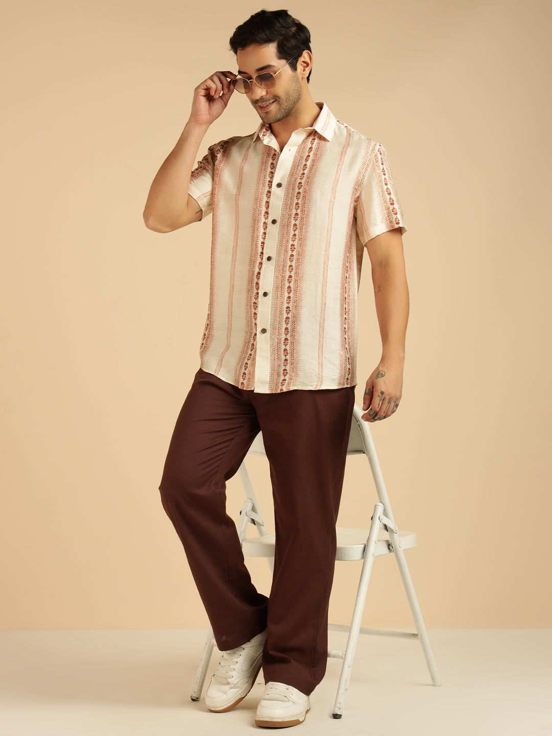 Off White Motif Striped Men Casual Shirt