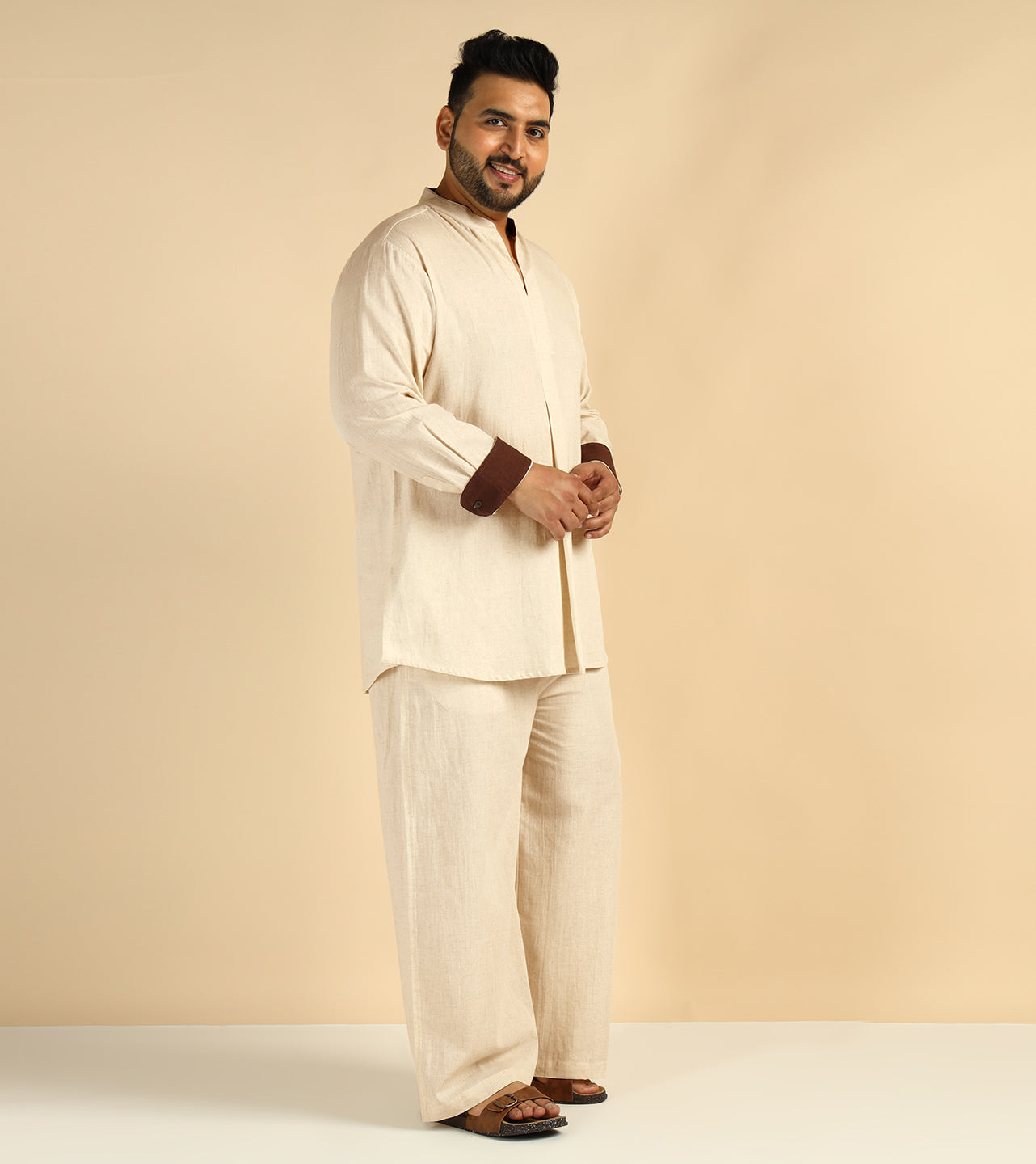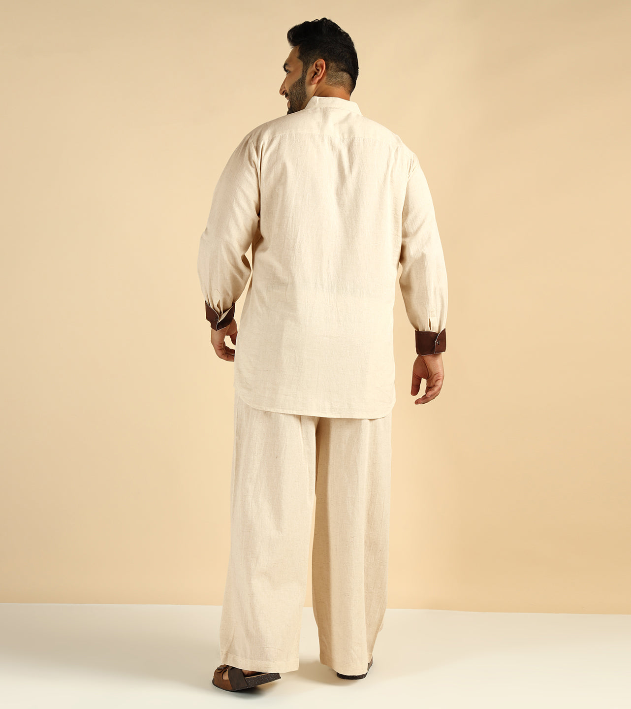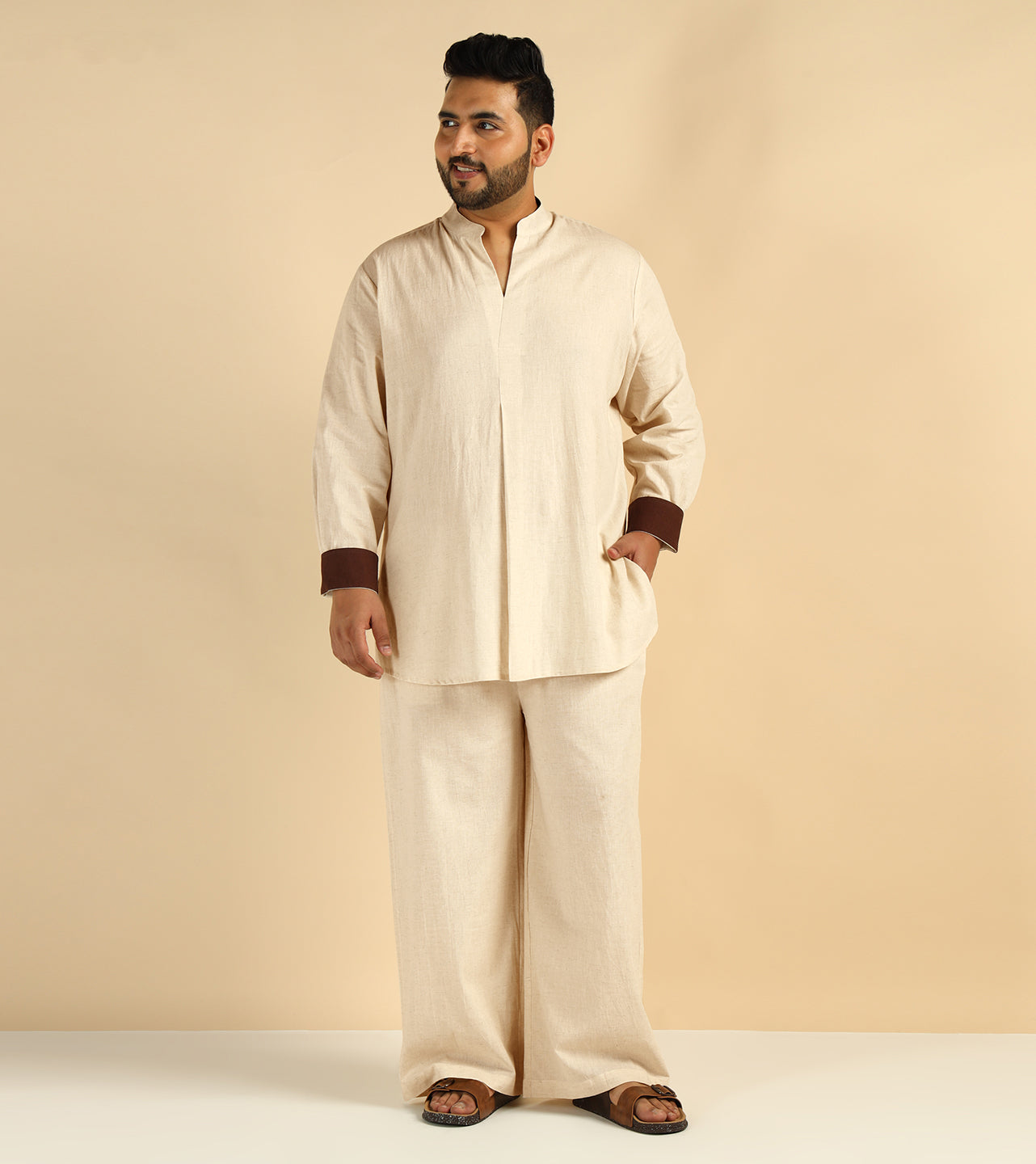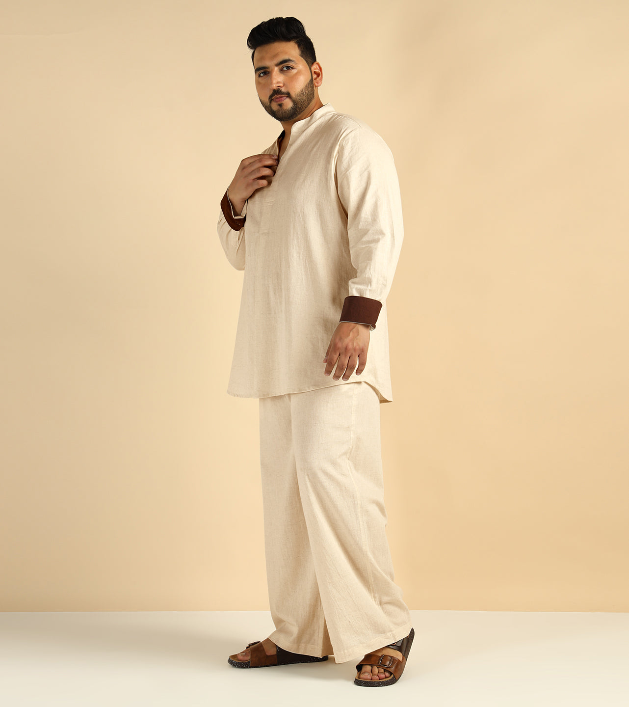 Off White Solid Colour Pure Cotton Plus Size Co-Ord Set For Men