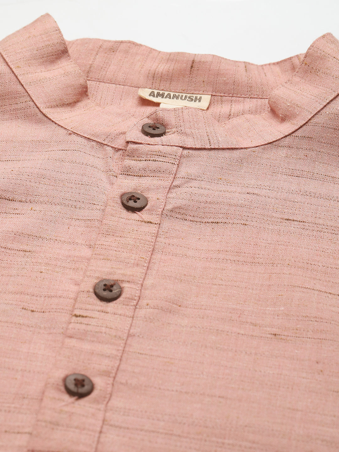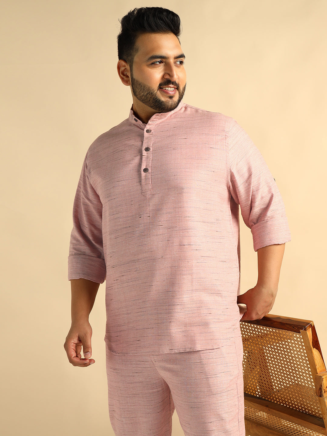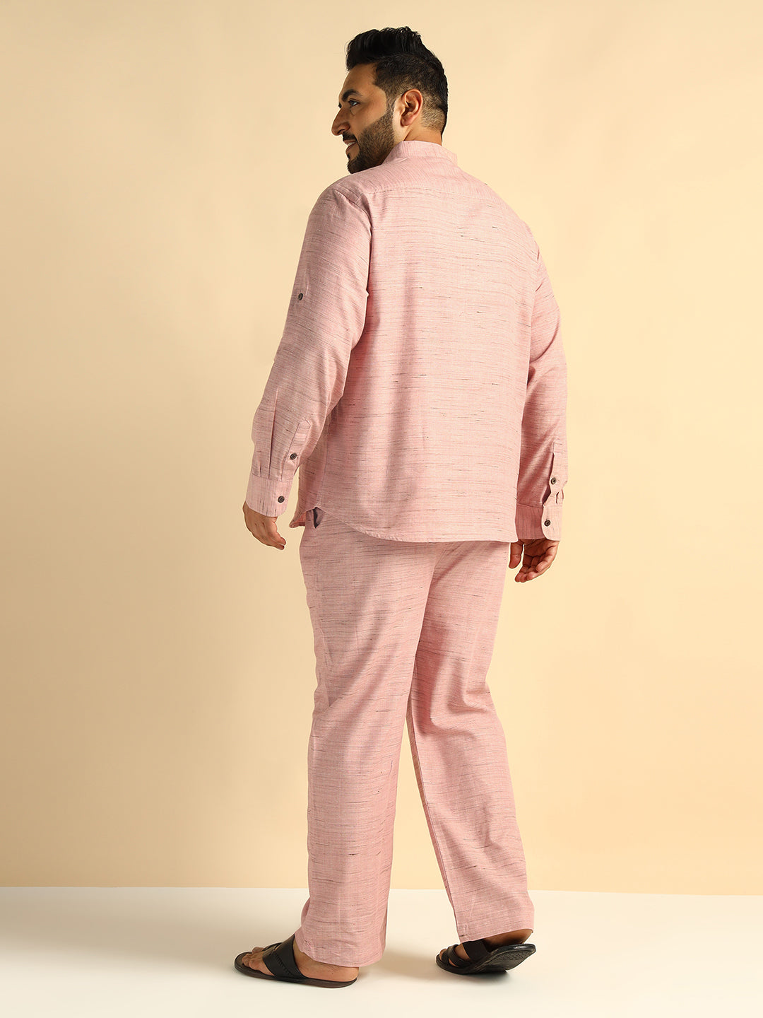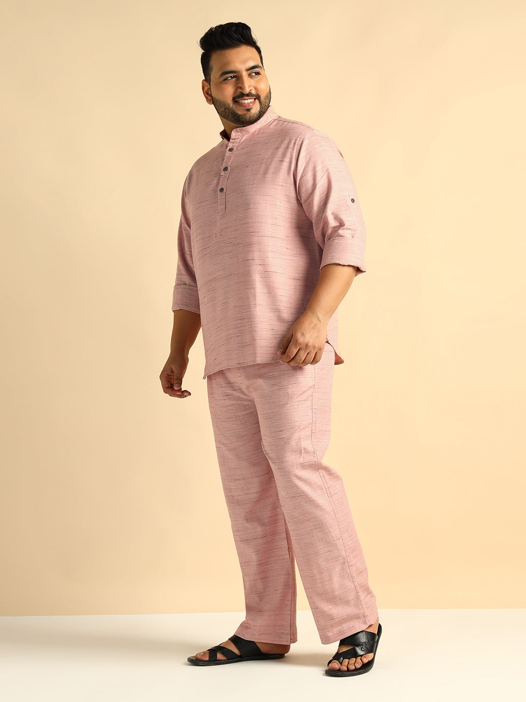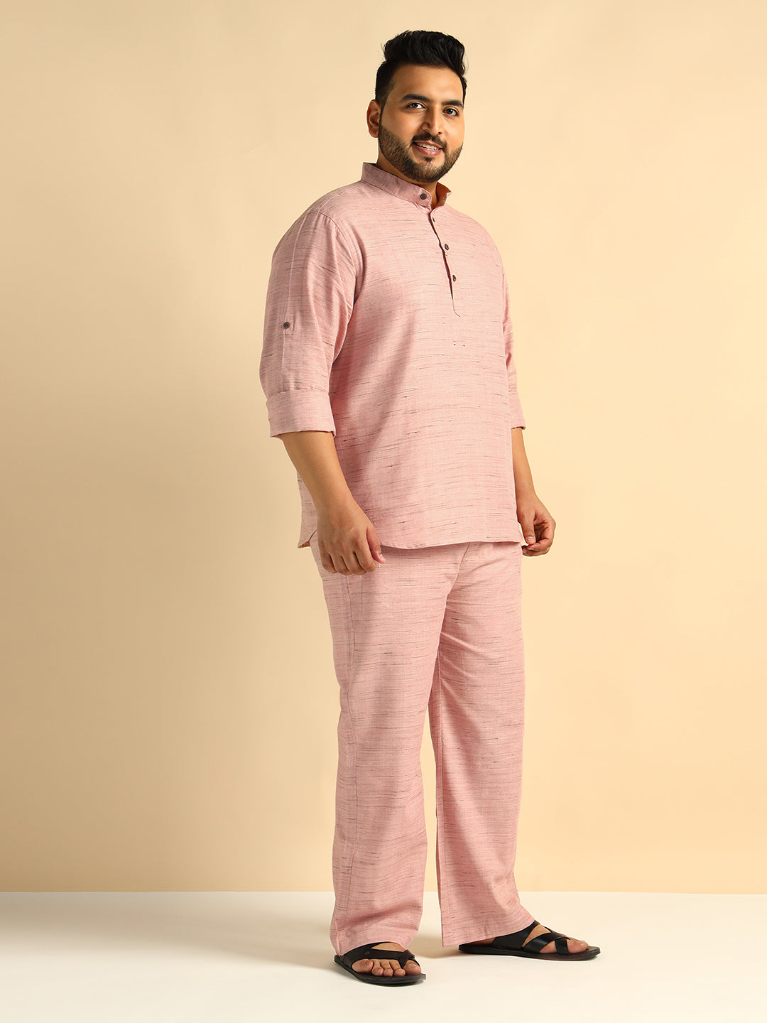 Pink Cotton Khadi Men Plus Size Co-Ord Set