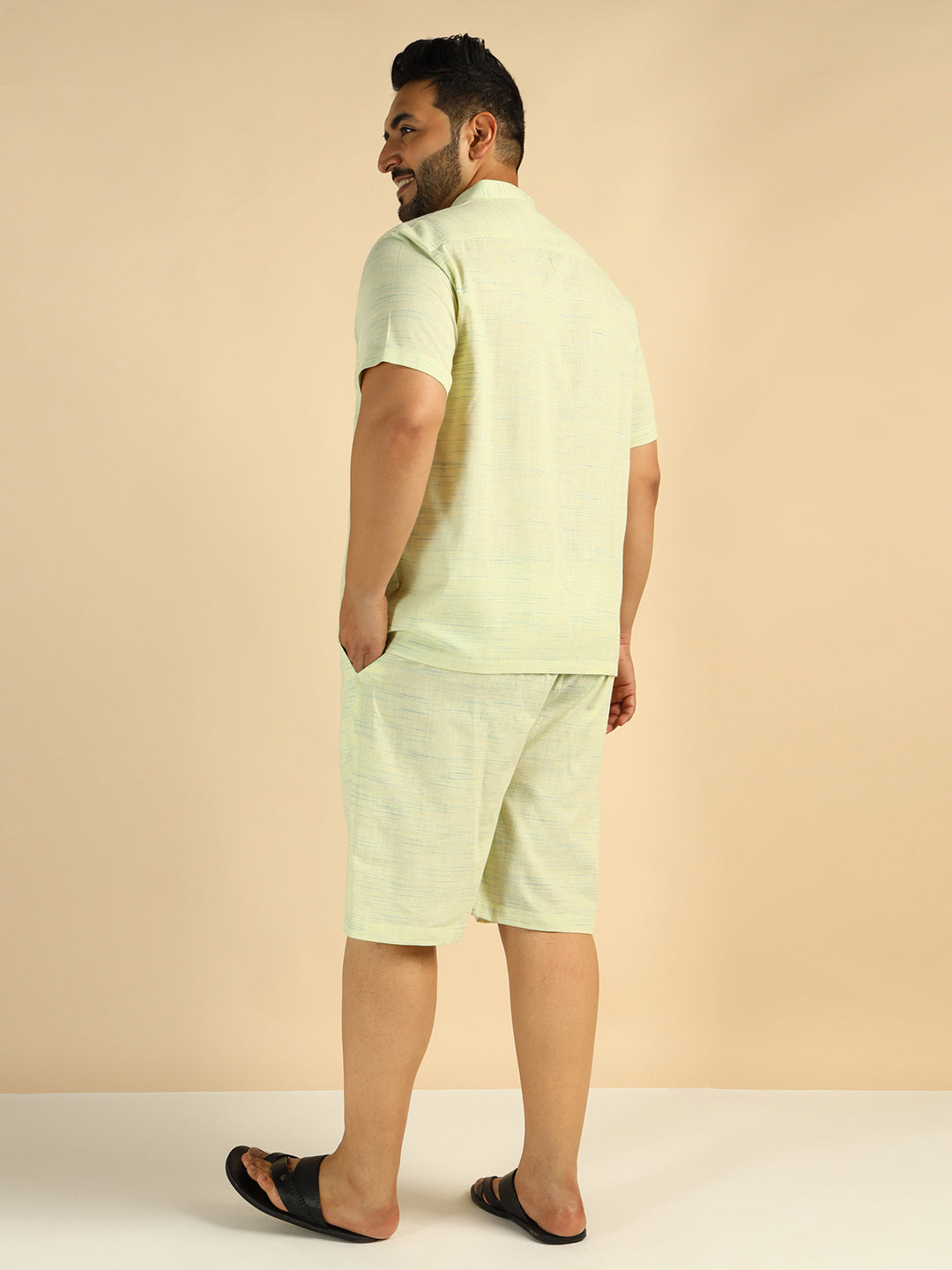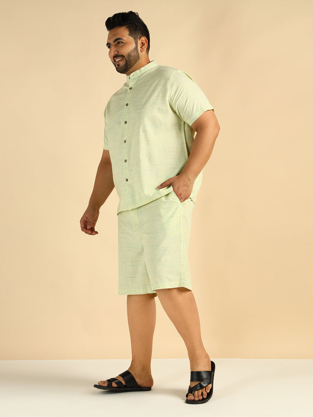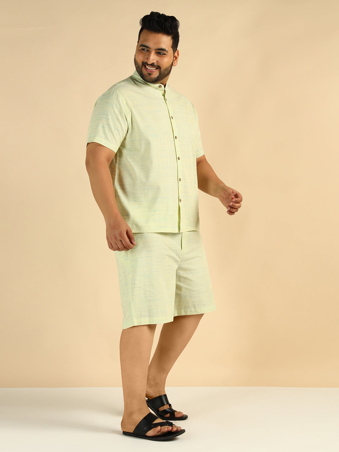 Pista Green Khadi Cotton Men Plus Size Co-Ord Set