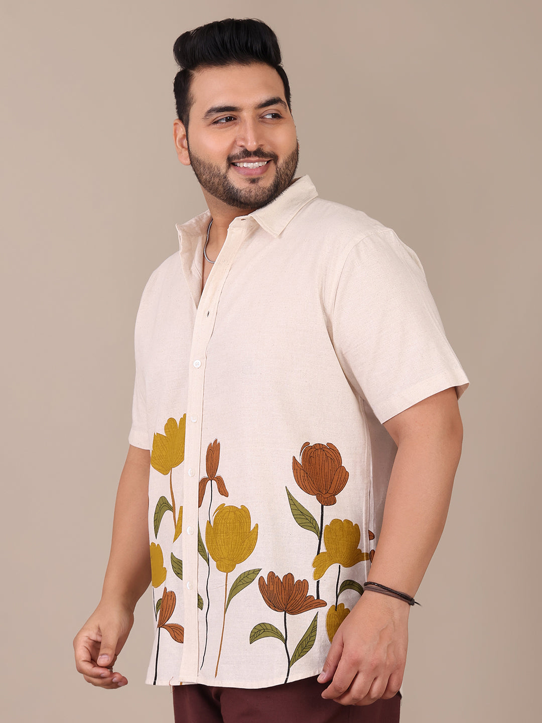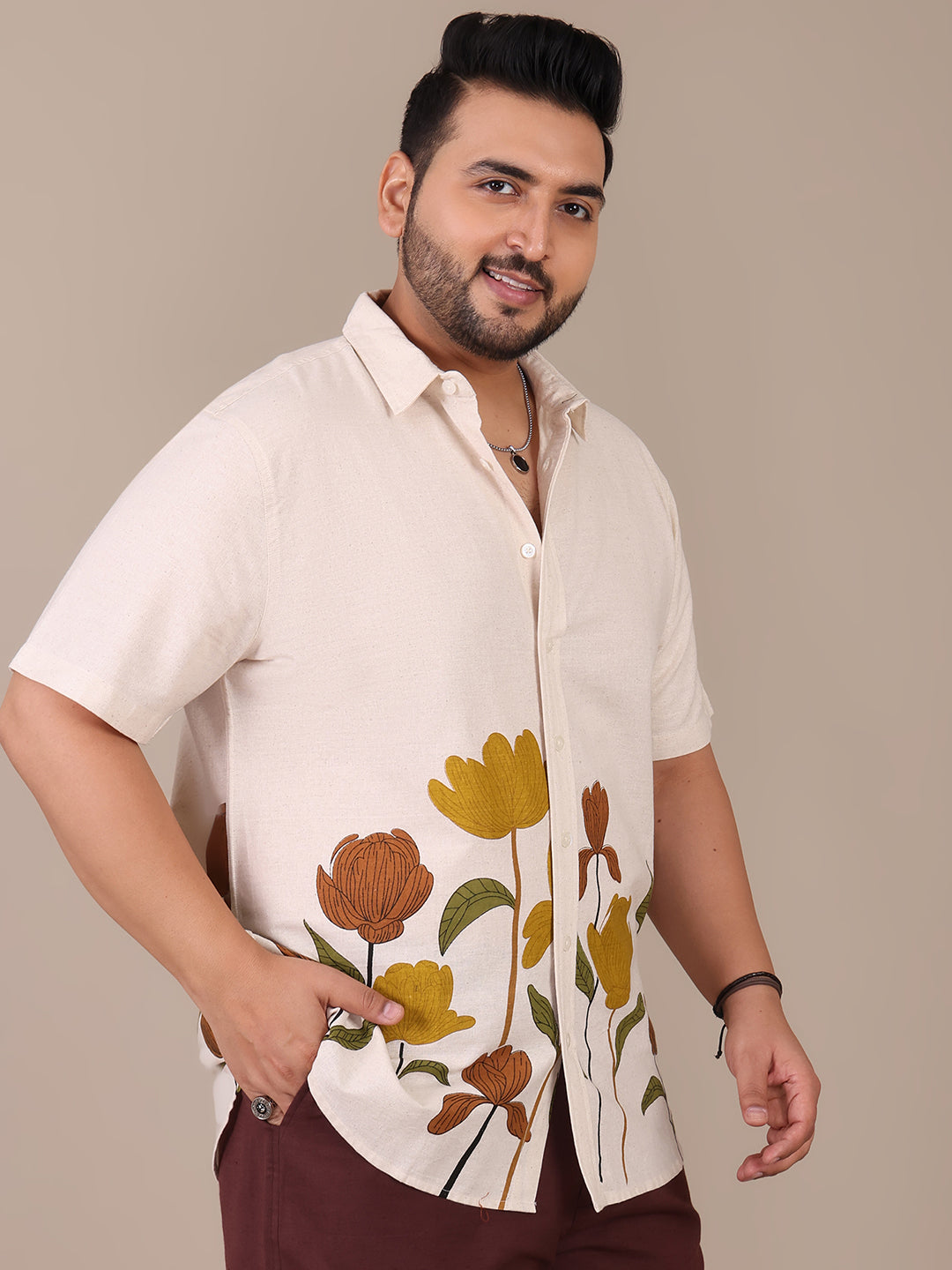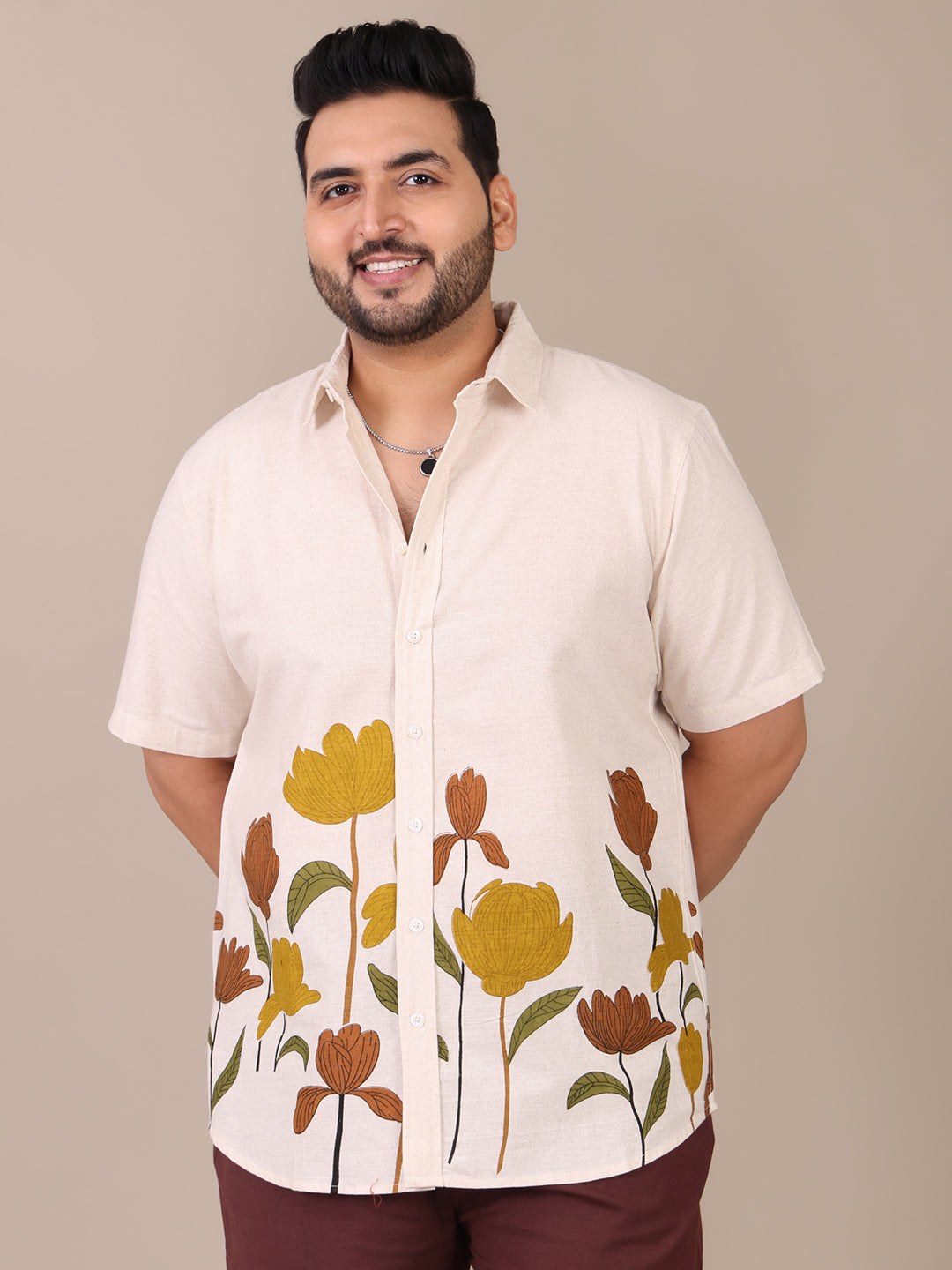 Placement Printed Pure Cotton Casual Plus Size Shirt For Men