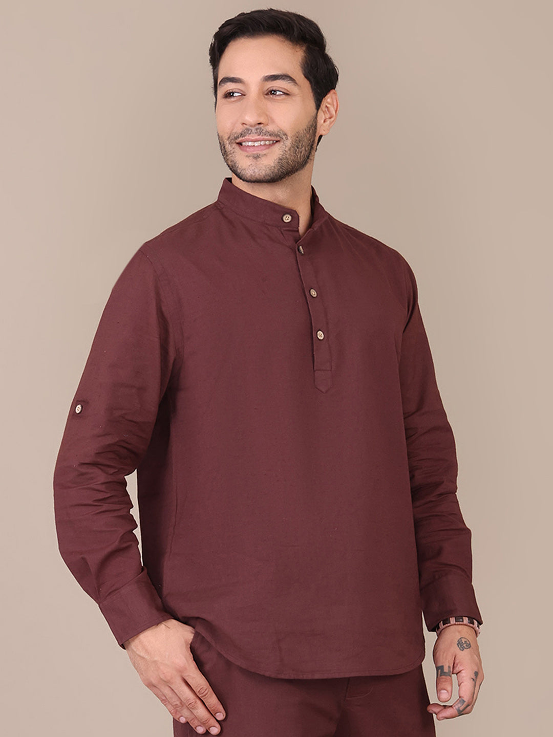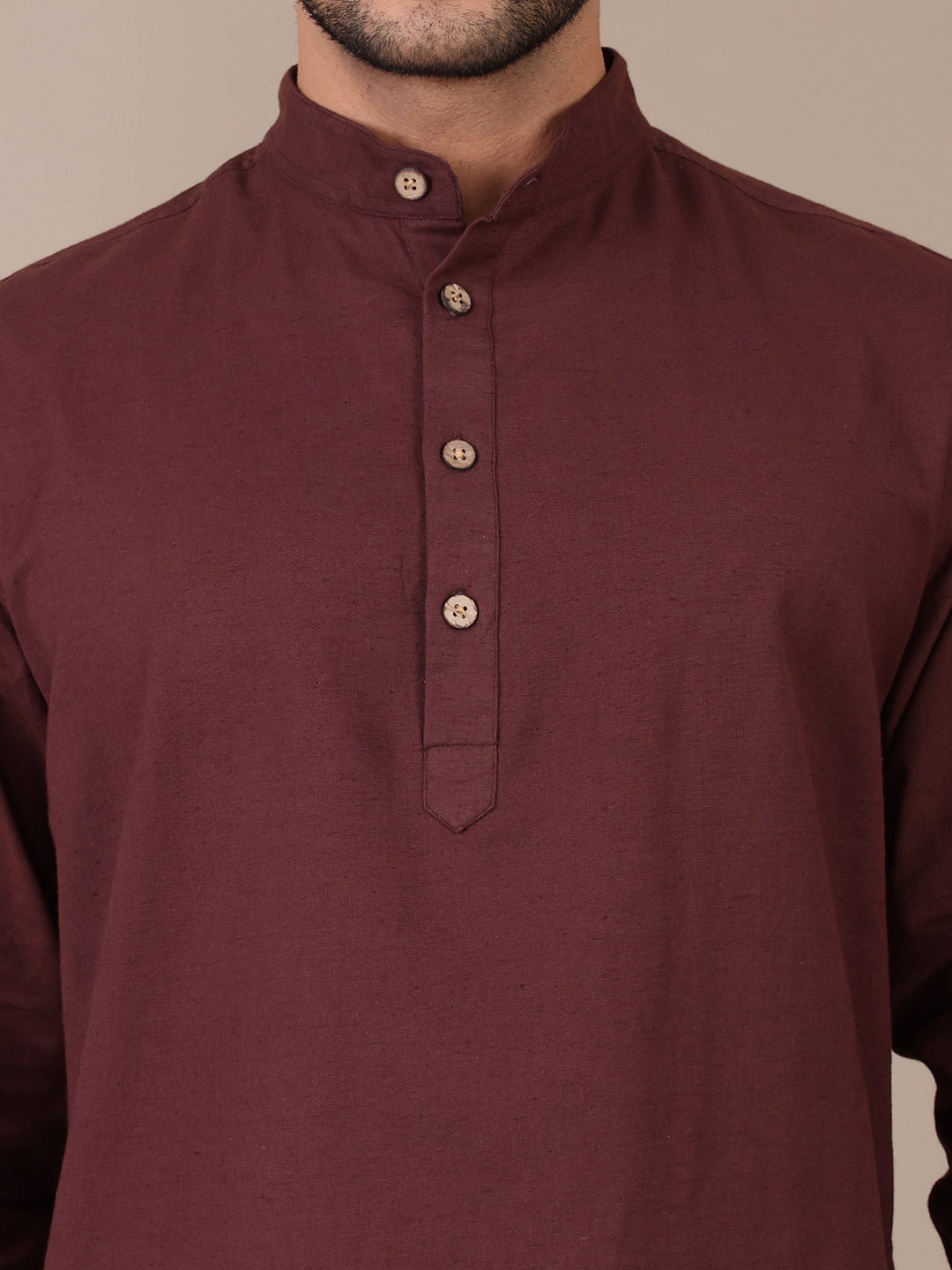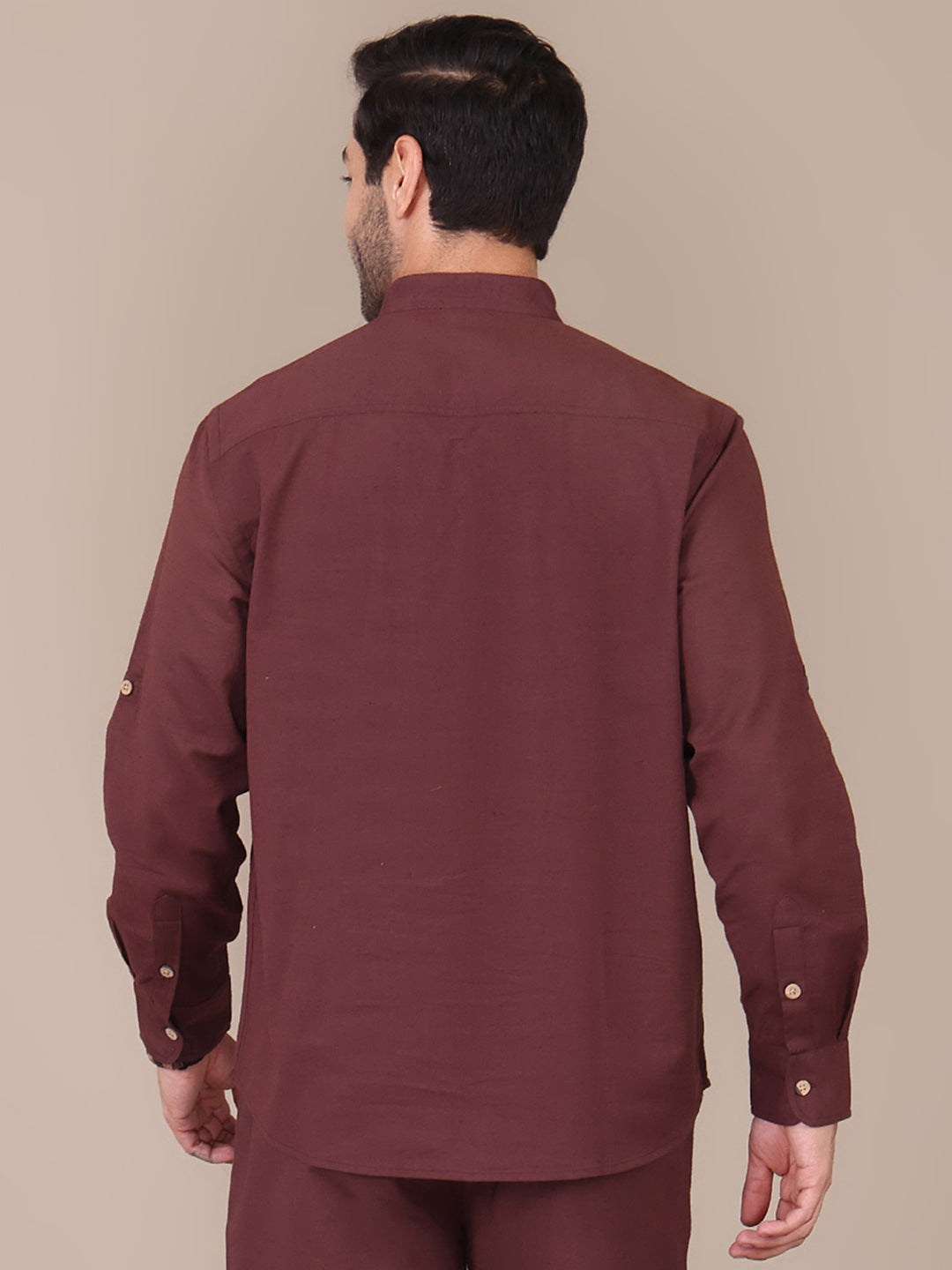 Pure Cotton Brown Mandarin Collar Kurta For Men