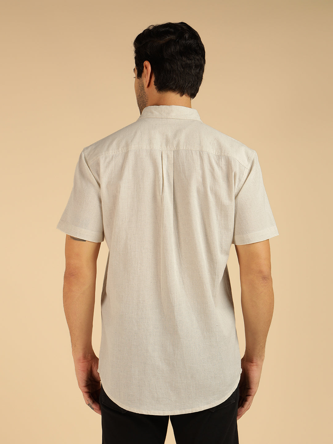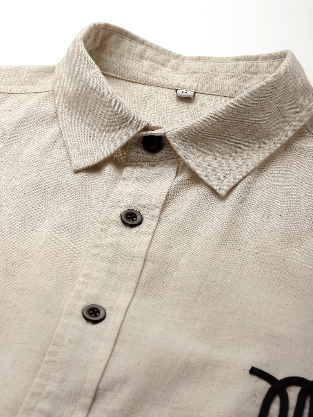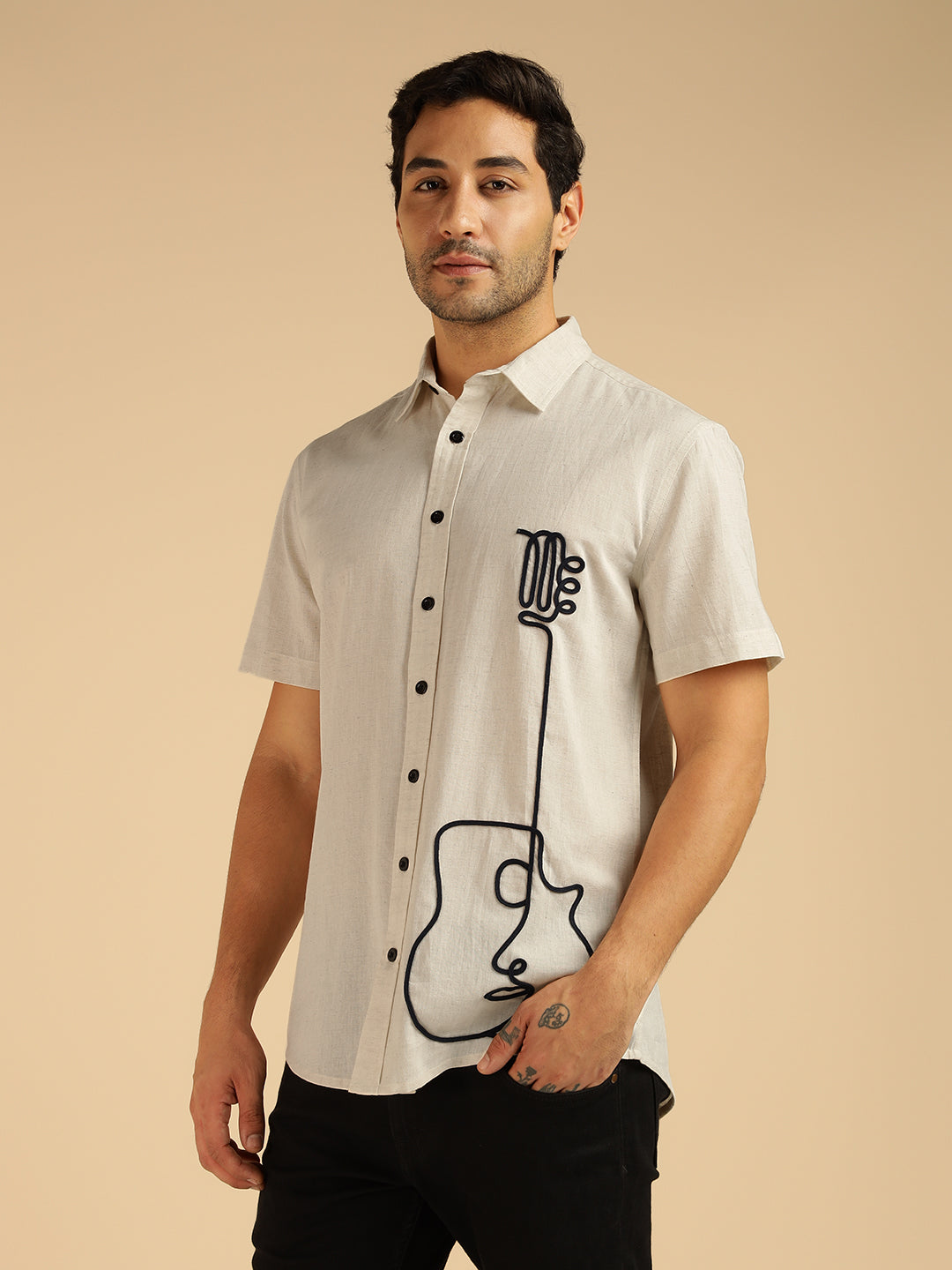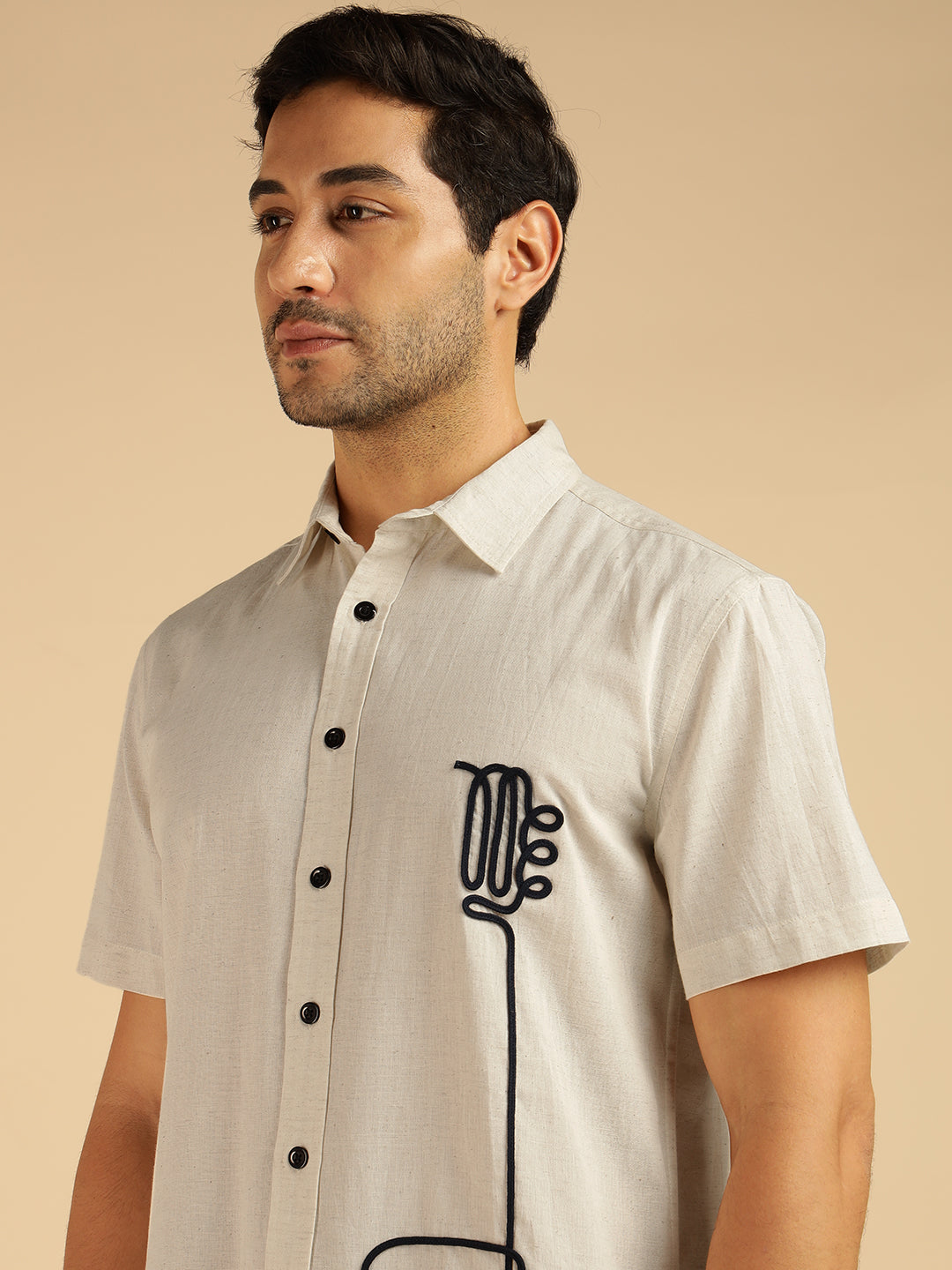 Pure Cotton Off White Embroidered Men Casual Shirt